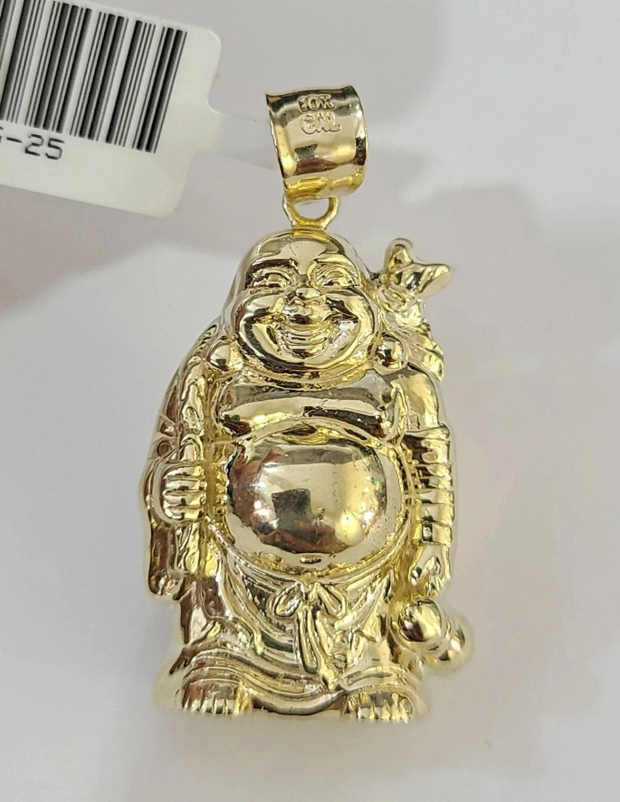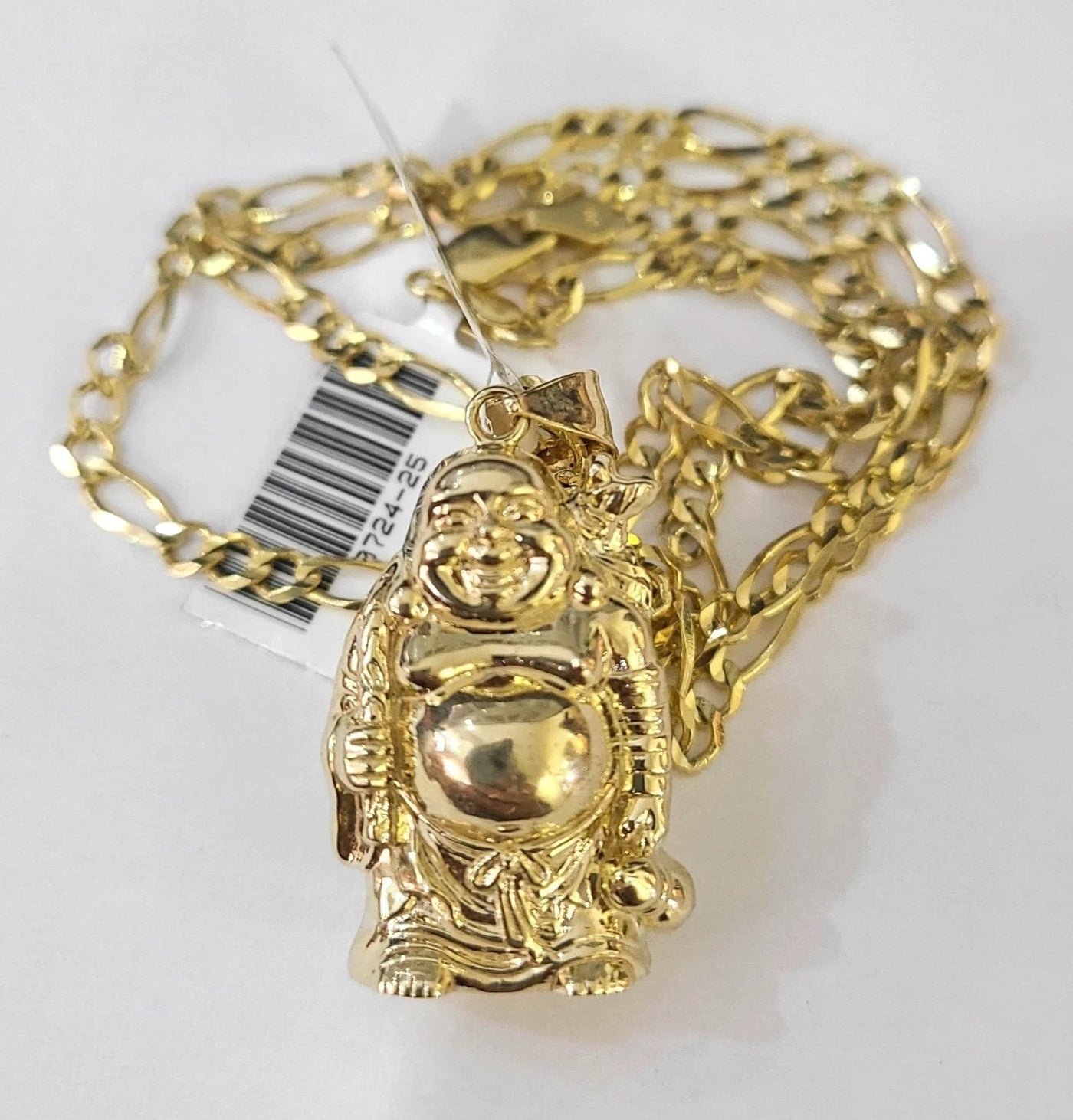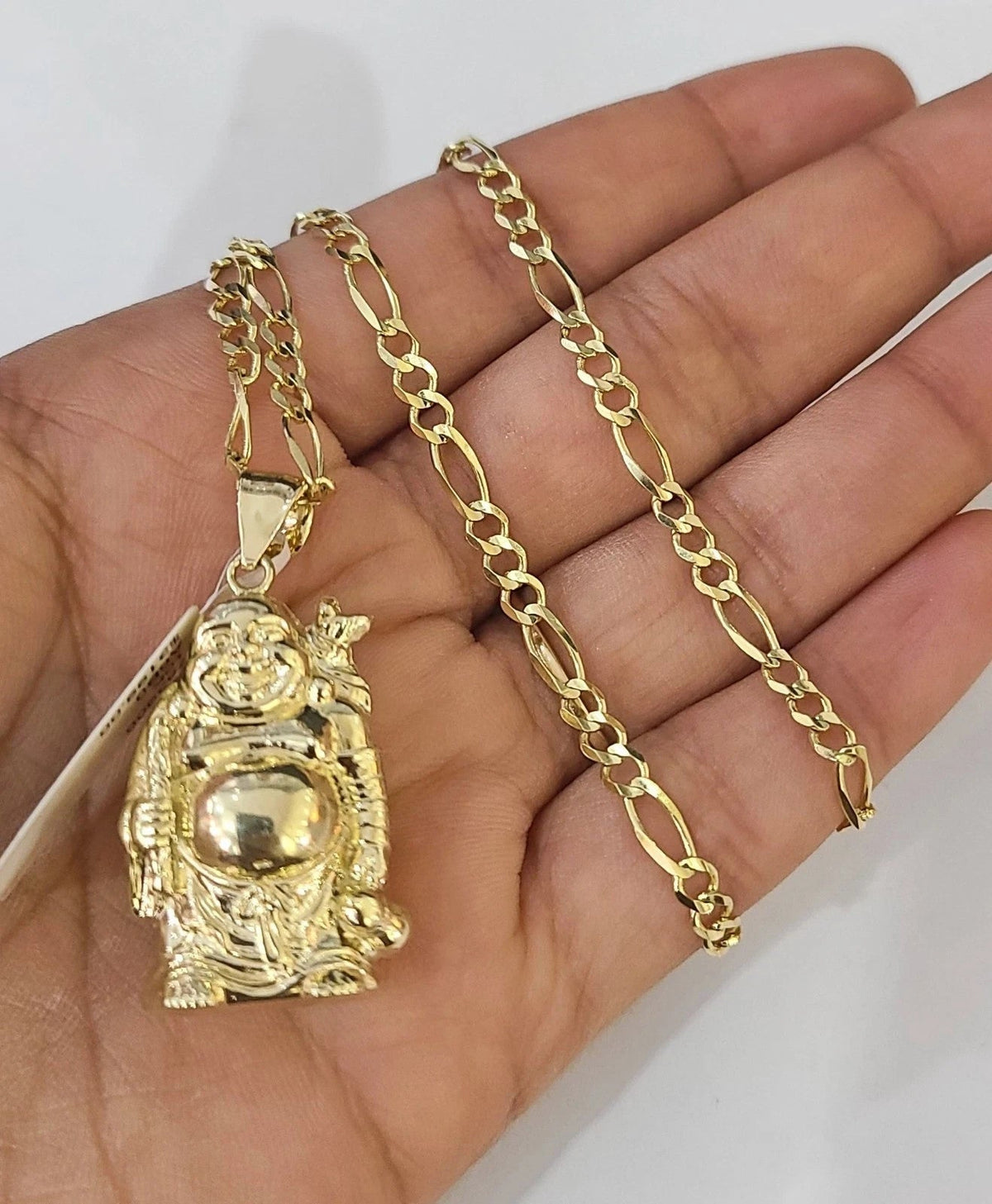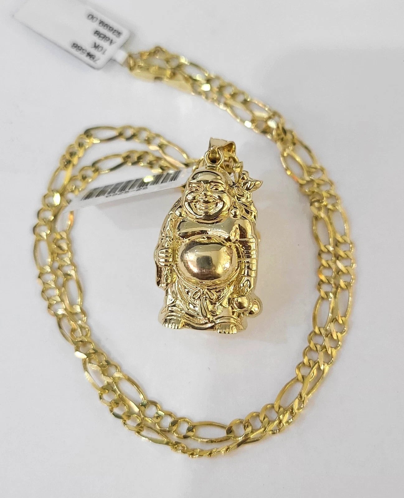 10k Figaro Chain Laughing Buddha Pendant Charm Gold 3mm 20-28 inch SET – Goldenlinq index