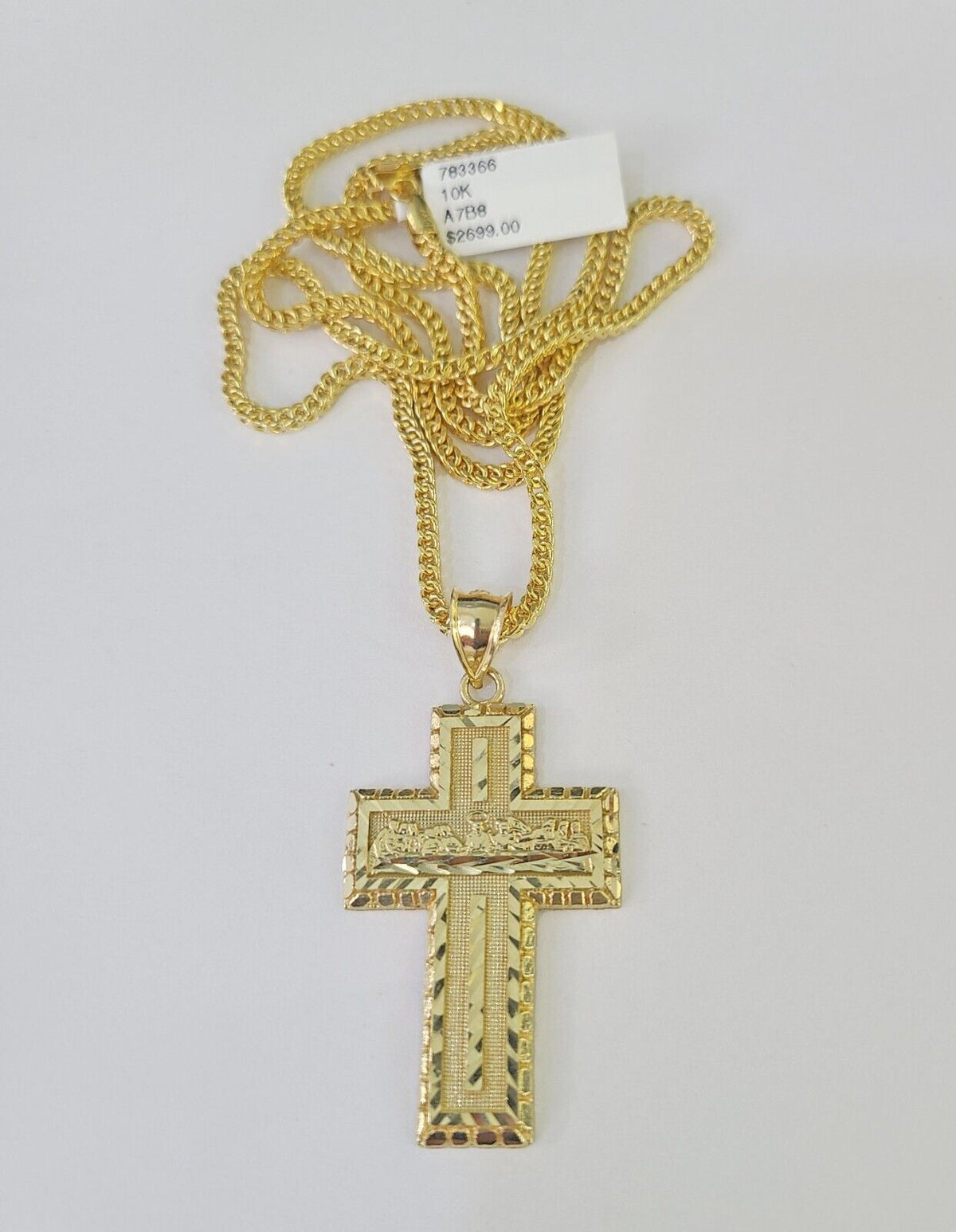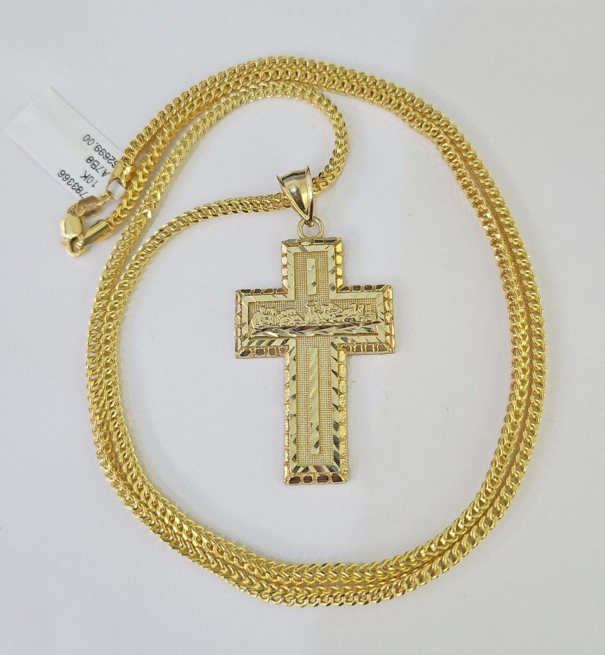 10K Franco Chain Last Supper Cross Pendant Charm Necklace 20"-26" 2.5m – Goldenlinq index