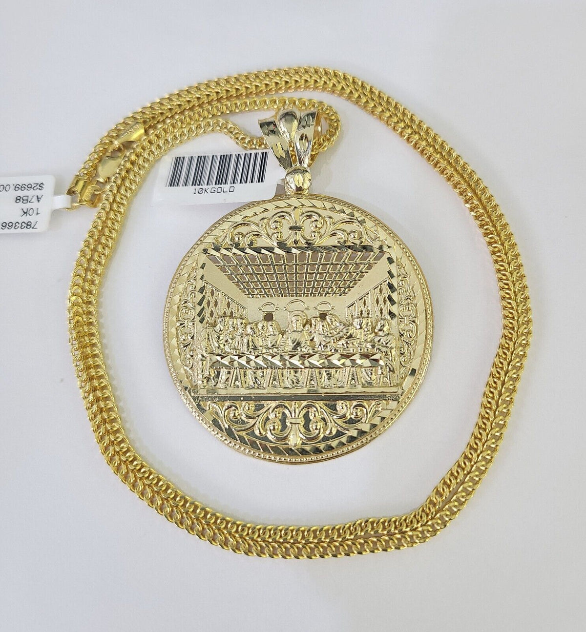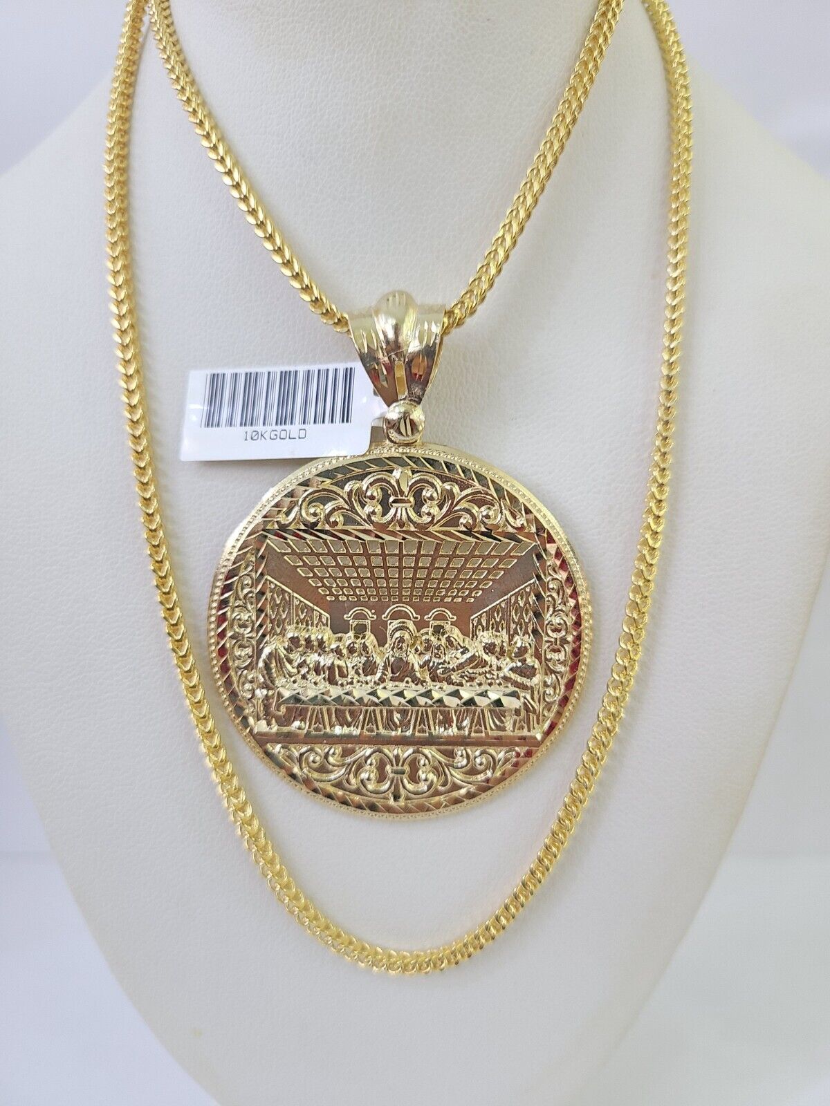 10K Franco Chain Last supper Pendant Charm Necklace 20"-26" 2.5mm Yellow Gold - 20" chain with charm
