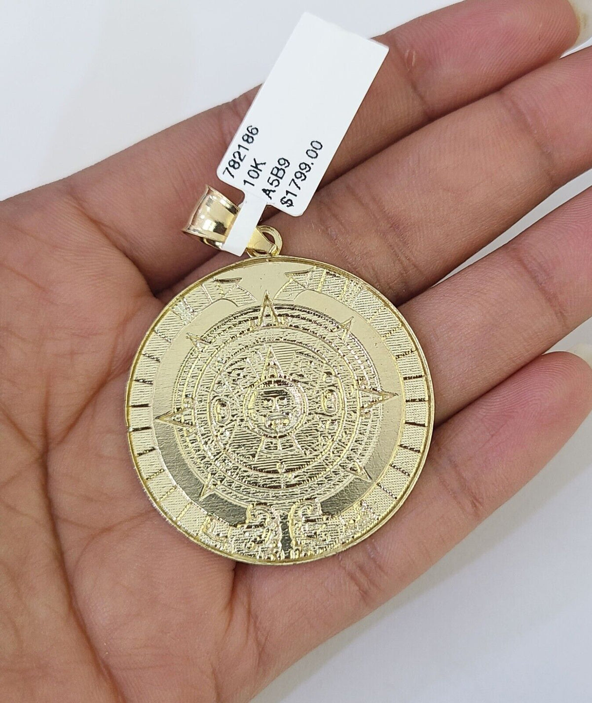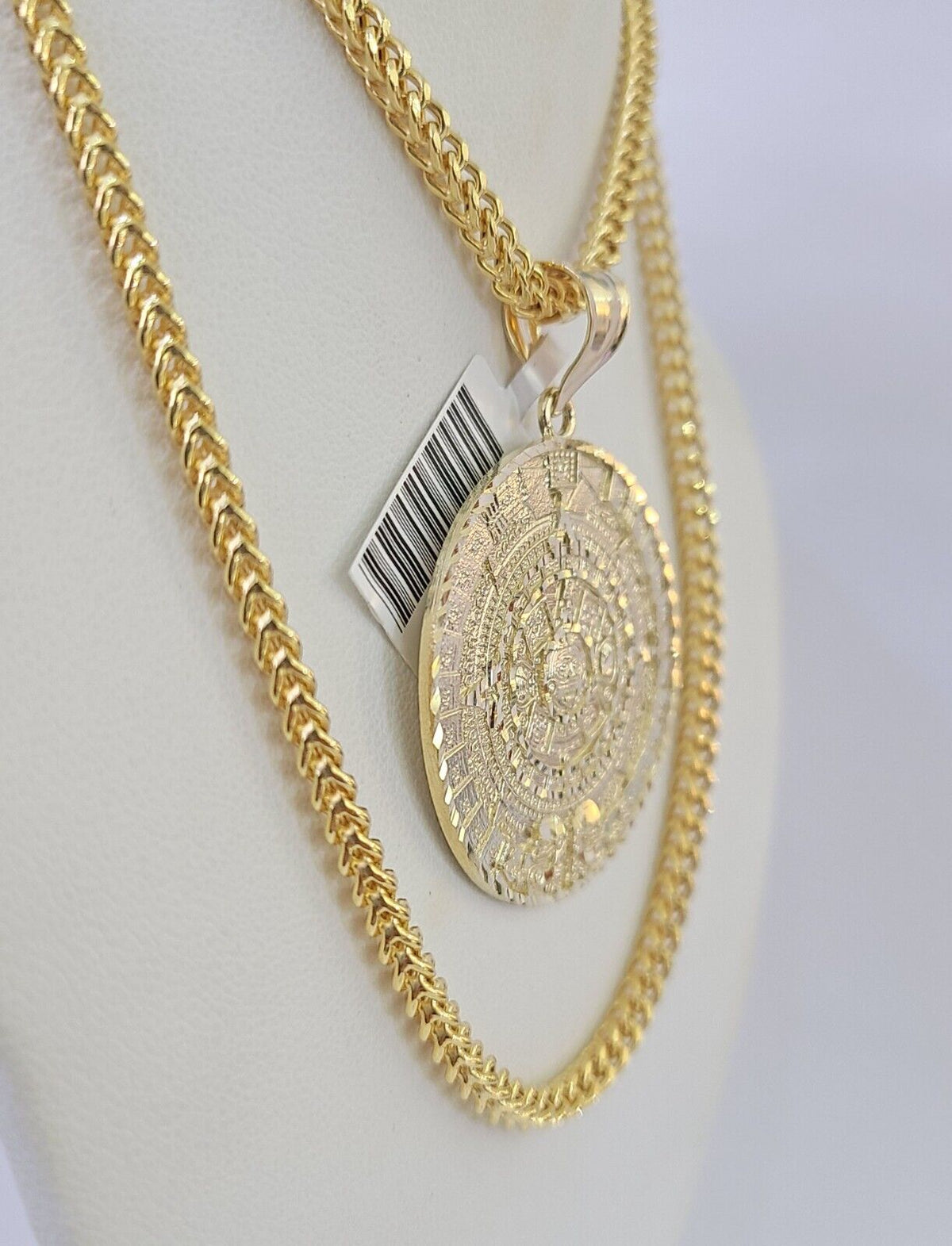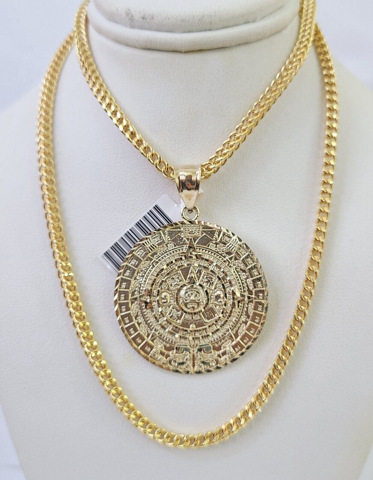 10K Franco Chain Mayan Calendar Pendant Charm Necklace 20"-26" 3mm Gold Yellow - 20" chain with charm