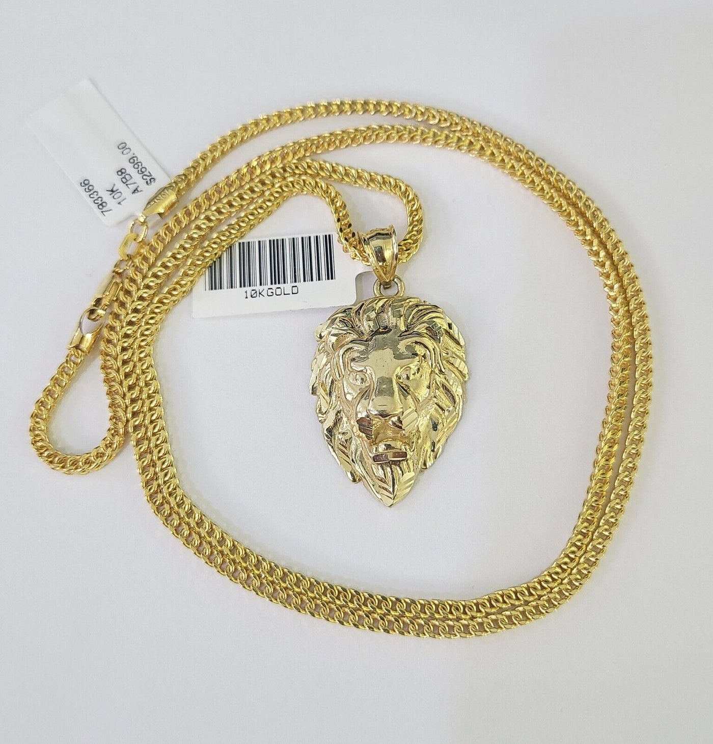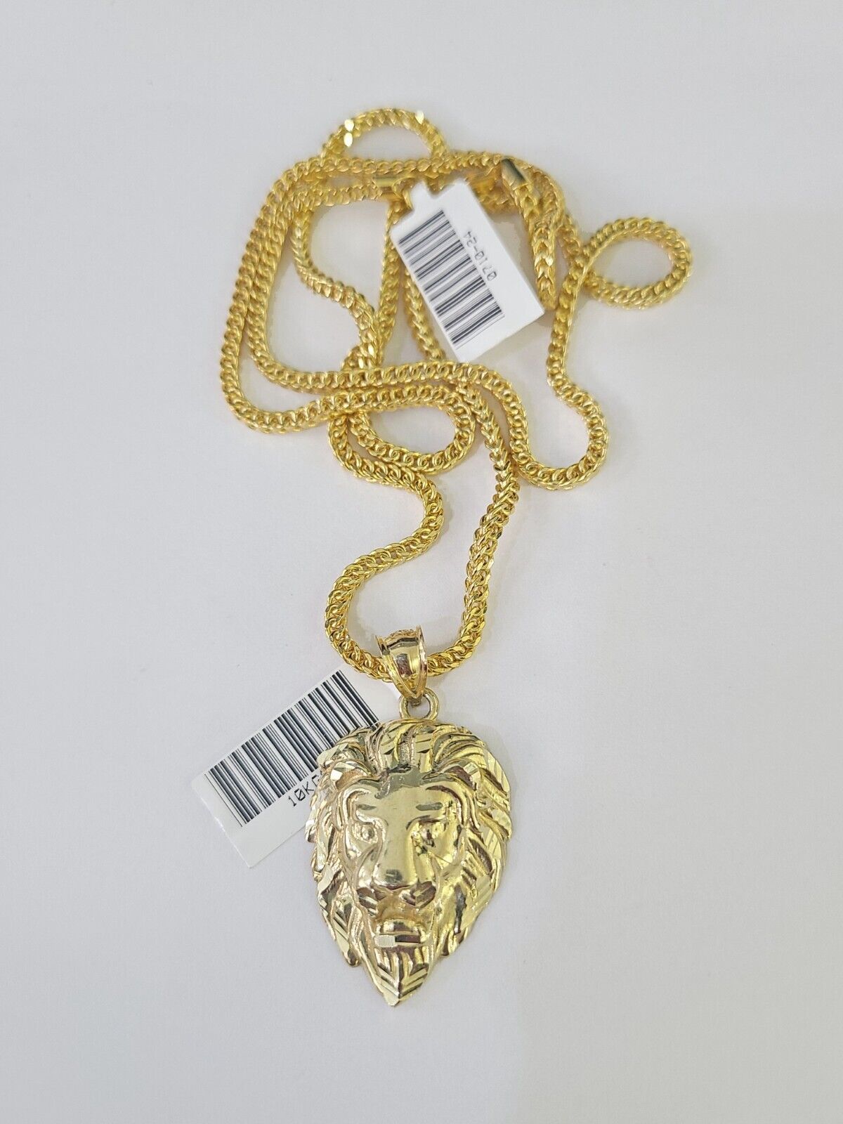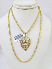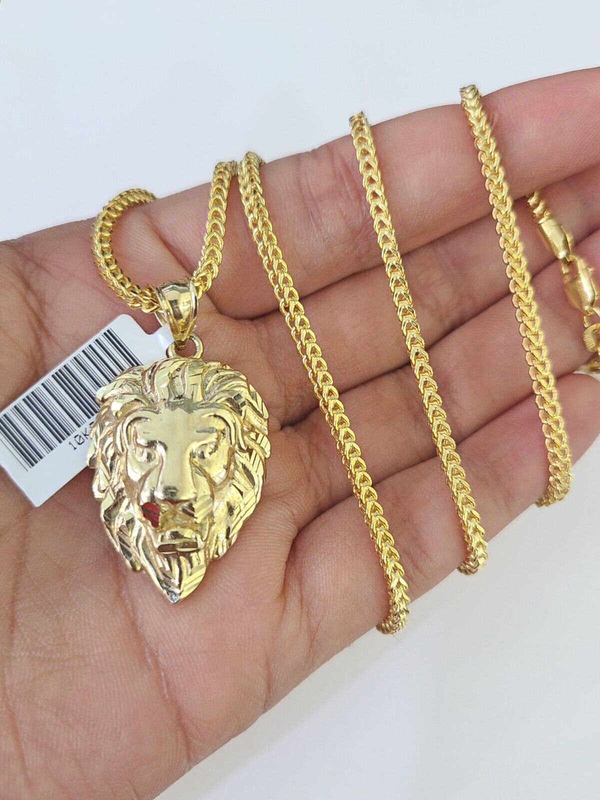 10K Franco Chain Roaring Lion Pendant Charm Necklace 20"-26" 2.5mm Yellow Gold - 20" chain with charm