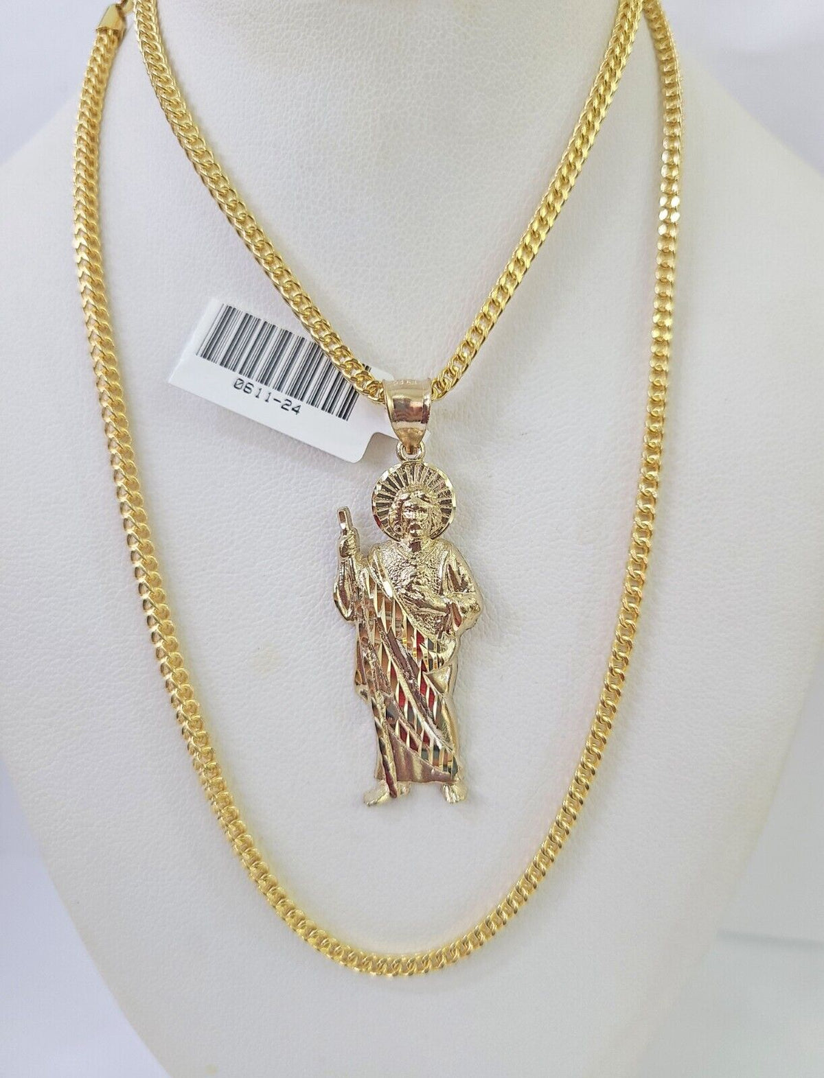 10K Franco Chain Saint Jude Pendant Charm Necklace 20"-26" 2.5mm Yello – Goldenlinq index