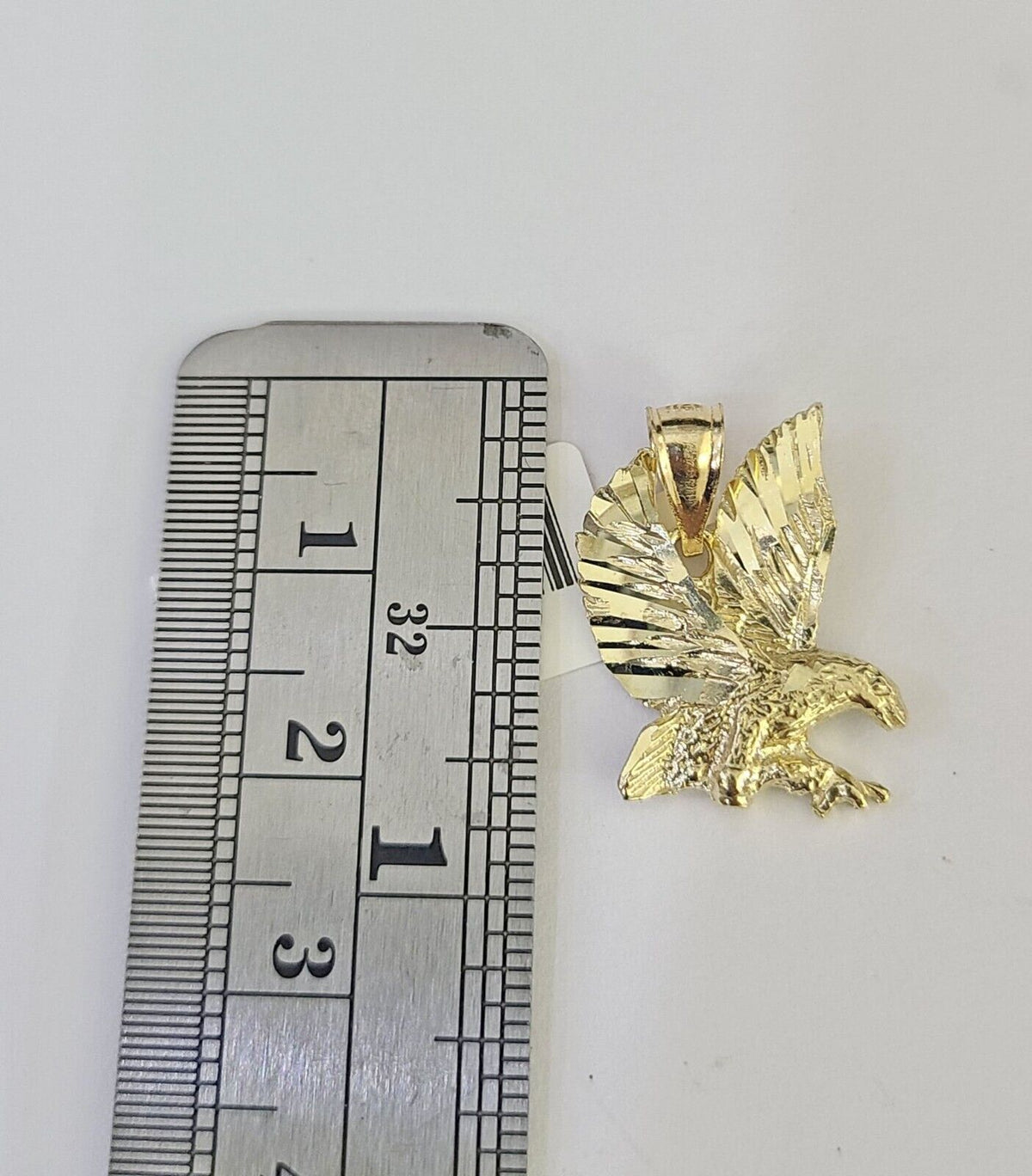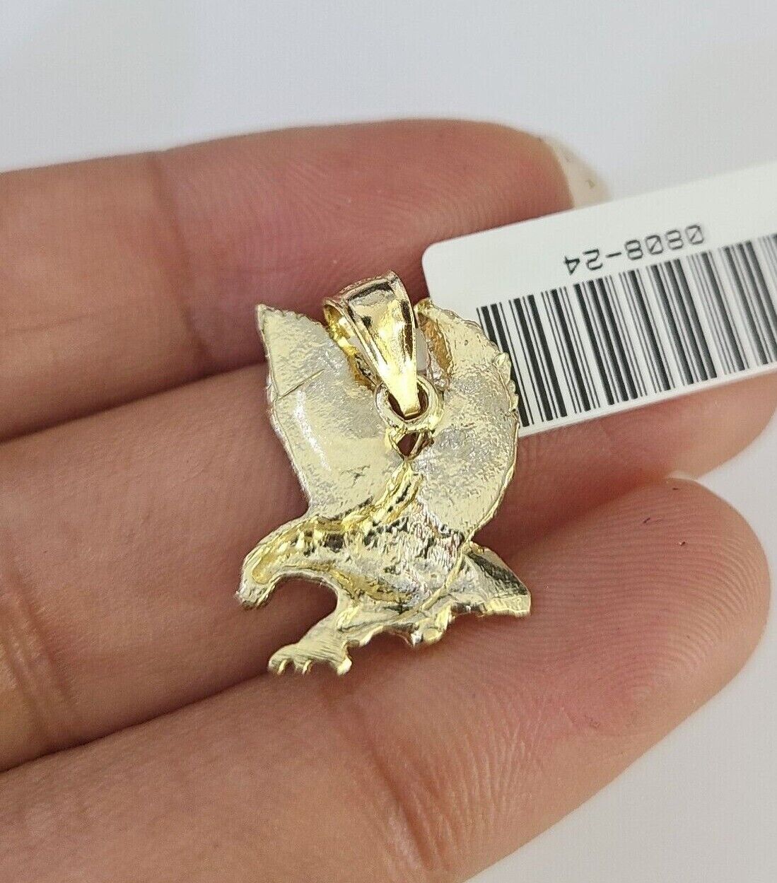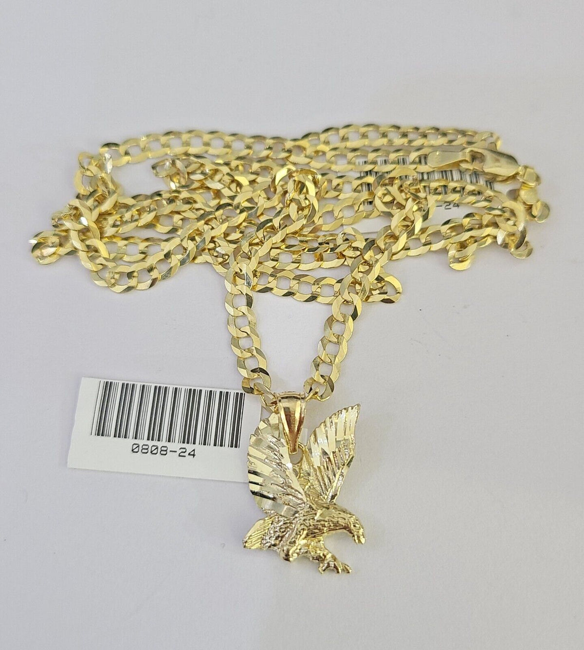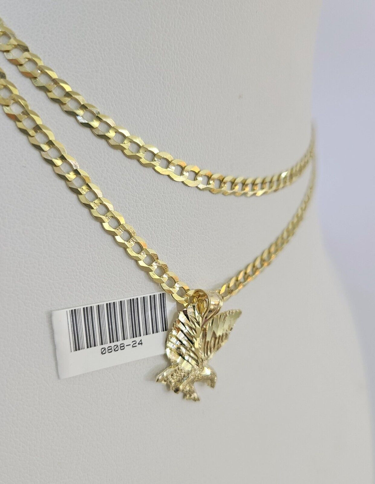 10k Gold Cuban Curb Chain Eagle Charm Solid 4mm 18"-28" SET Necklace Pendant - 18" Chain with Charm