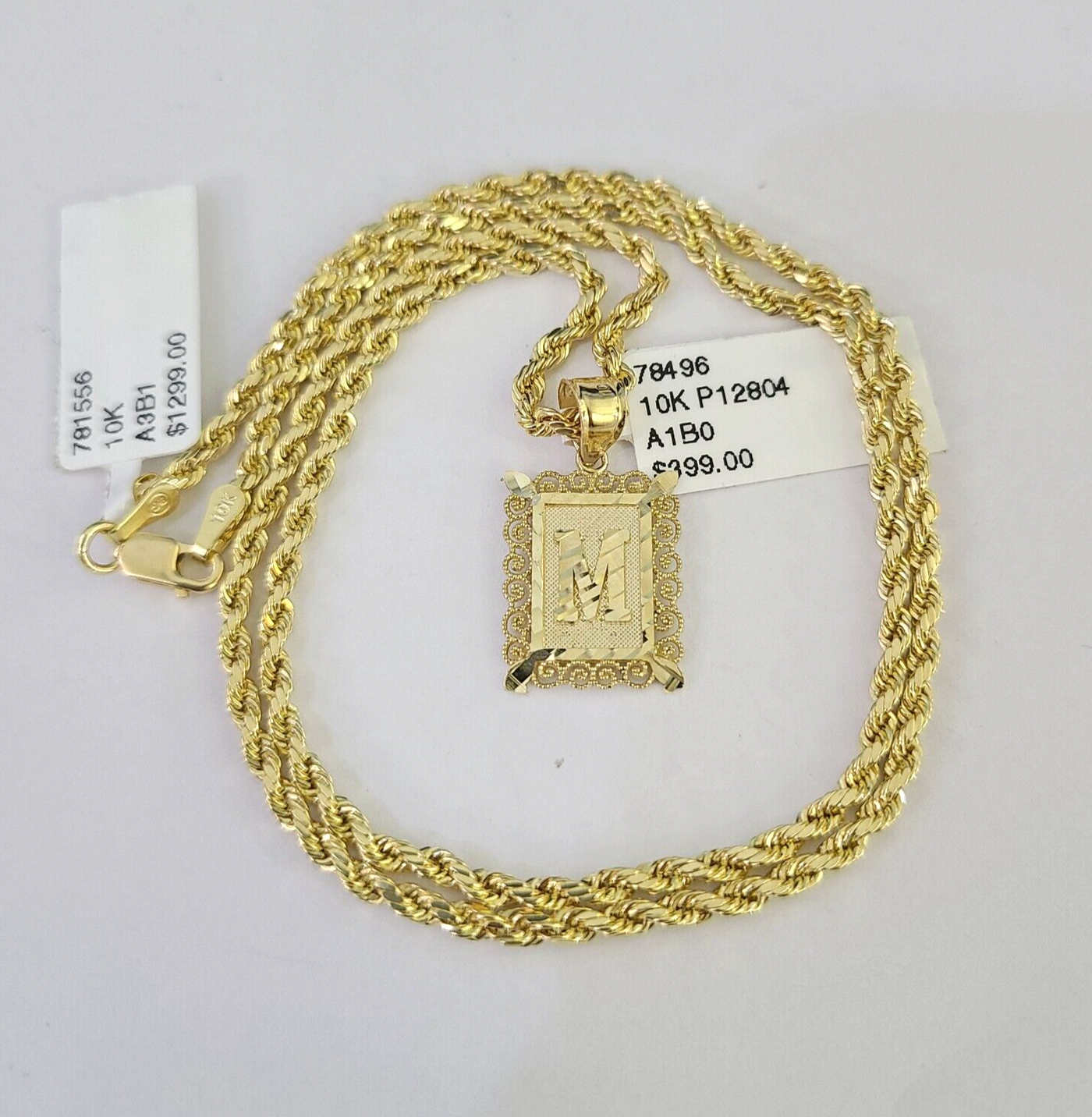 10k Gold Initial M Charm Rope Chain 16"-26" 2.5mm SET Necklace Alphabe – Goldenlinq index