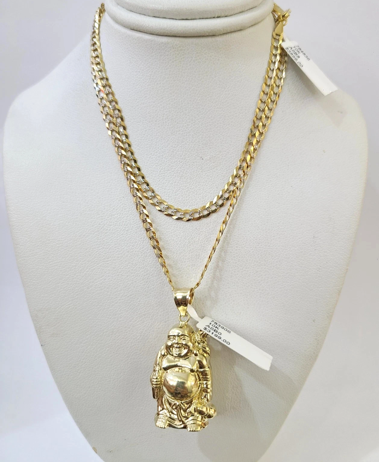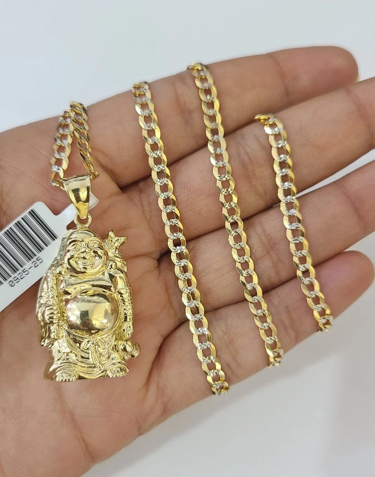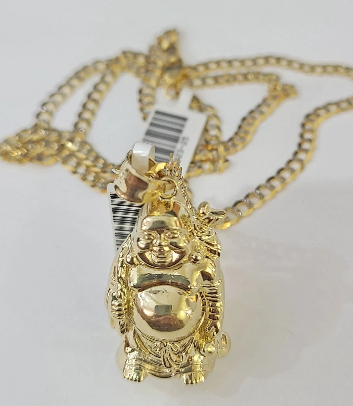 10k Gold Solid Cuban Curb Chain Laughing Buddha Pendant Charm 3mm Necklace - 22 inch with charm