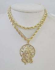 10k Jesus Christ Pendant Rope Chain 5mm 18"-26" SET Necklace Charm