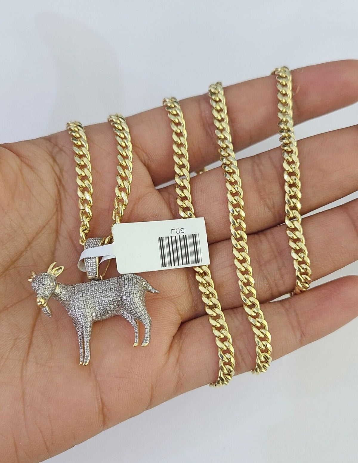 10k Miami Cuban Chain Goat Charm Set 4.5mm 20"-28" Necklace Pendant Gold - With 20 Inch Chain & Charm