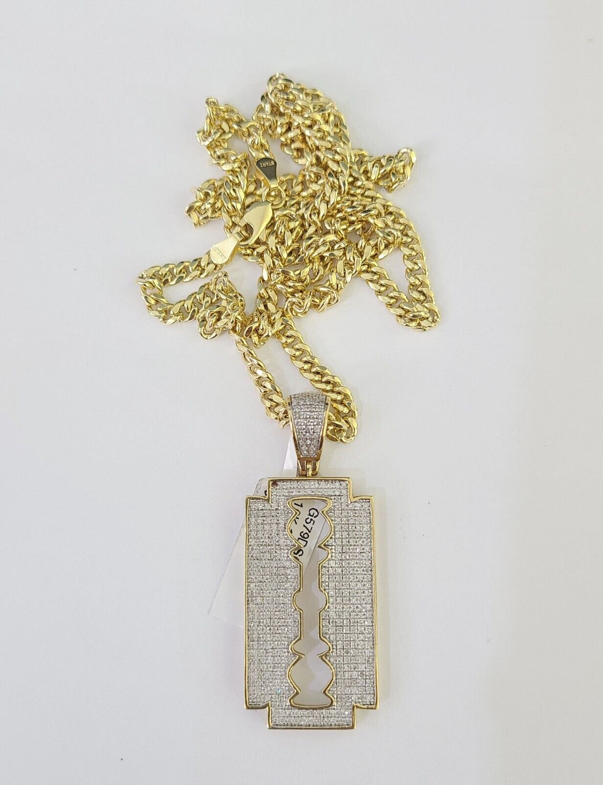 10k Miami Cuban Chain Razor Blade Charm Diamond Set 4.5mm 20"-28" Neck – Goldenlinq index