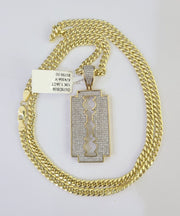 10k Miami Cuban Chain Razor Blade Charm Diamond Set 4.5mm 20"-28" Necklace Gold