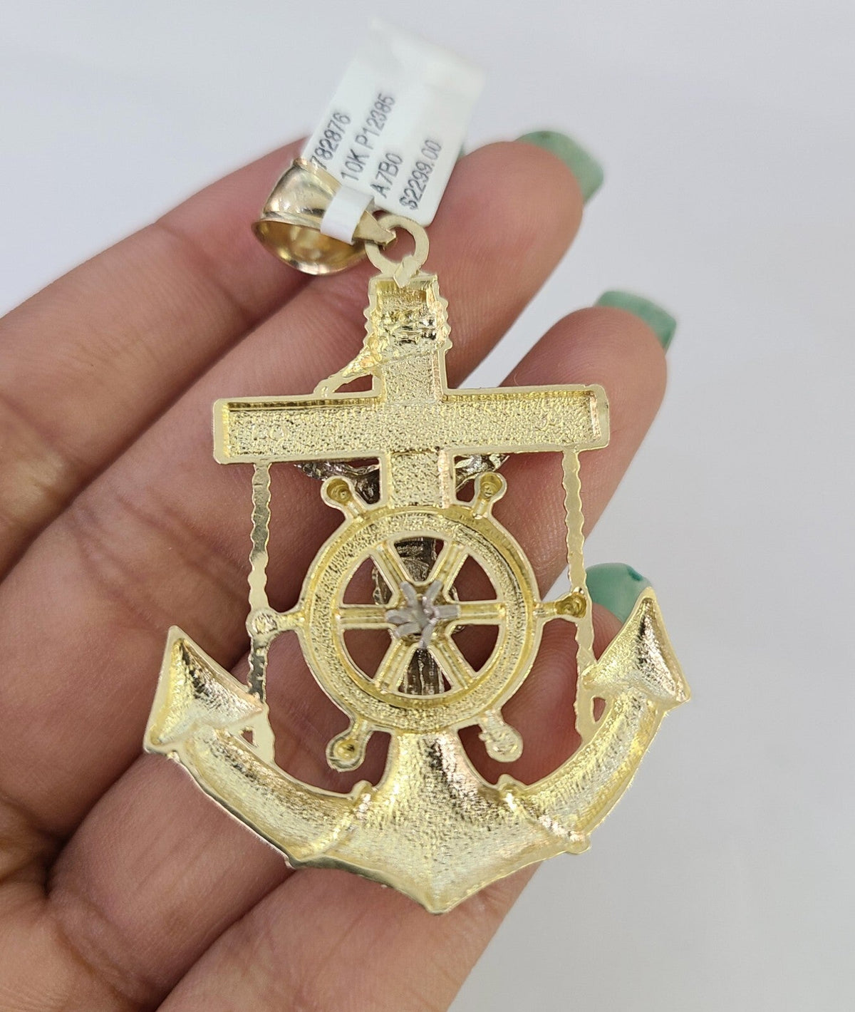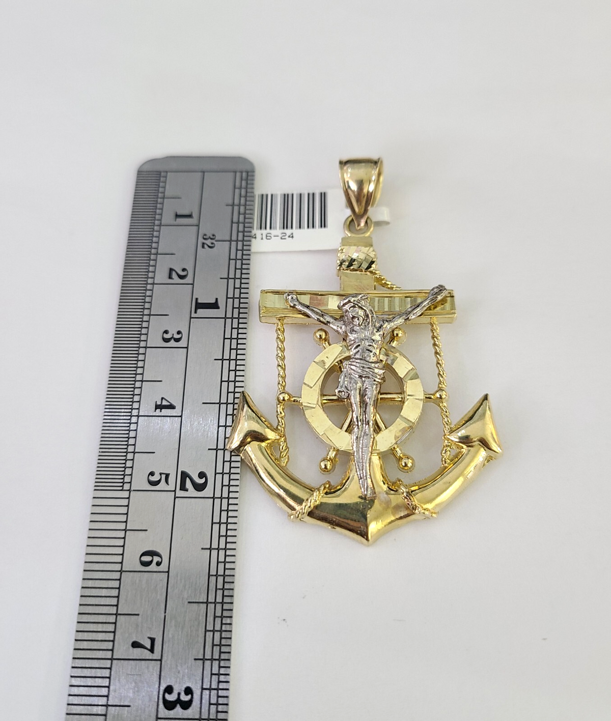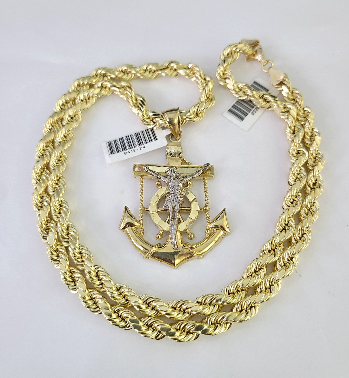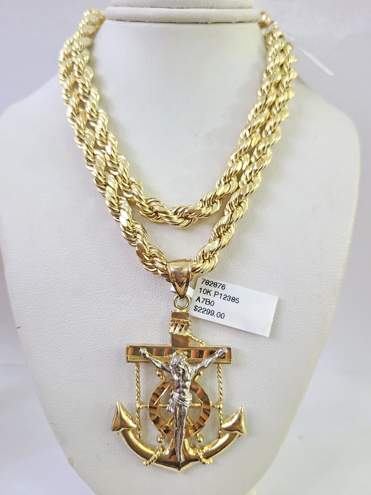 10k Rope Chain Jesus Anchor Charm Pendant Gold 18"-30'' Inch 7mm Necklace - 22 inch with charm