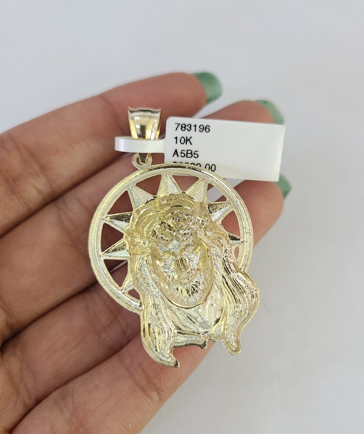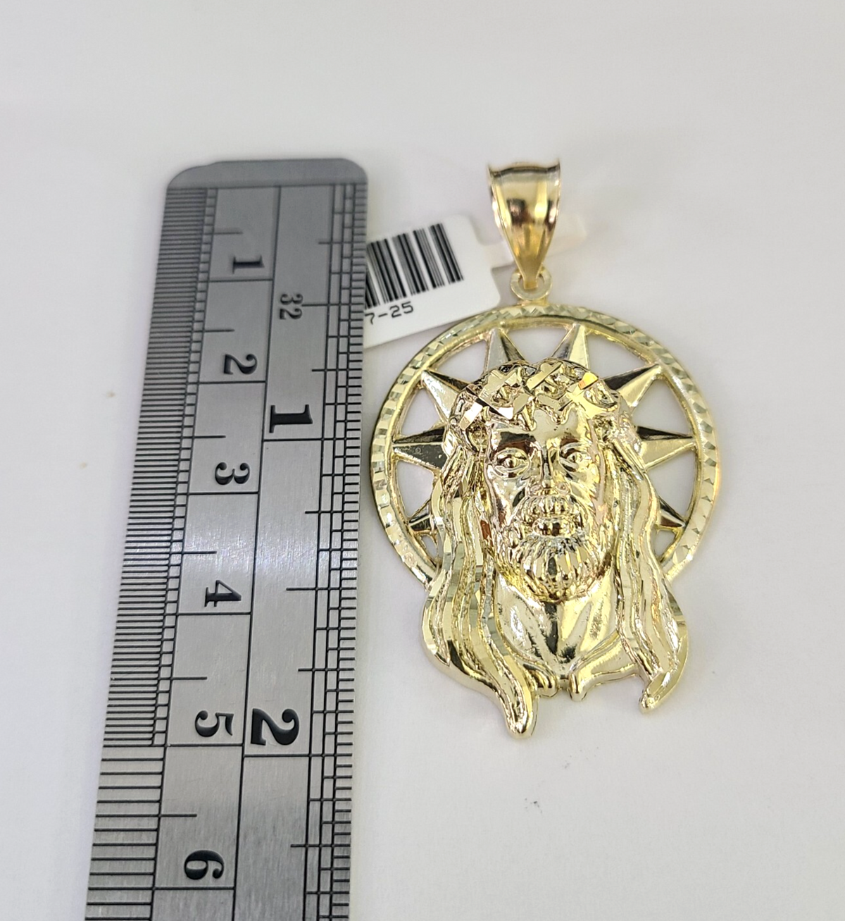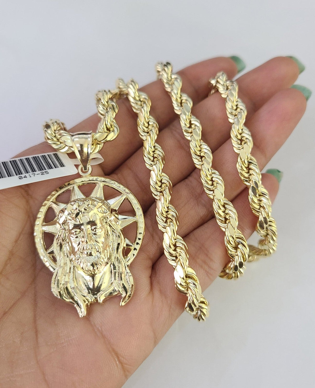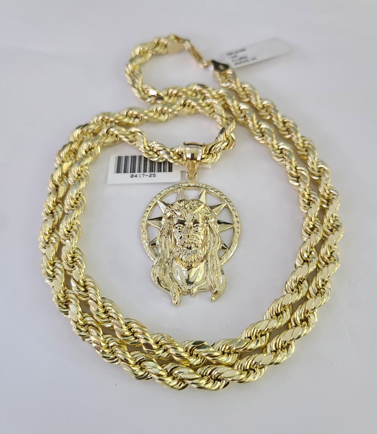 10k Rope Chain Jesus Head Charm Pendant Gold 18"-30'' Inch 7mm Necklace - 22 inch with charm