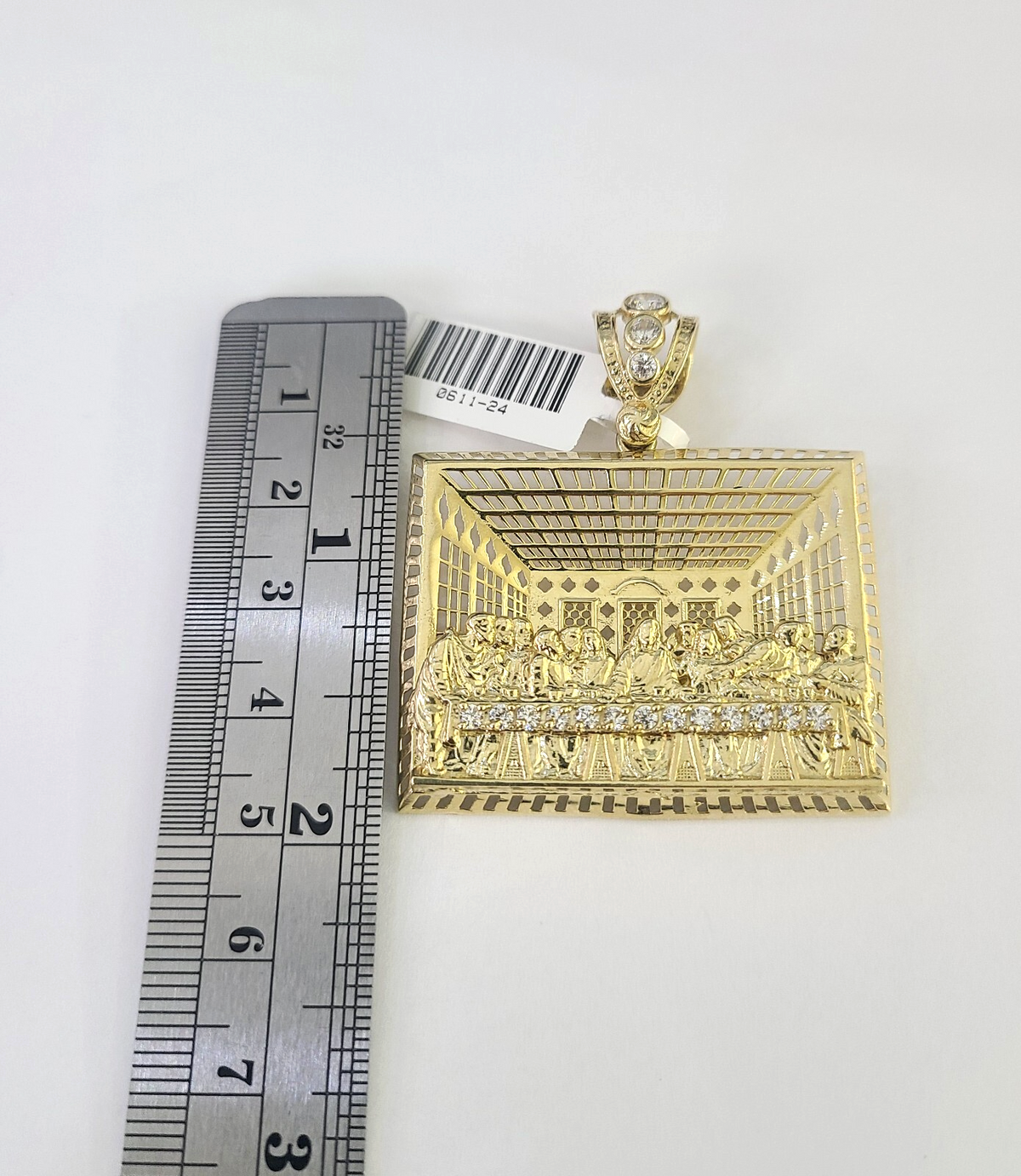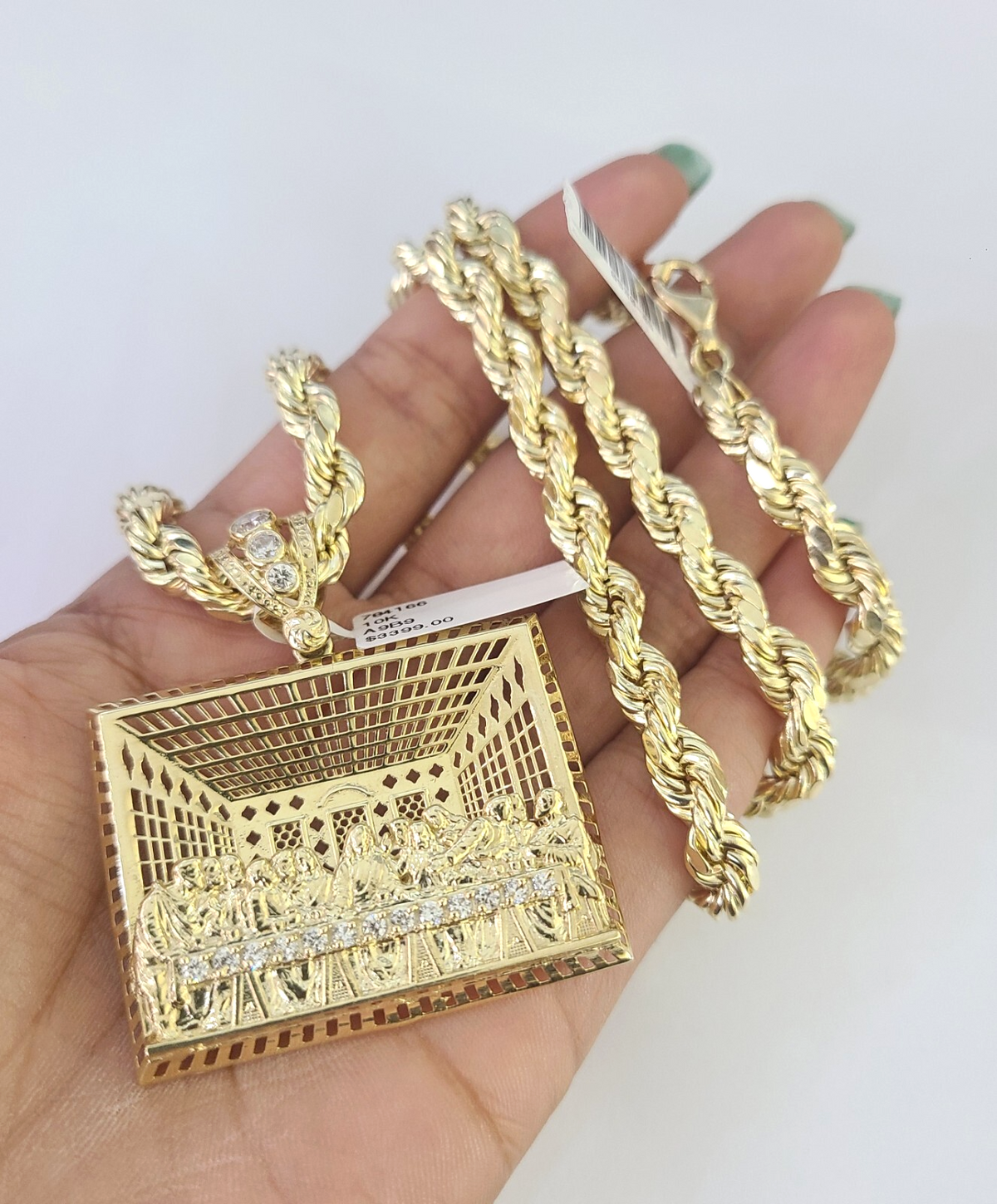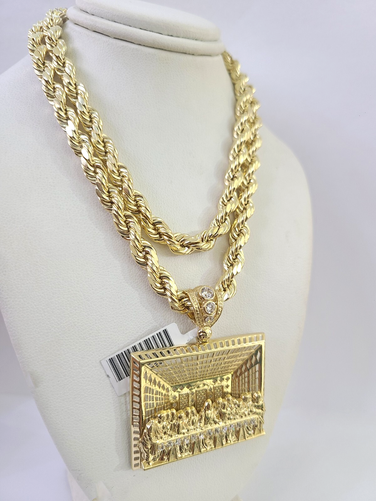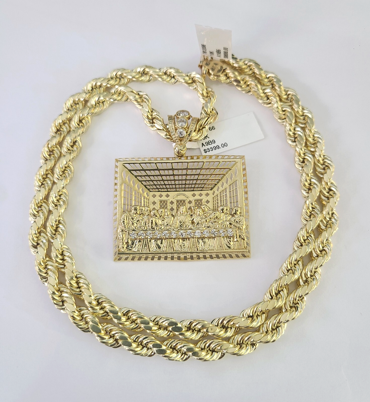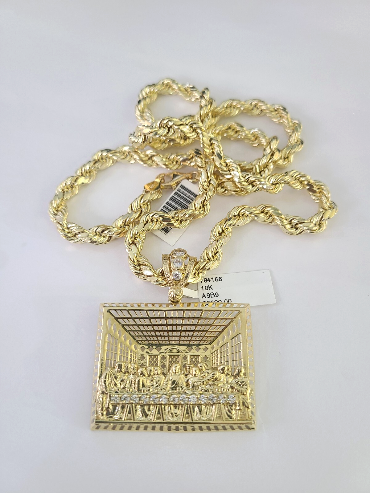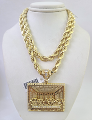 10k Rope Chain Last Supper Charm Pendant Yellow Gold 18"-30'' Inch 7mm Necklace - 22 inch with charm
