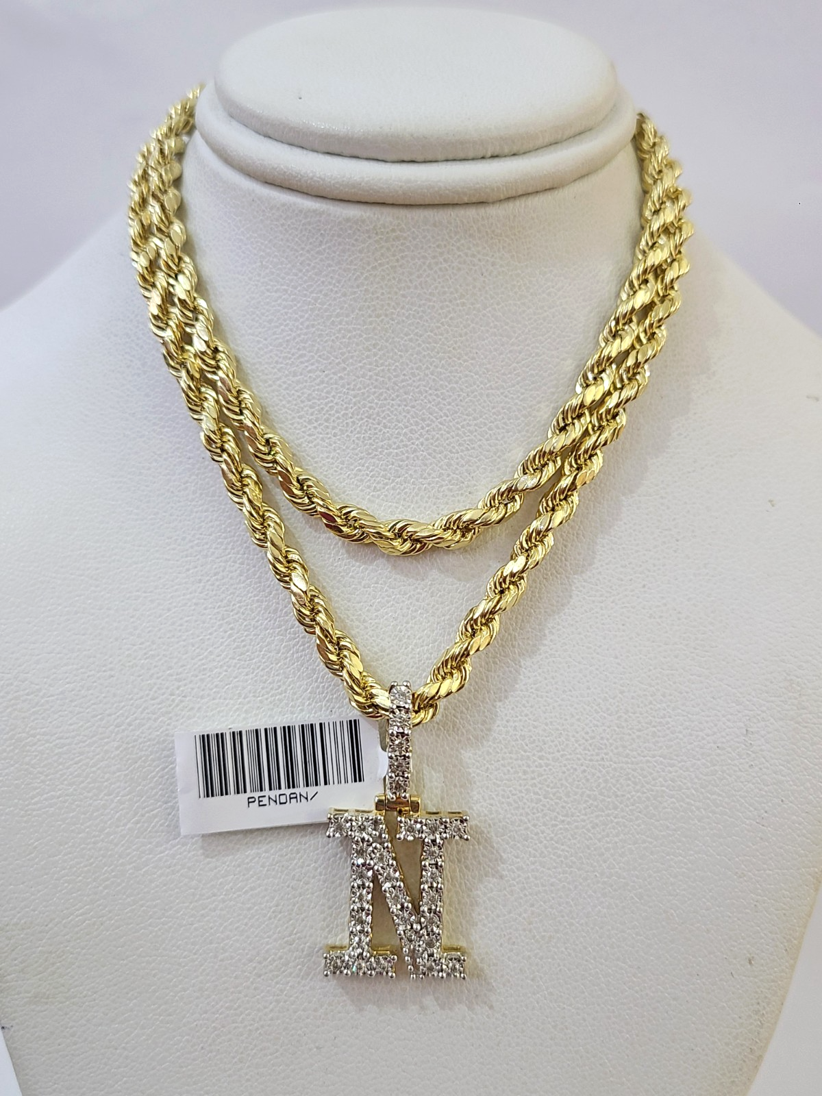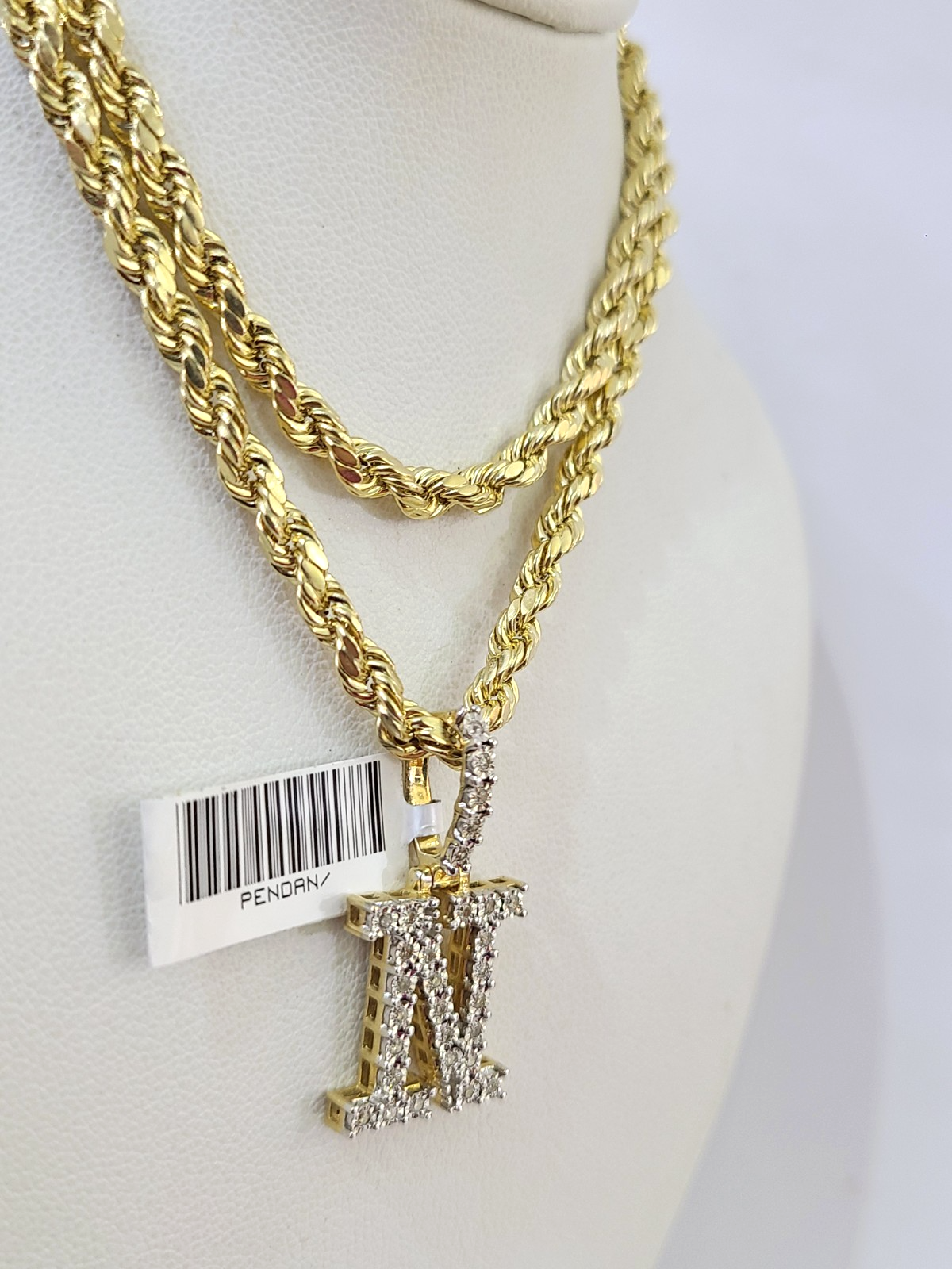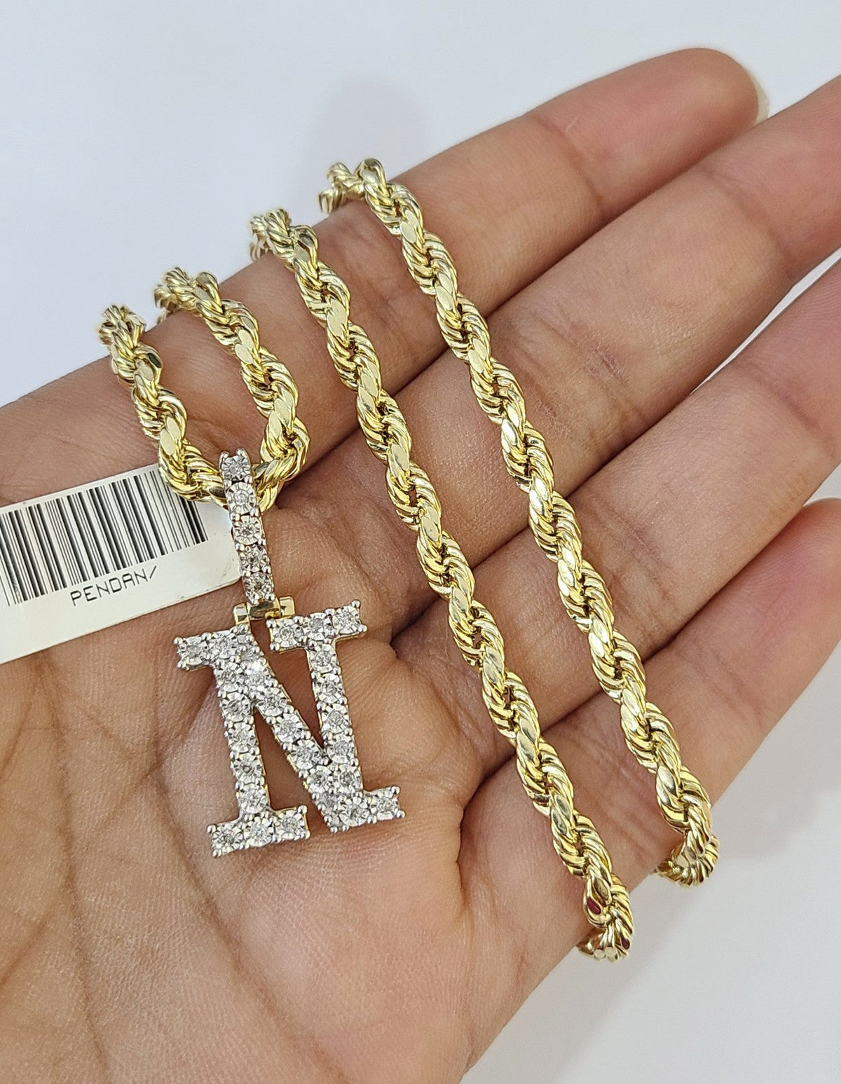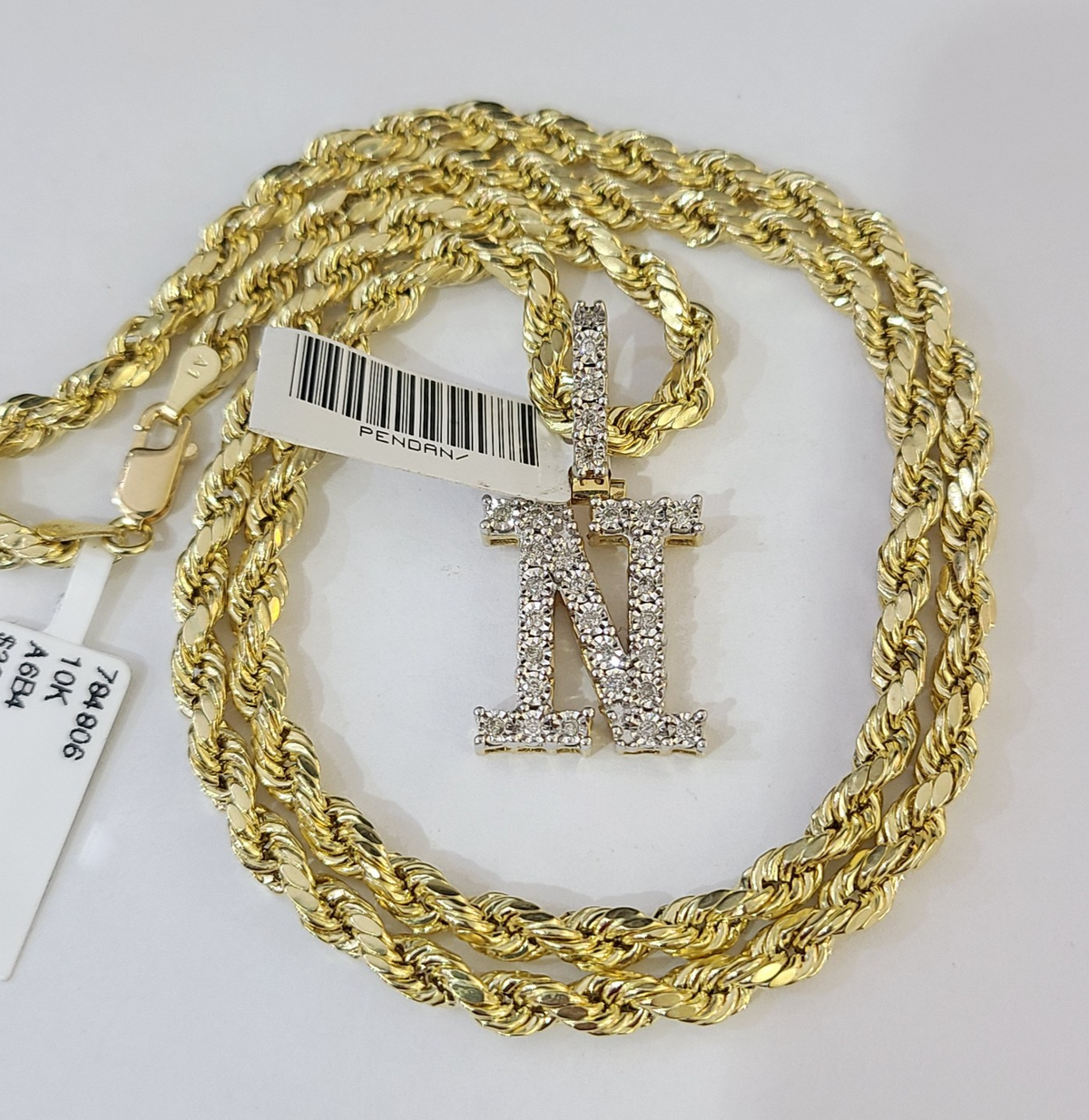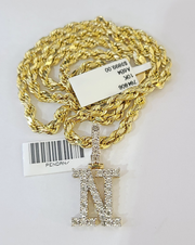 10k Rope Chain N Diamond Initial Charm Necklace Pendant Set 4mm 20"-30" Gold - 22 inch with charm