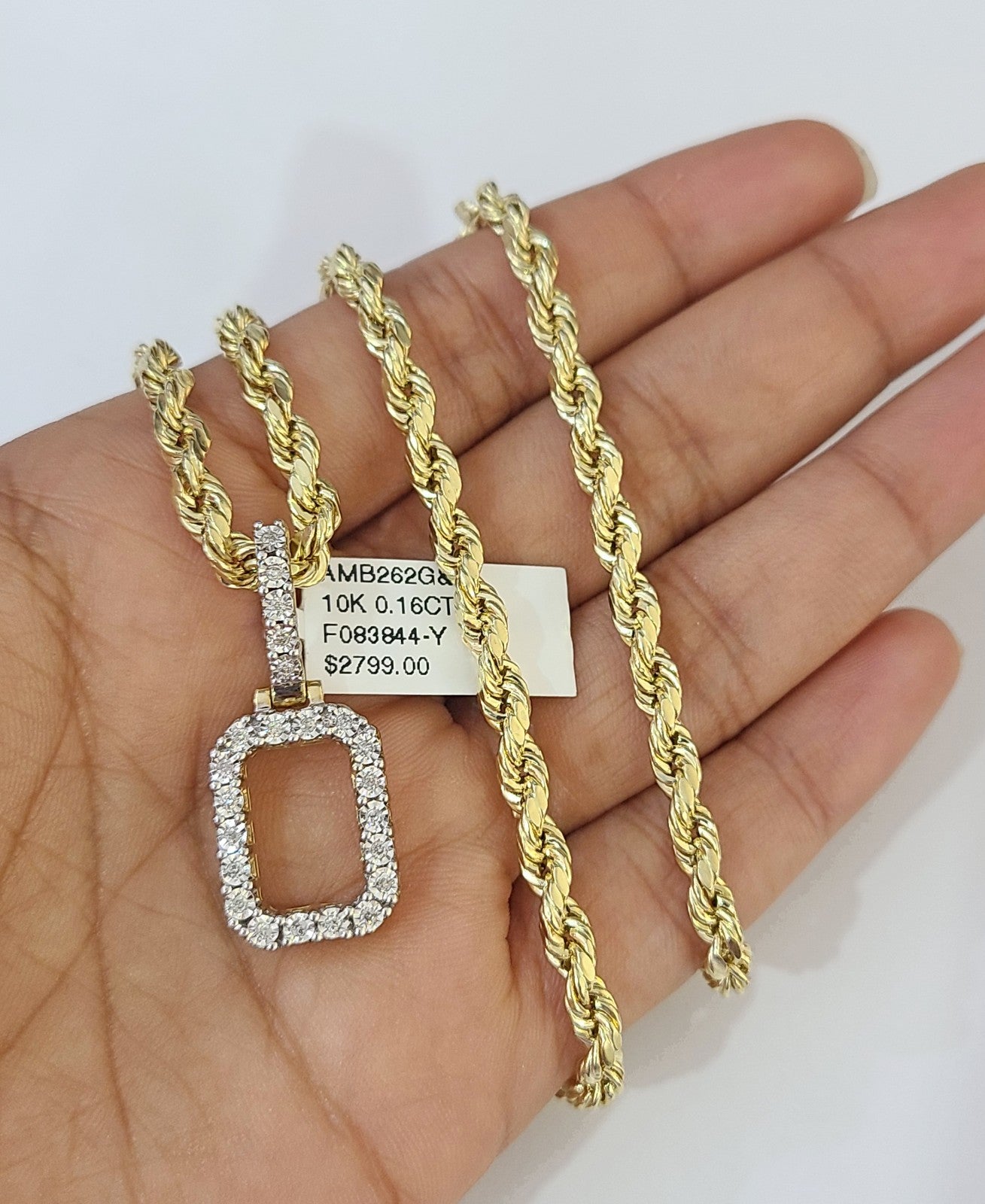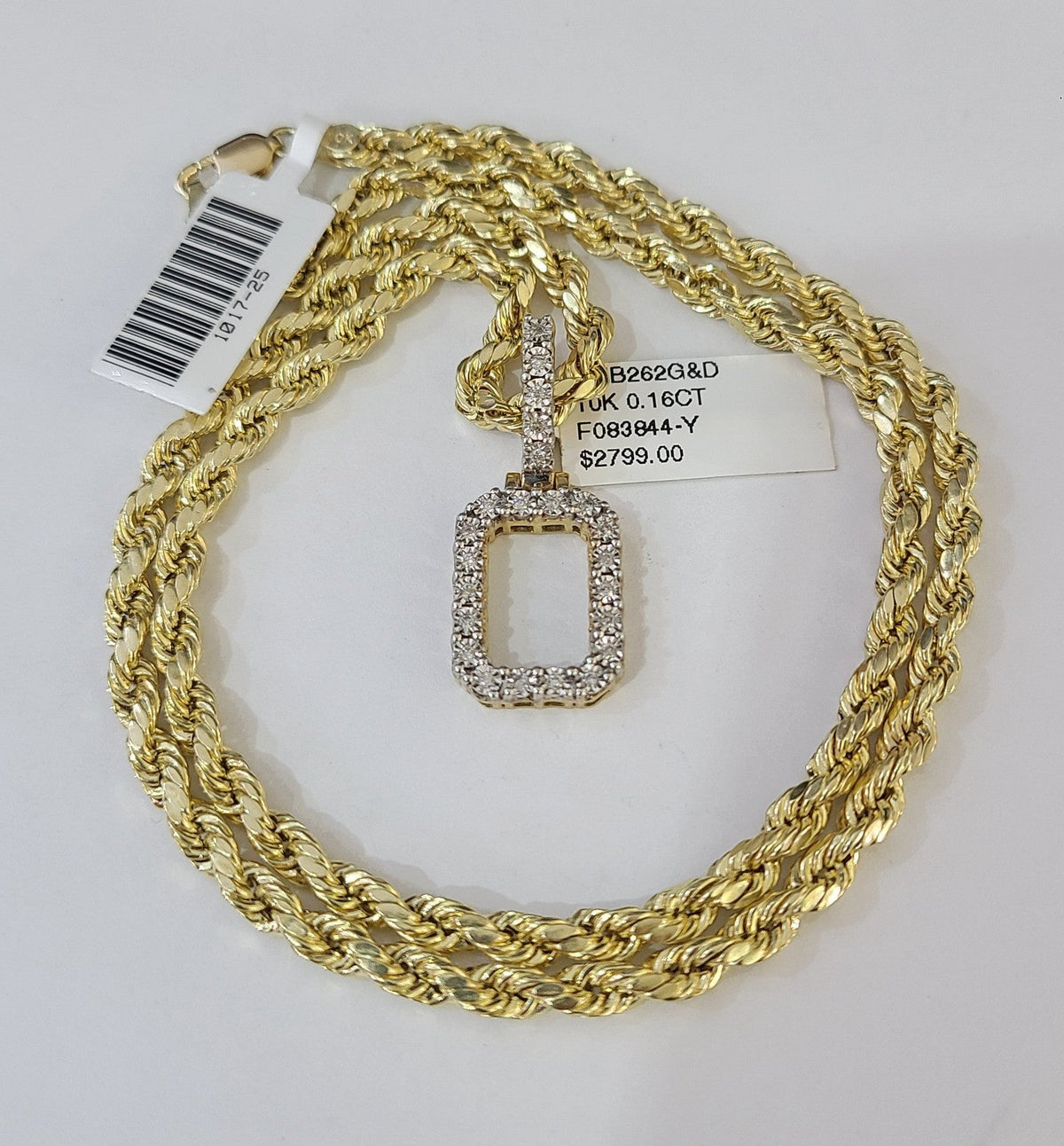 10k Rope Chain O Diamond Initial Charm Necklace Pendant Set 4mm 20"-30 – Goldenlinq index