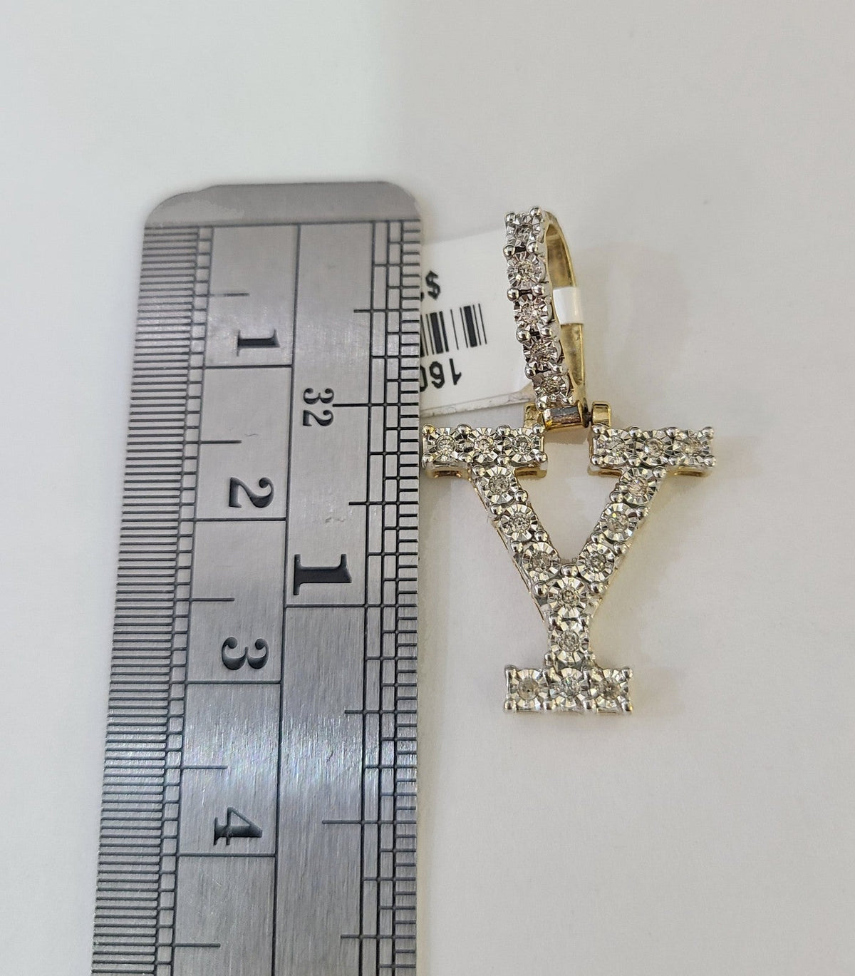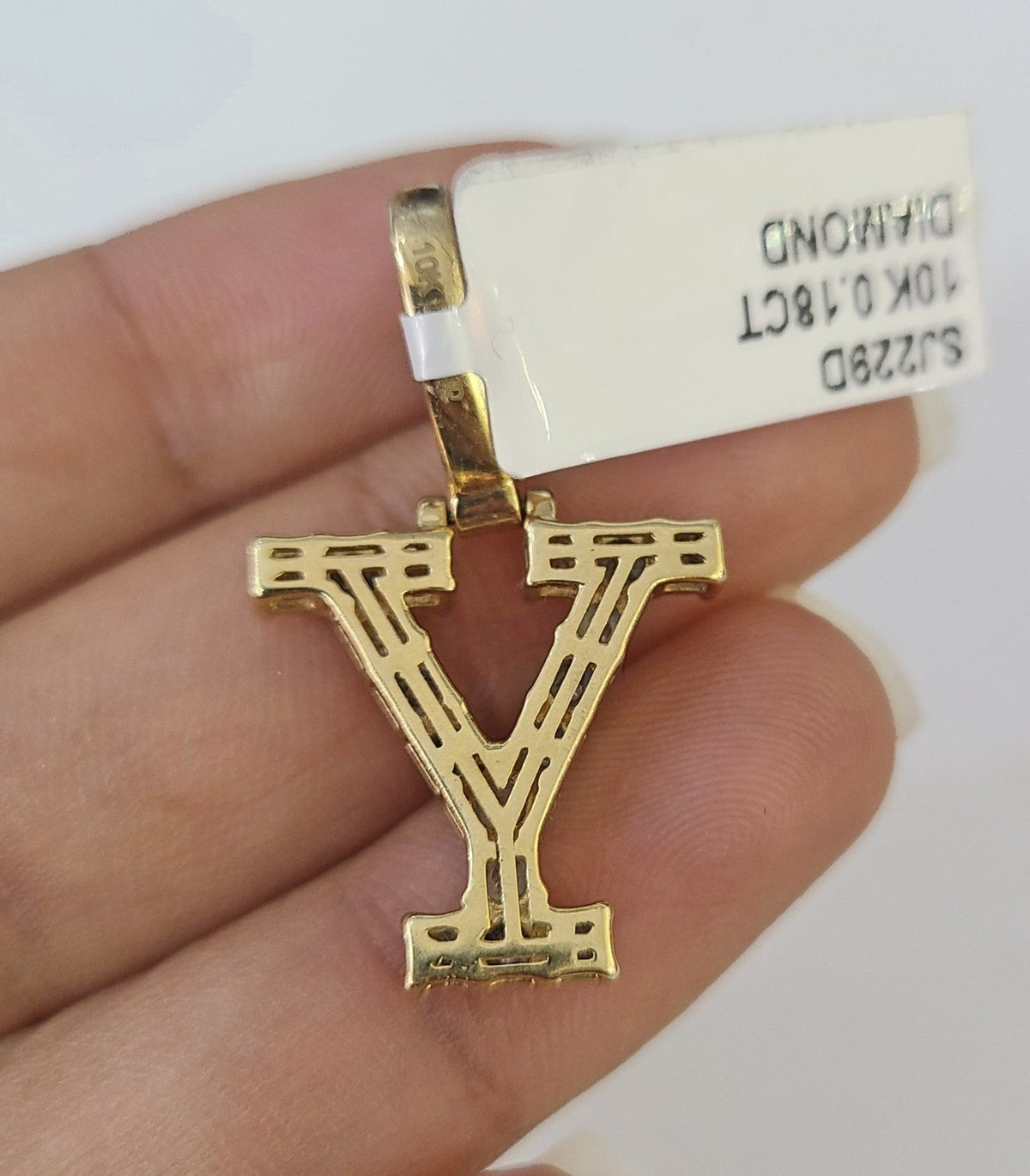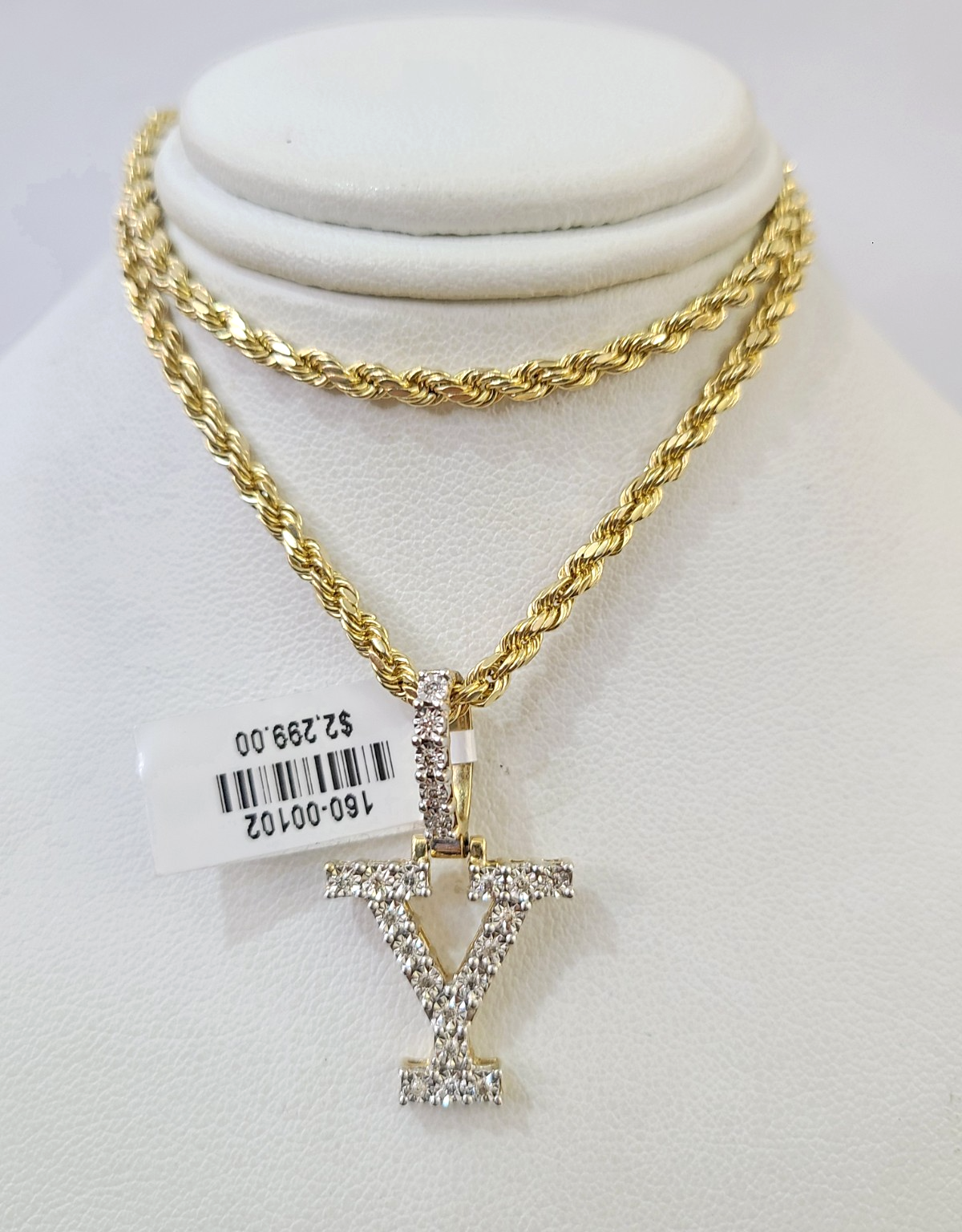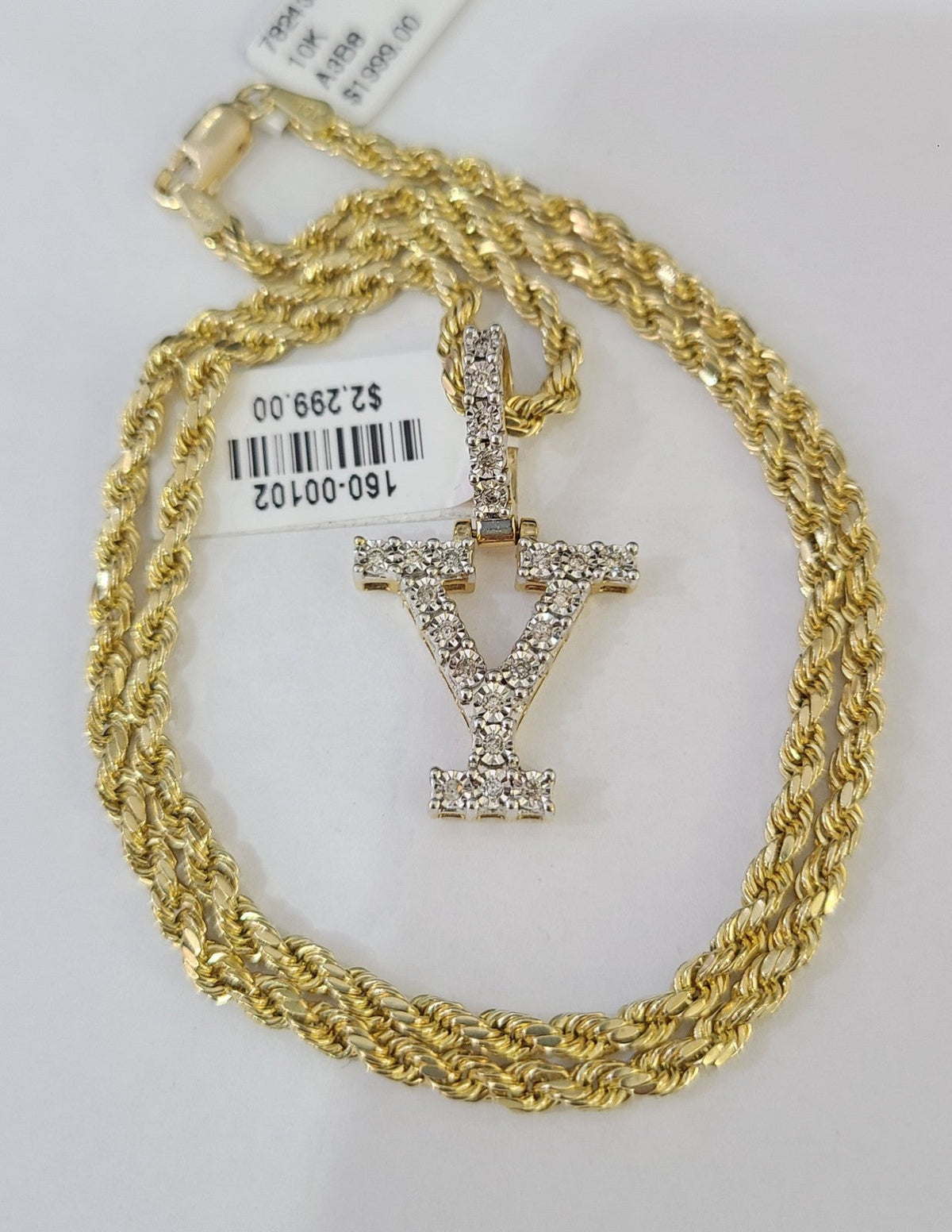 10k Rope Chain Y Diamond Initial Charm Necklace Pendant Set 2mm 18"-24" Gold - 22 inch with charm