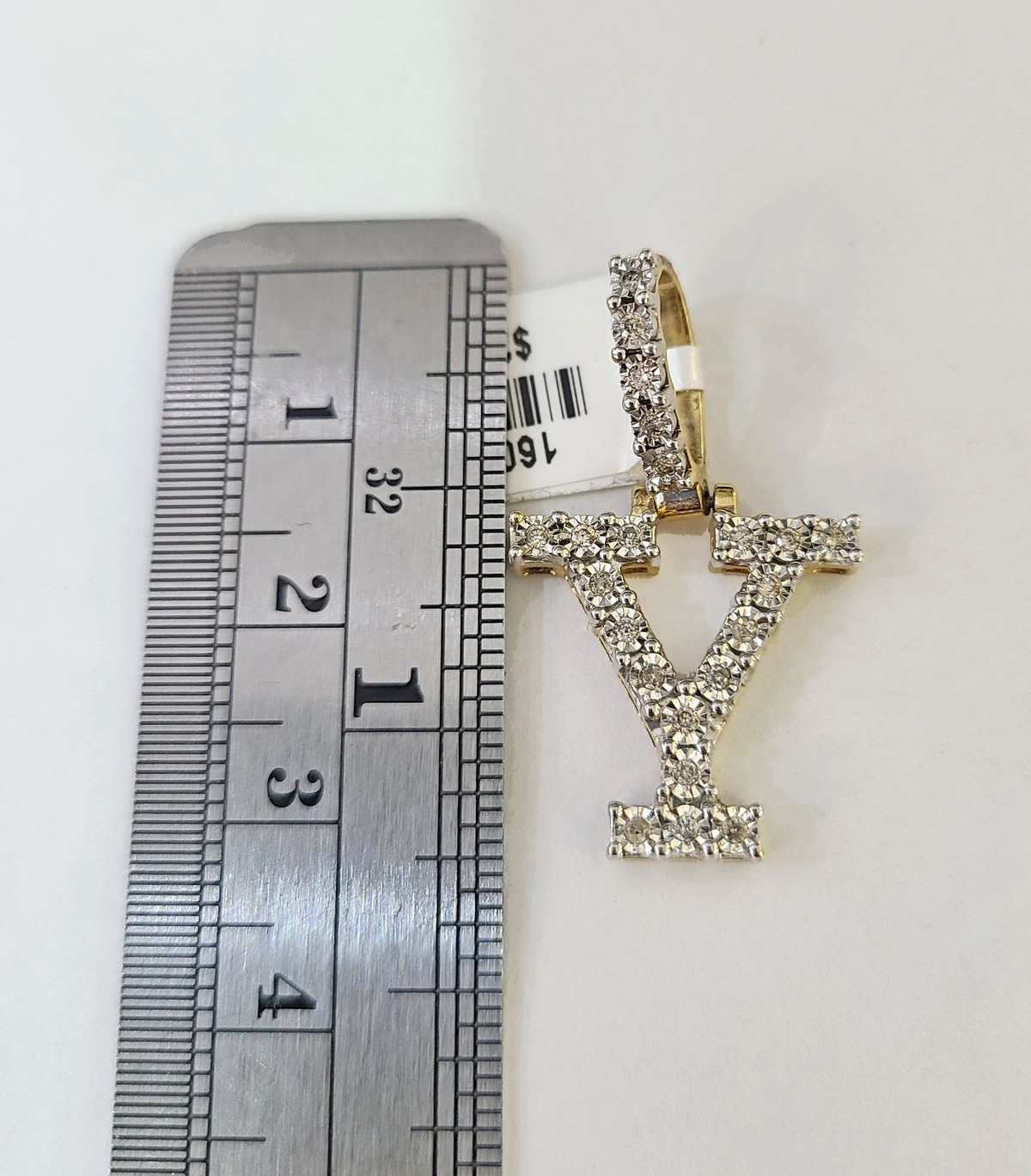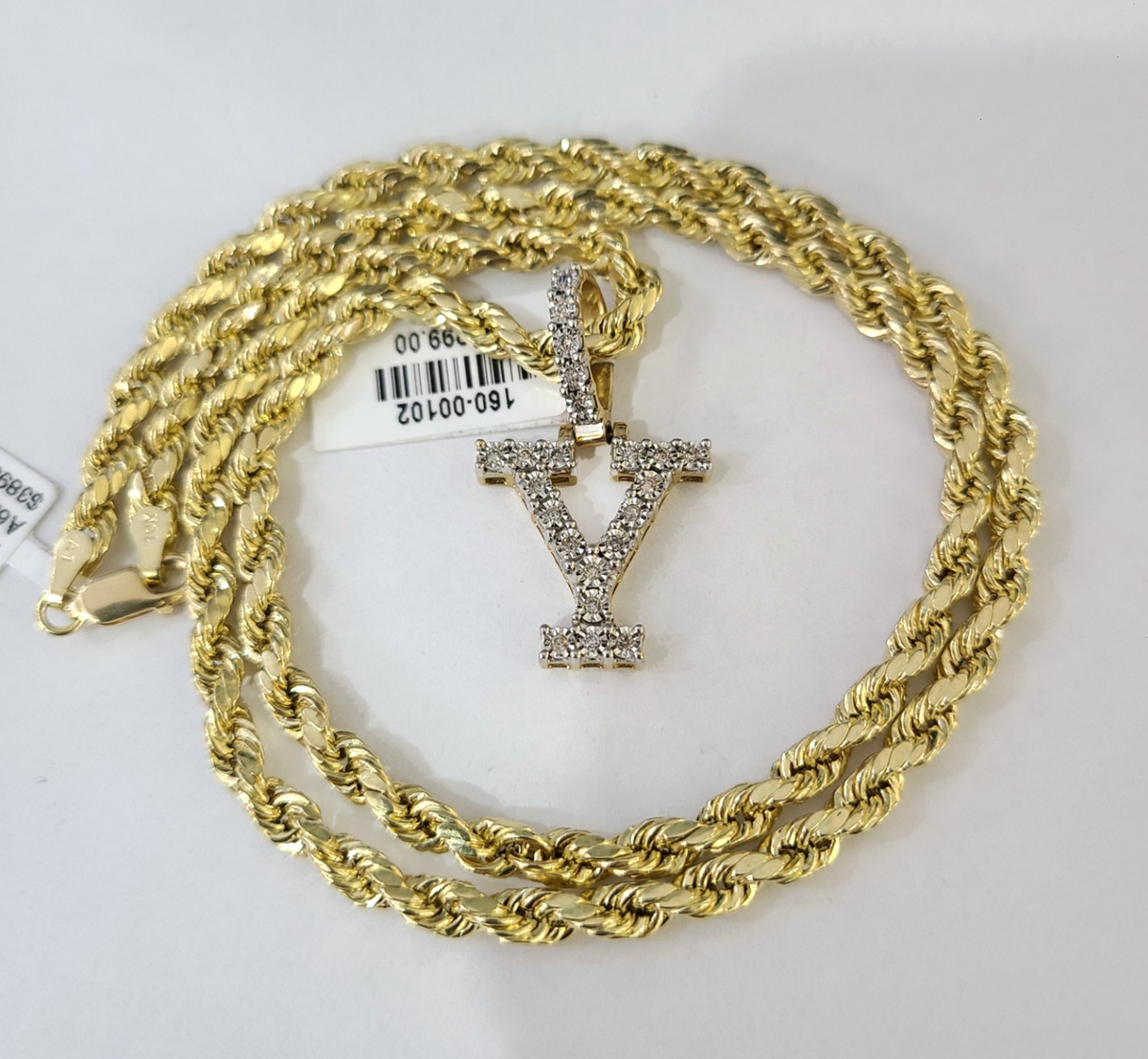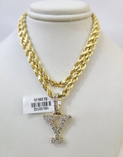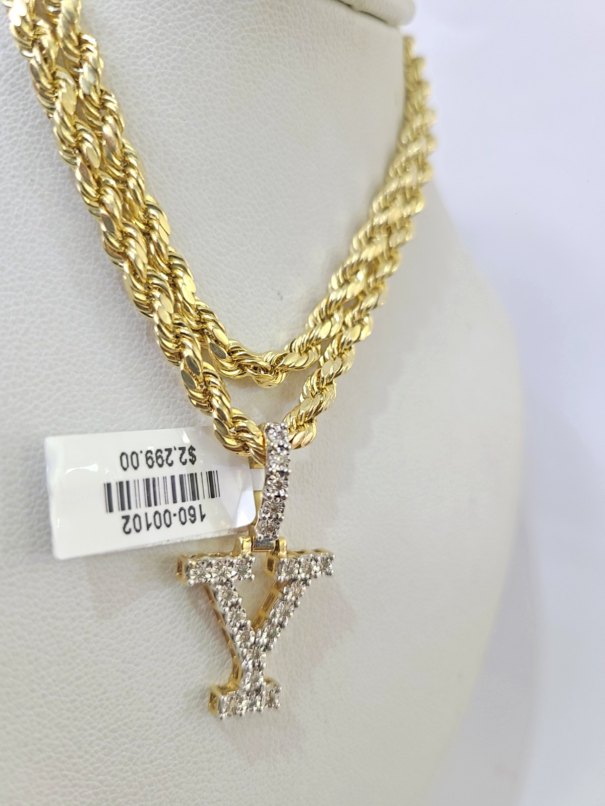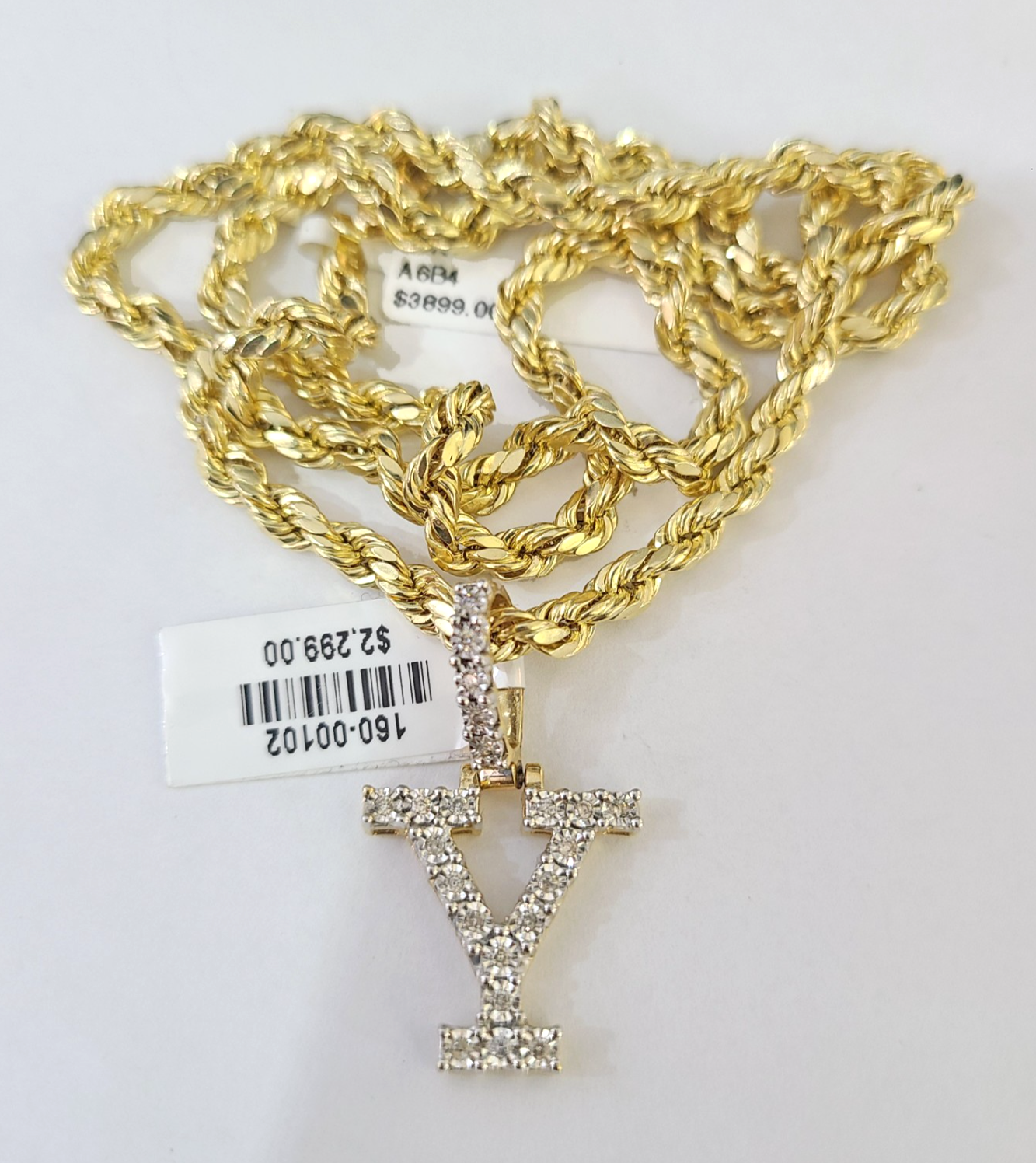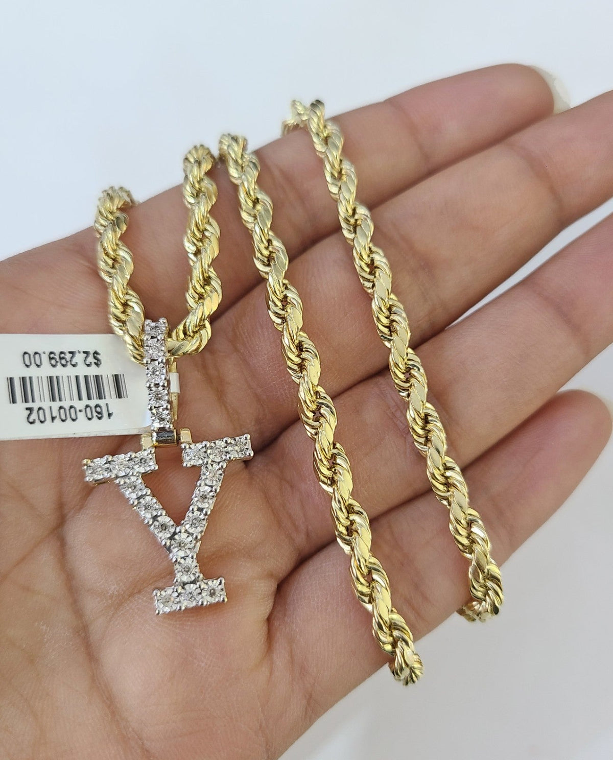 10k Rope Chain Y Diamond Initial Charm Necklace Pendant Set 4mm 20"-30" Gold - 22 inch with charm