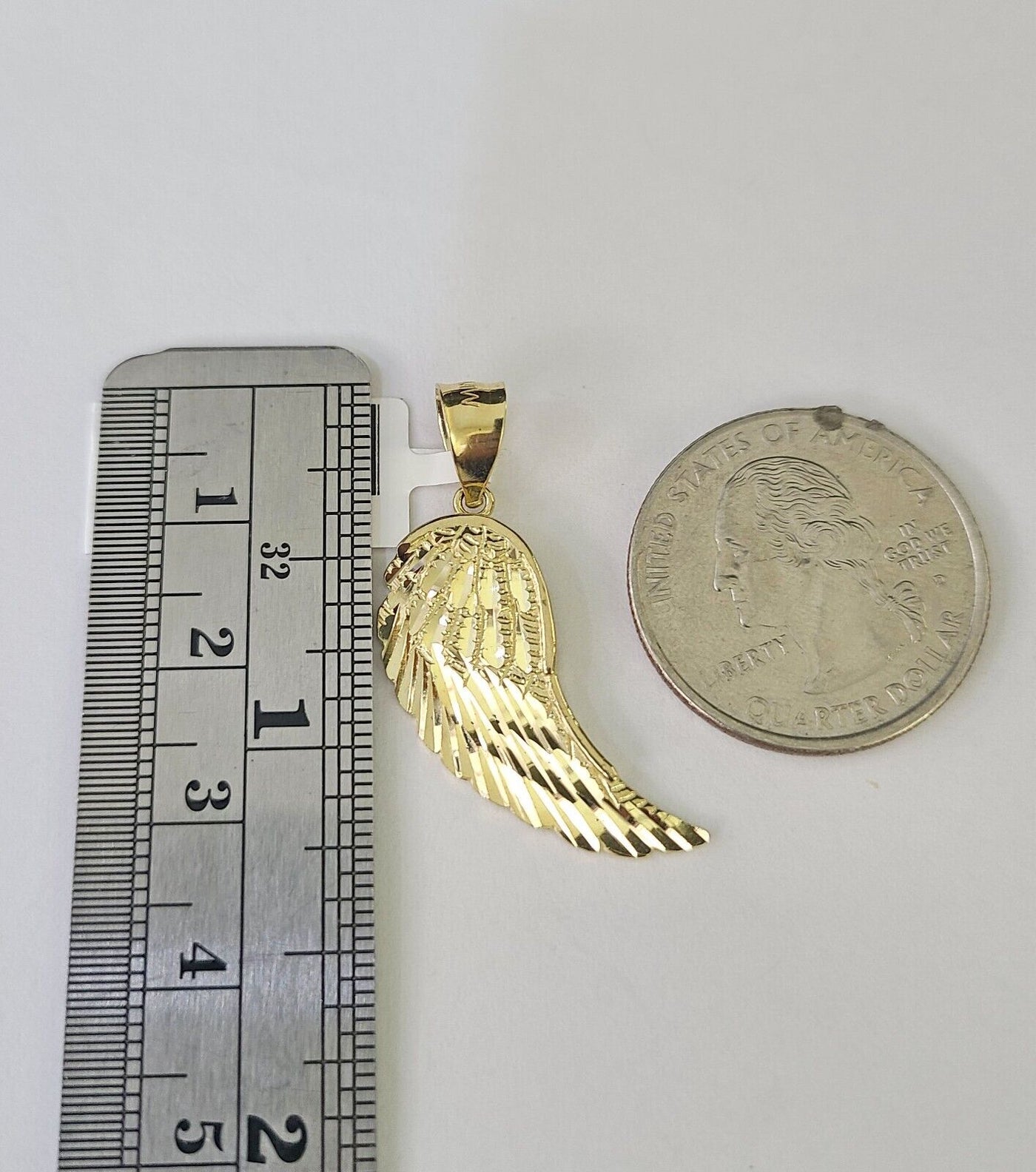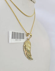 10K Solid Franco Chain Angel Wings Pendant Charm Necklace 18"-24" 1.5mm Gold - 18" chain with charm