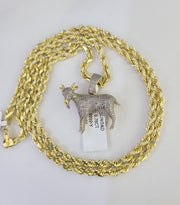 10k Solid Rope Chain Goat Charm Diamond Set 4mm 20"-28" Necklace Gold Yellow - 20" Chain with Charm