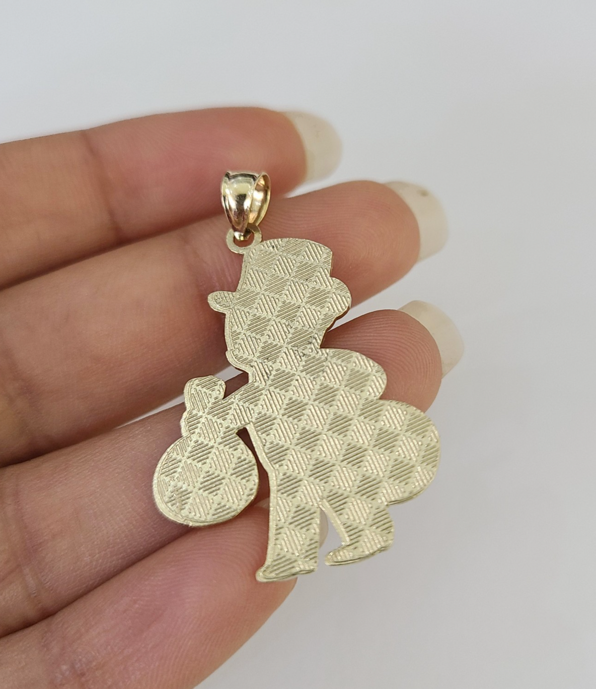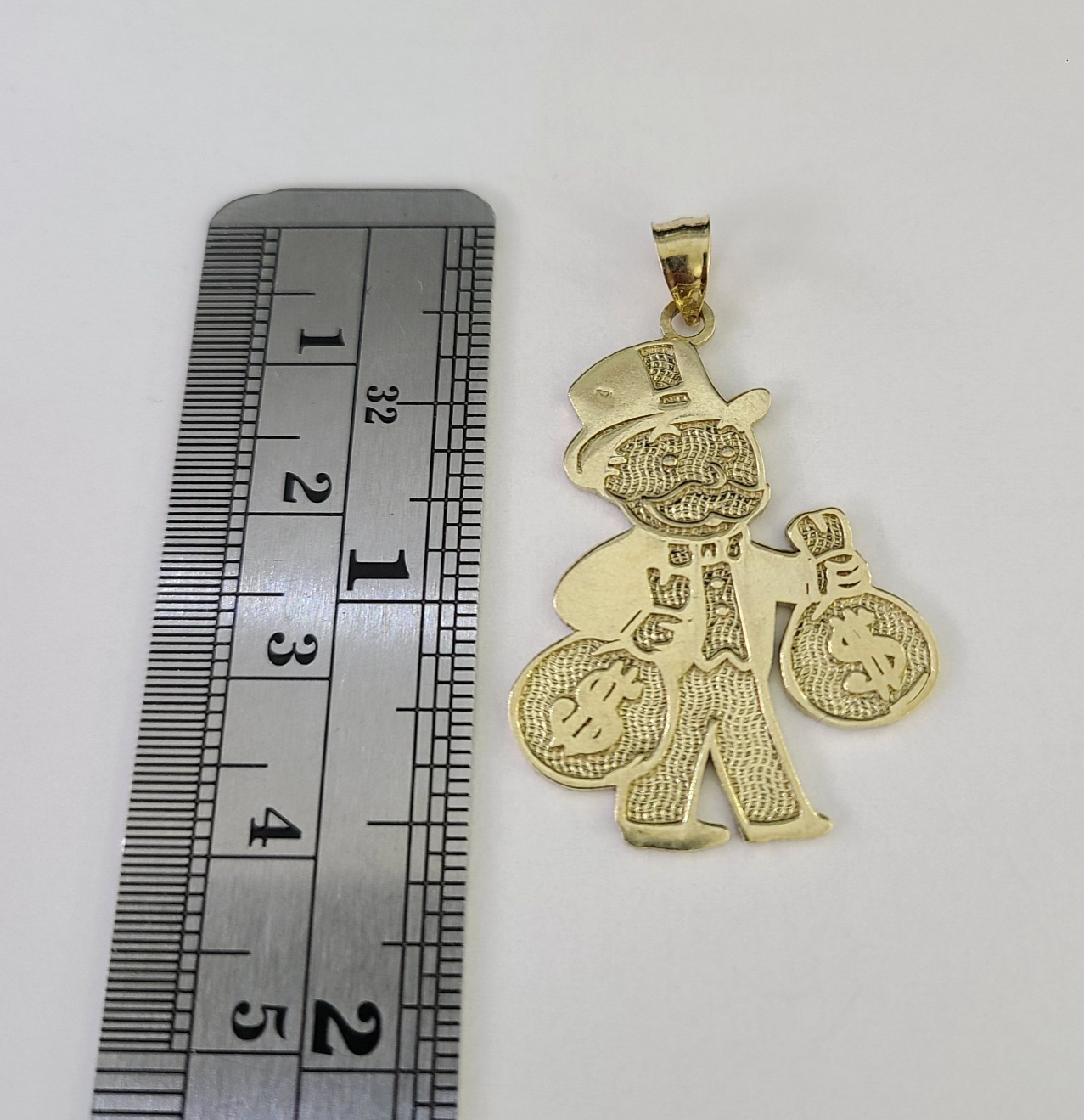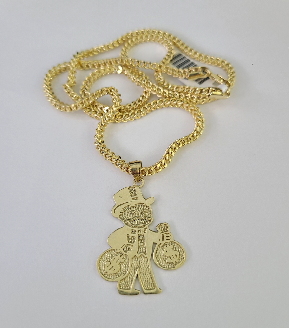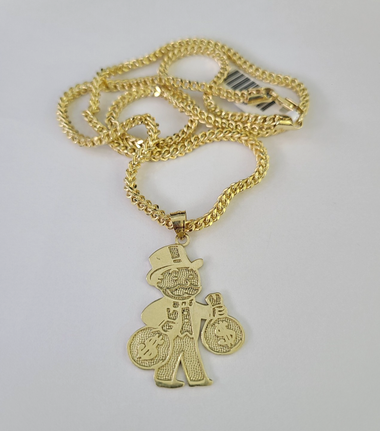 Genuine 10k Yellow Gold Franco Necklace 3mm Chain with Grandpa Money Bag Charm. The Various length of the Chain are 18"-28" inches. The pendants are unique in design and considered durable too. If you are not happy with the way it looks or feels, we do offer 30 - Days FREE Return shipping. Contact us for more information.