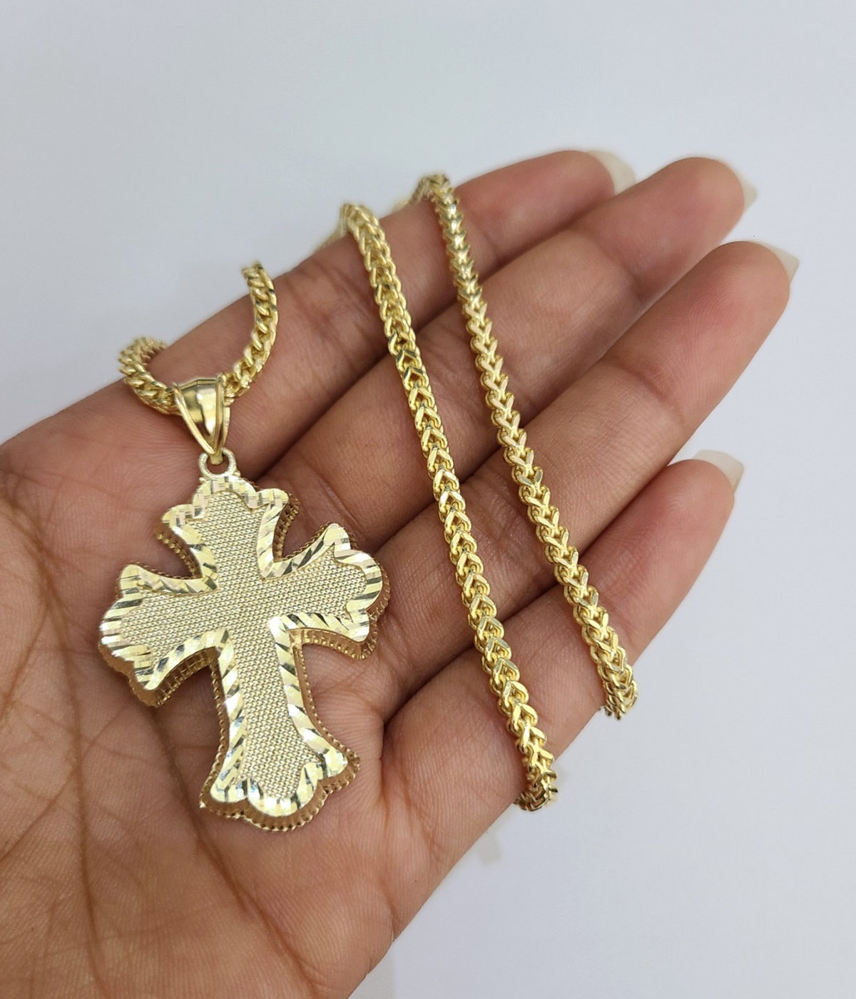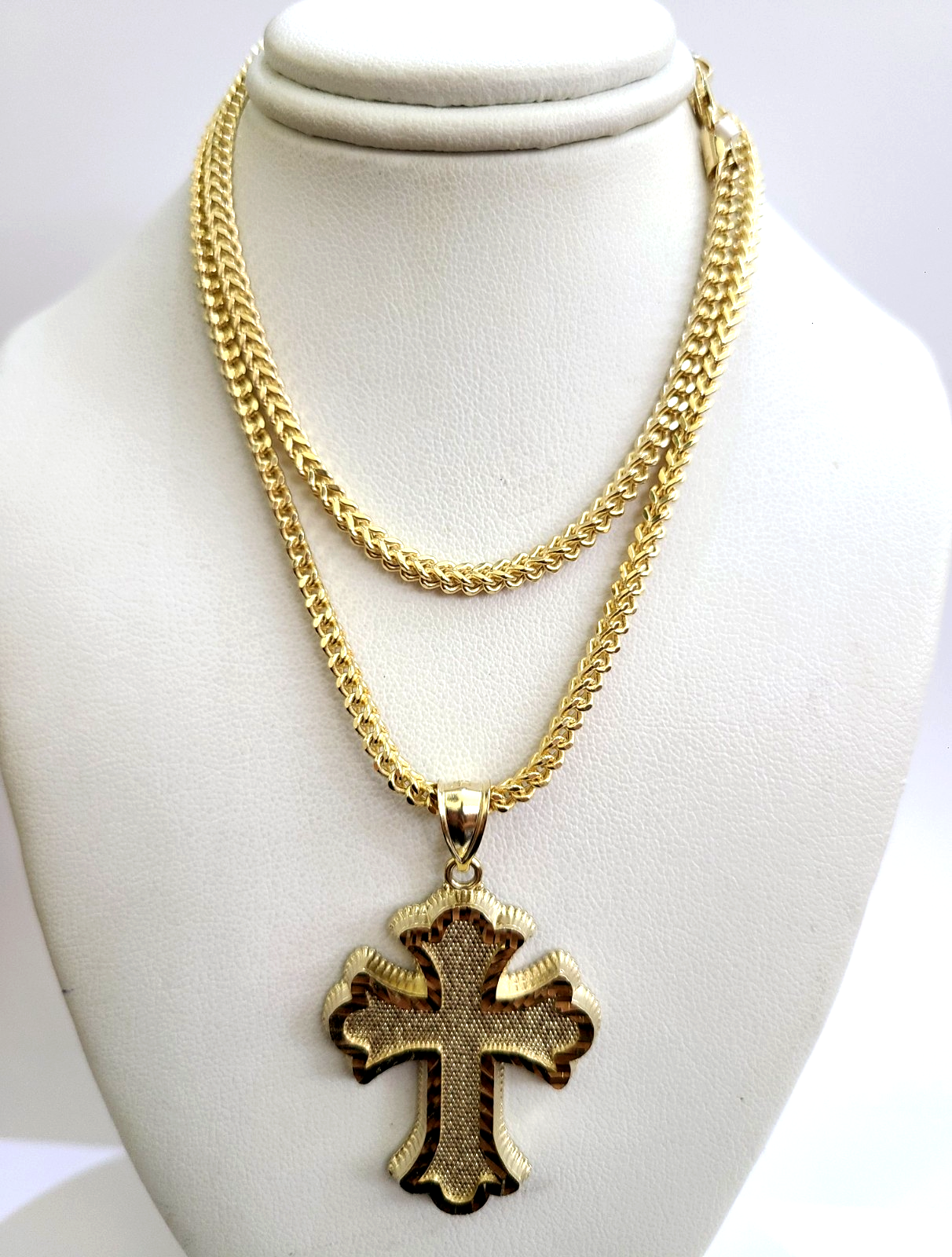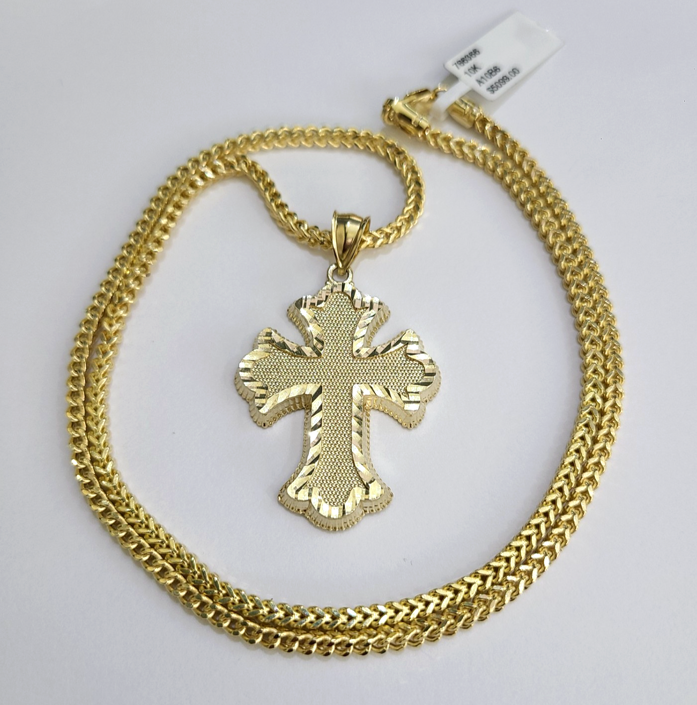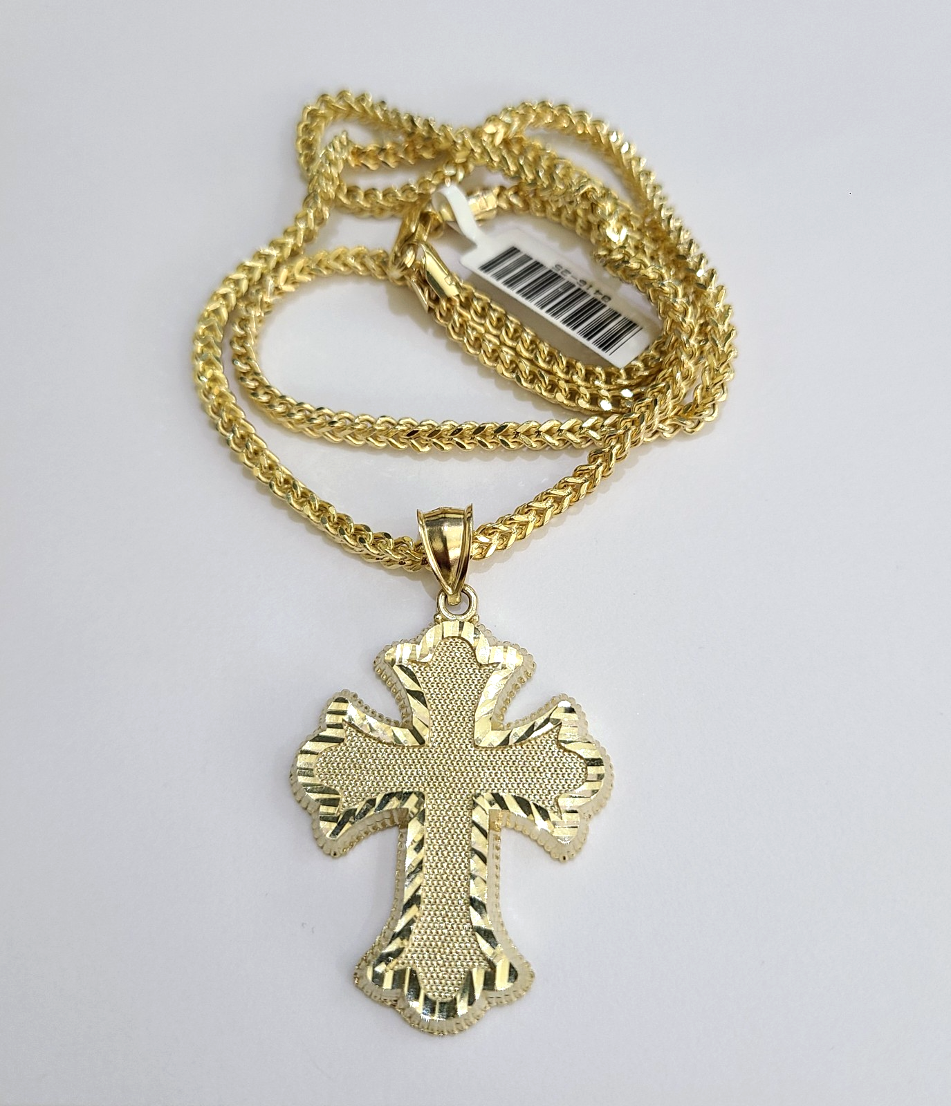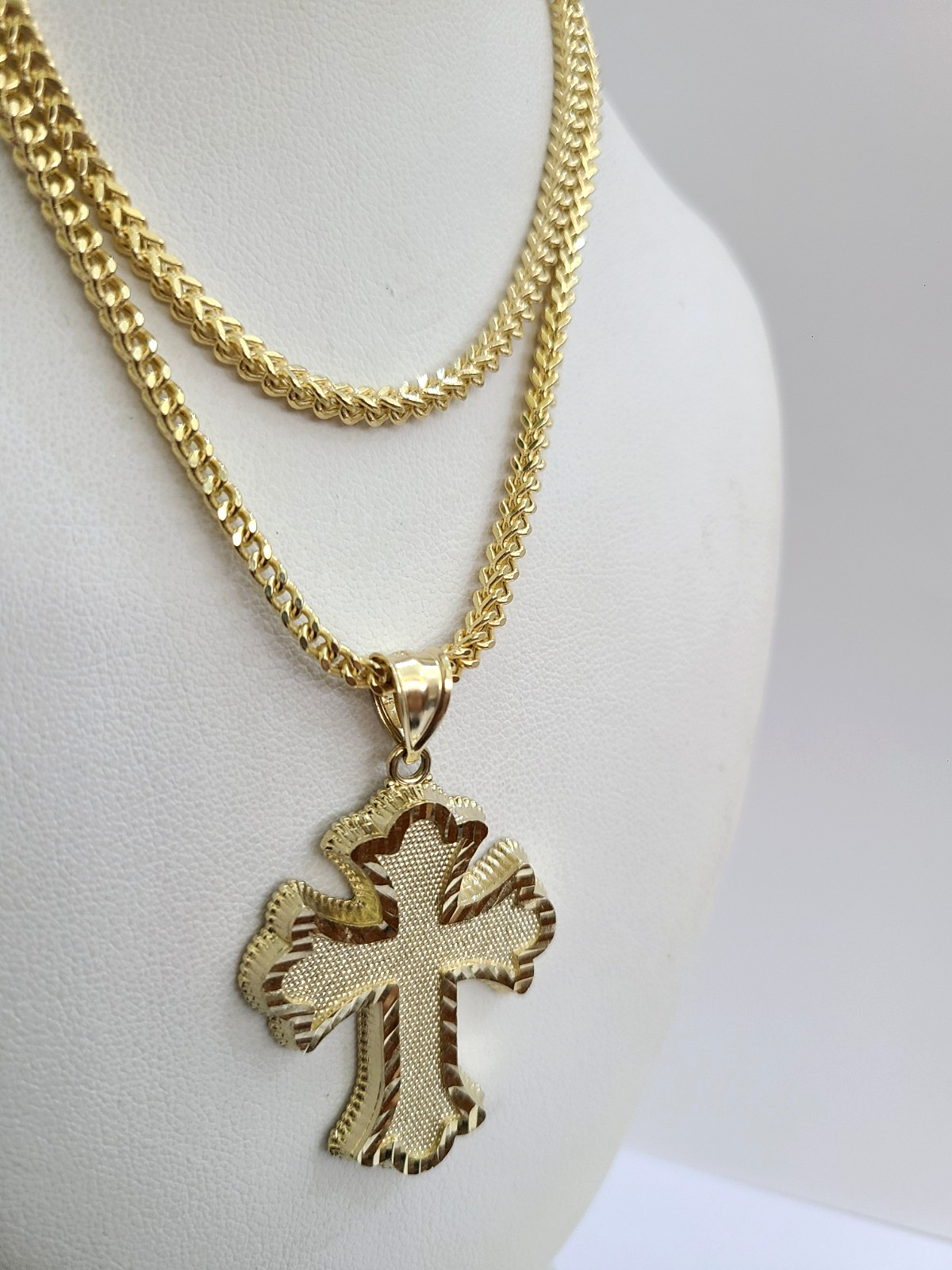 10kt Franco Chain Necklace Jesus Cross Charm Pendant 3mm 18-28 Inch Ye – Goldenlinq index