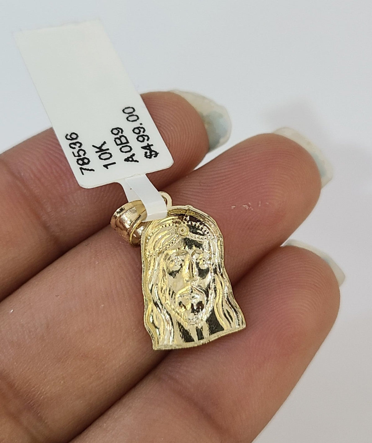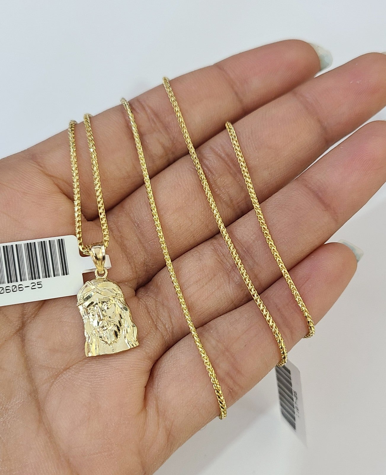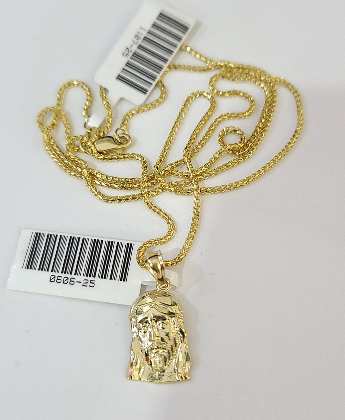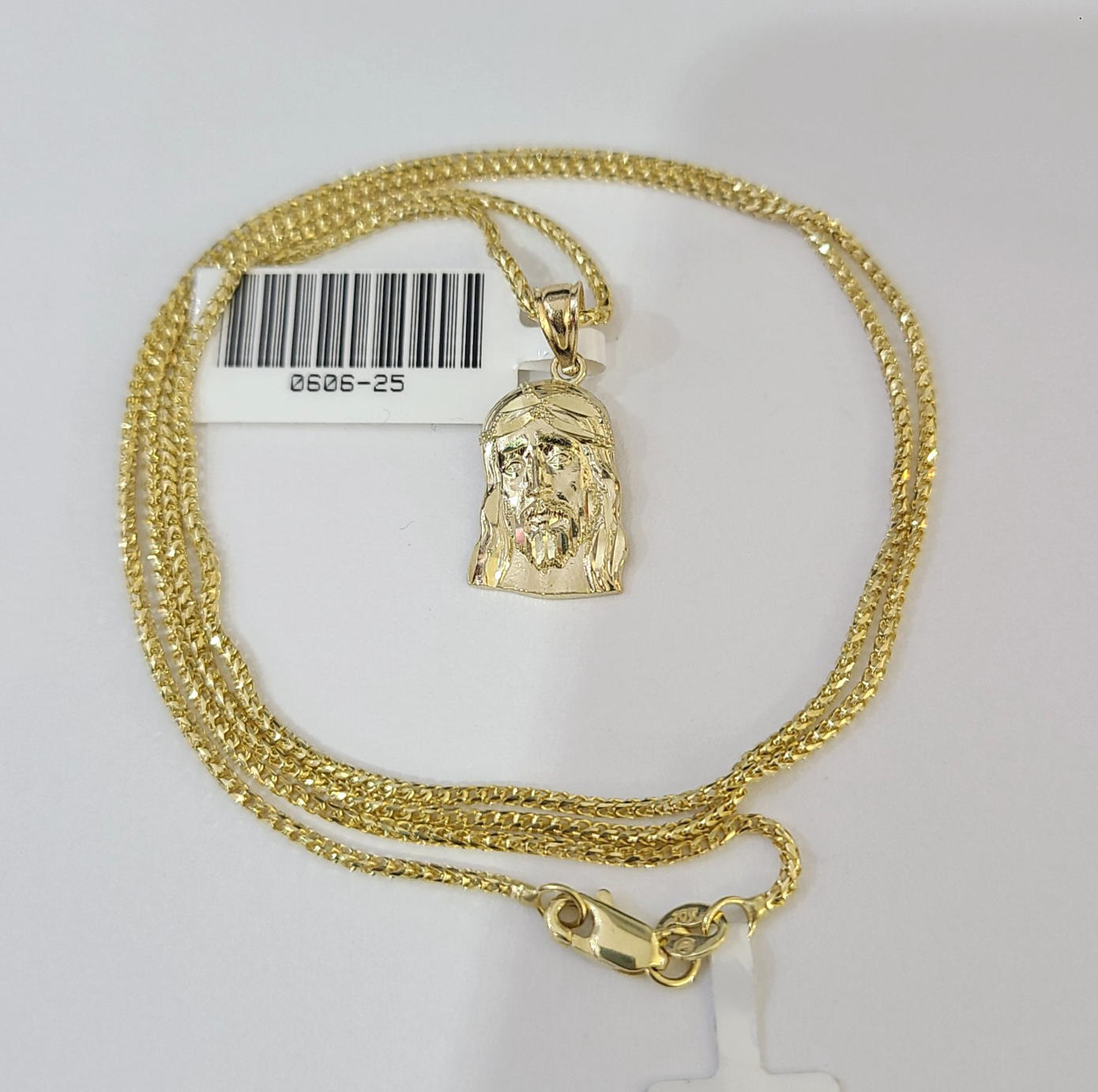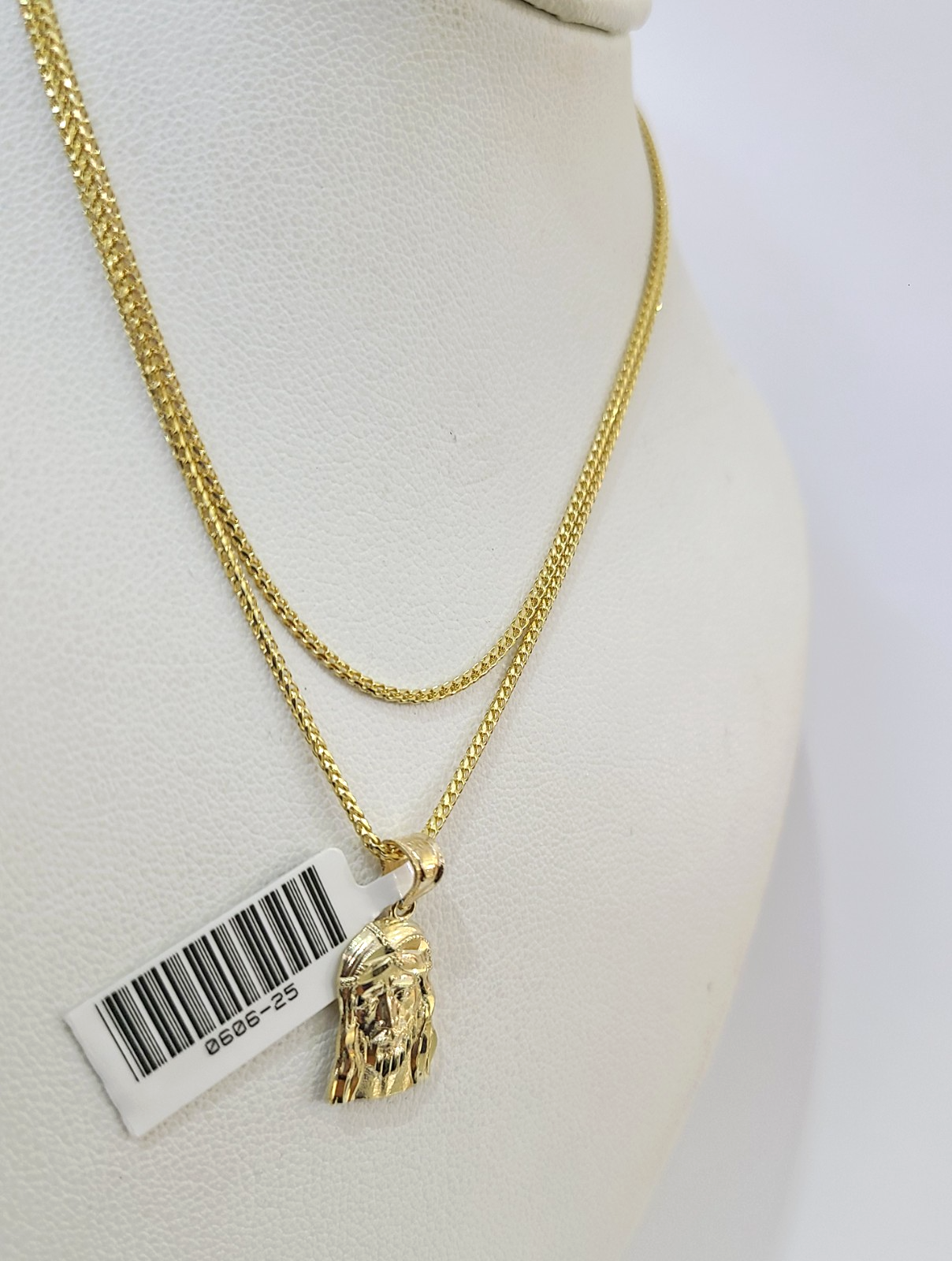 10kt Yellow Gold Franco Chain Necklace Jesus Head Charm Pendant 1mm 16-22 inches