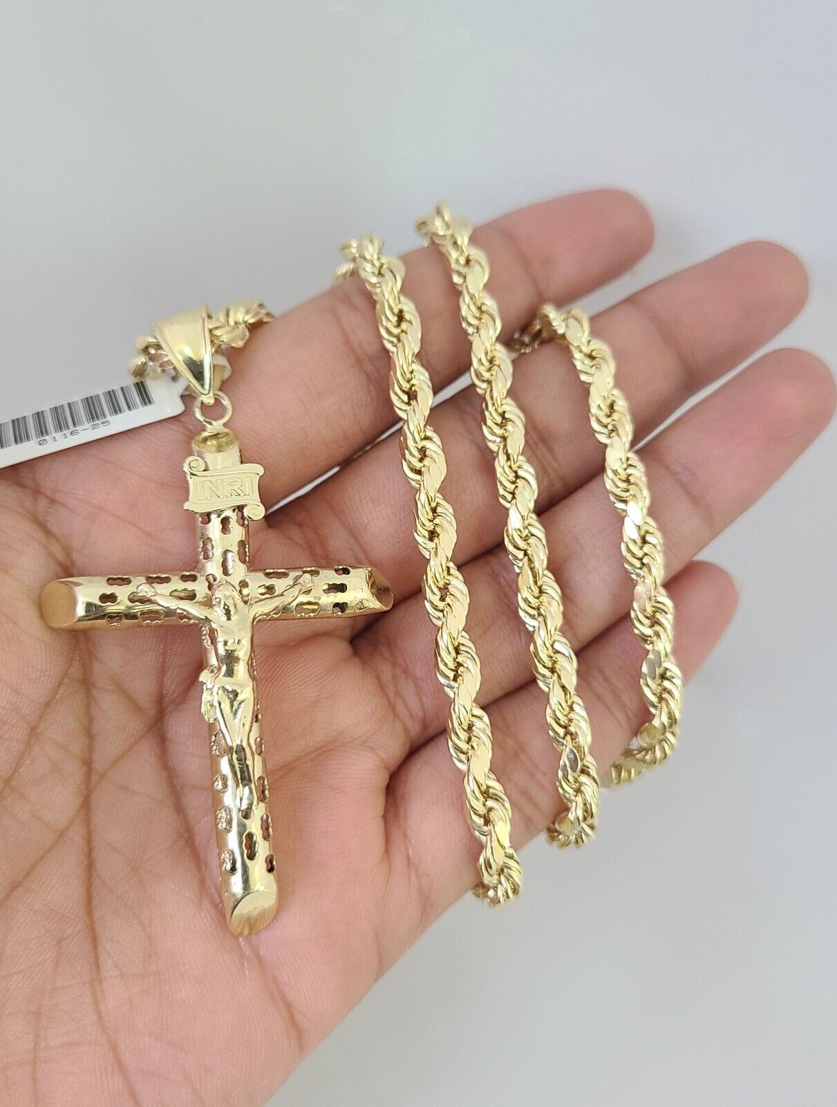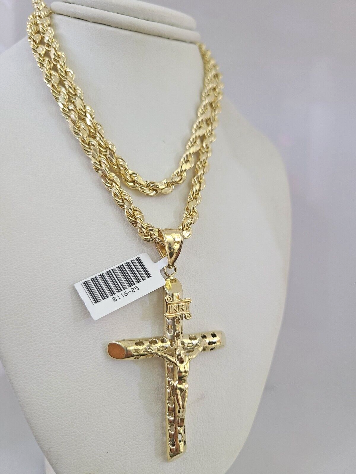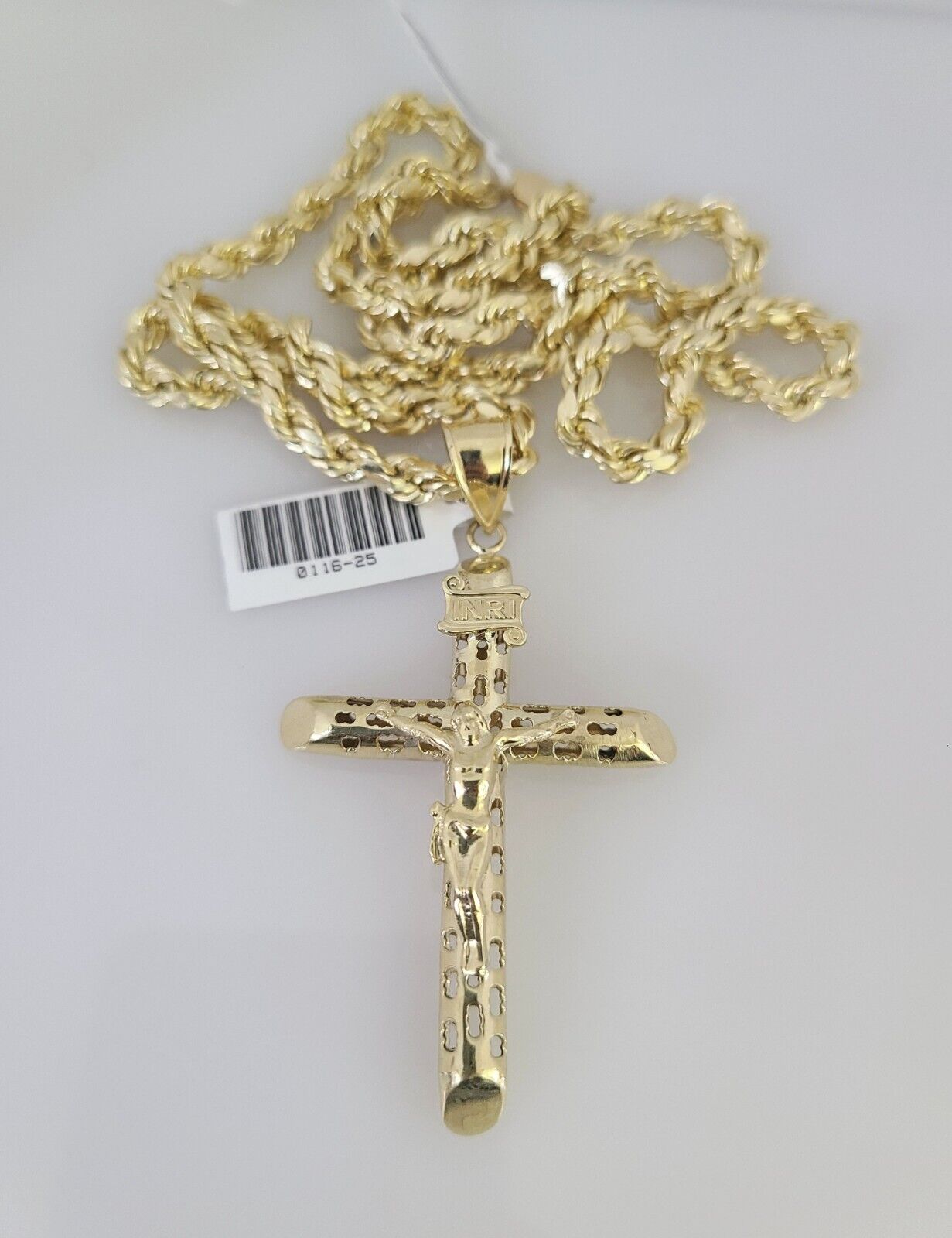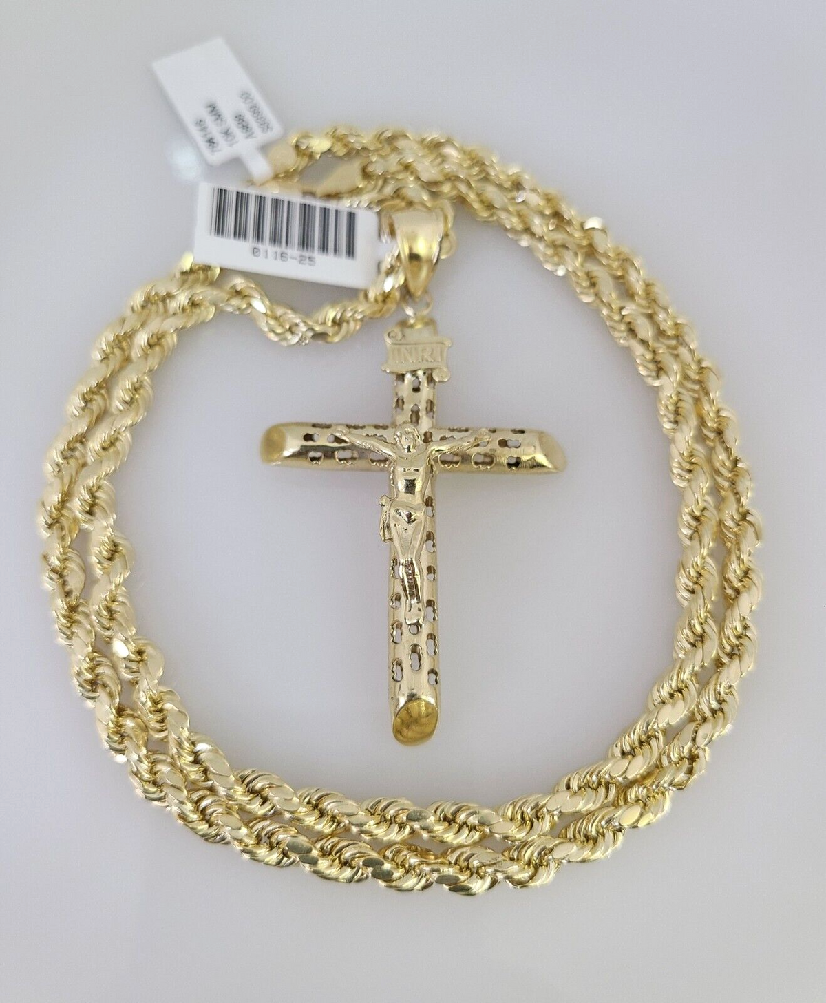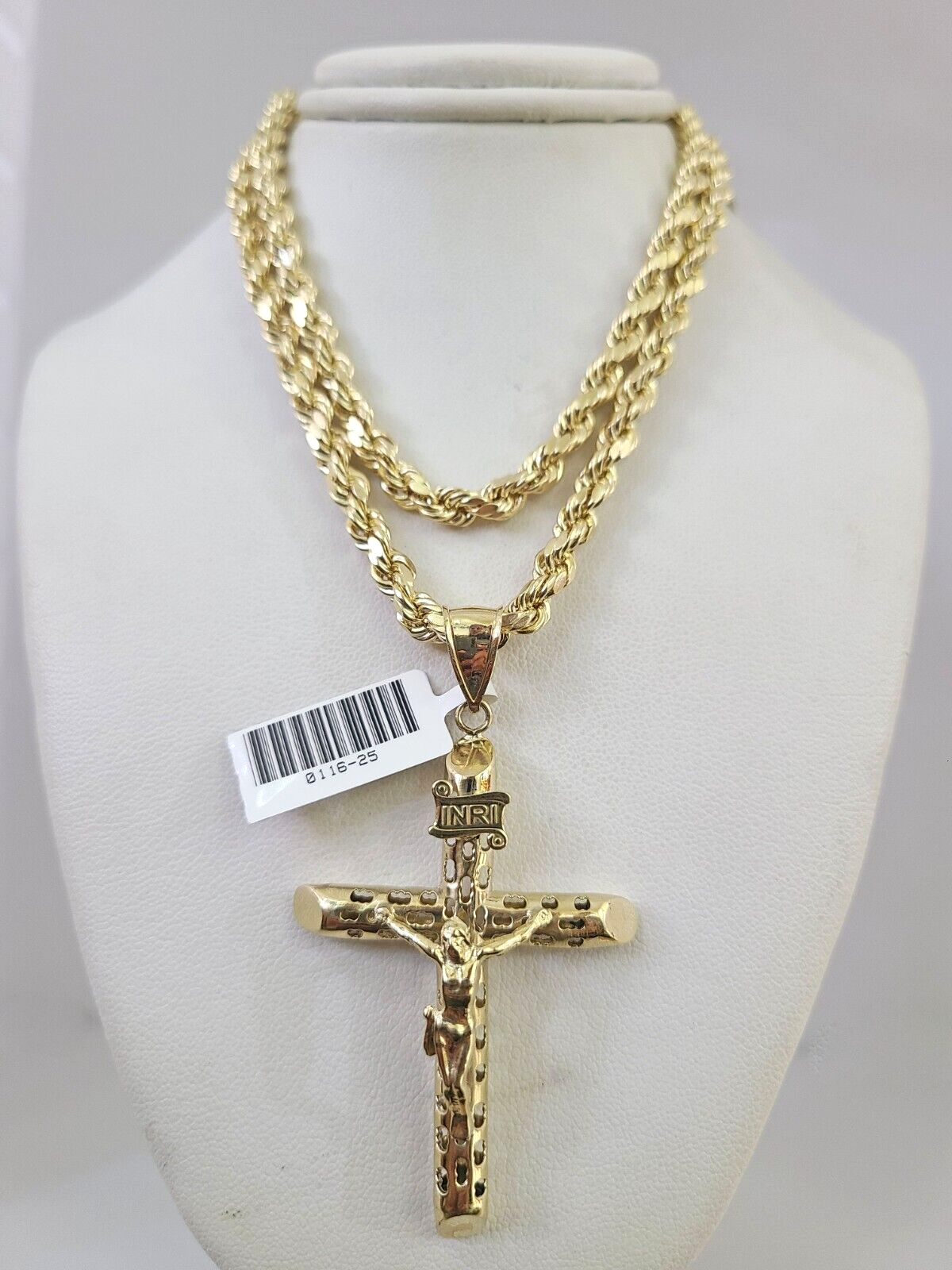 10kt Gold Rope Chain INRI Jesus Cross Charm Set 18"-30'' Inch 5mm Neck – Goldenlinq index