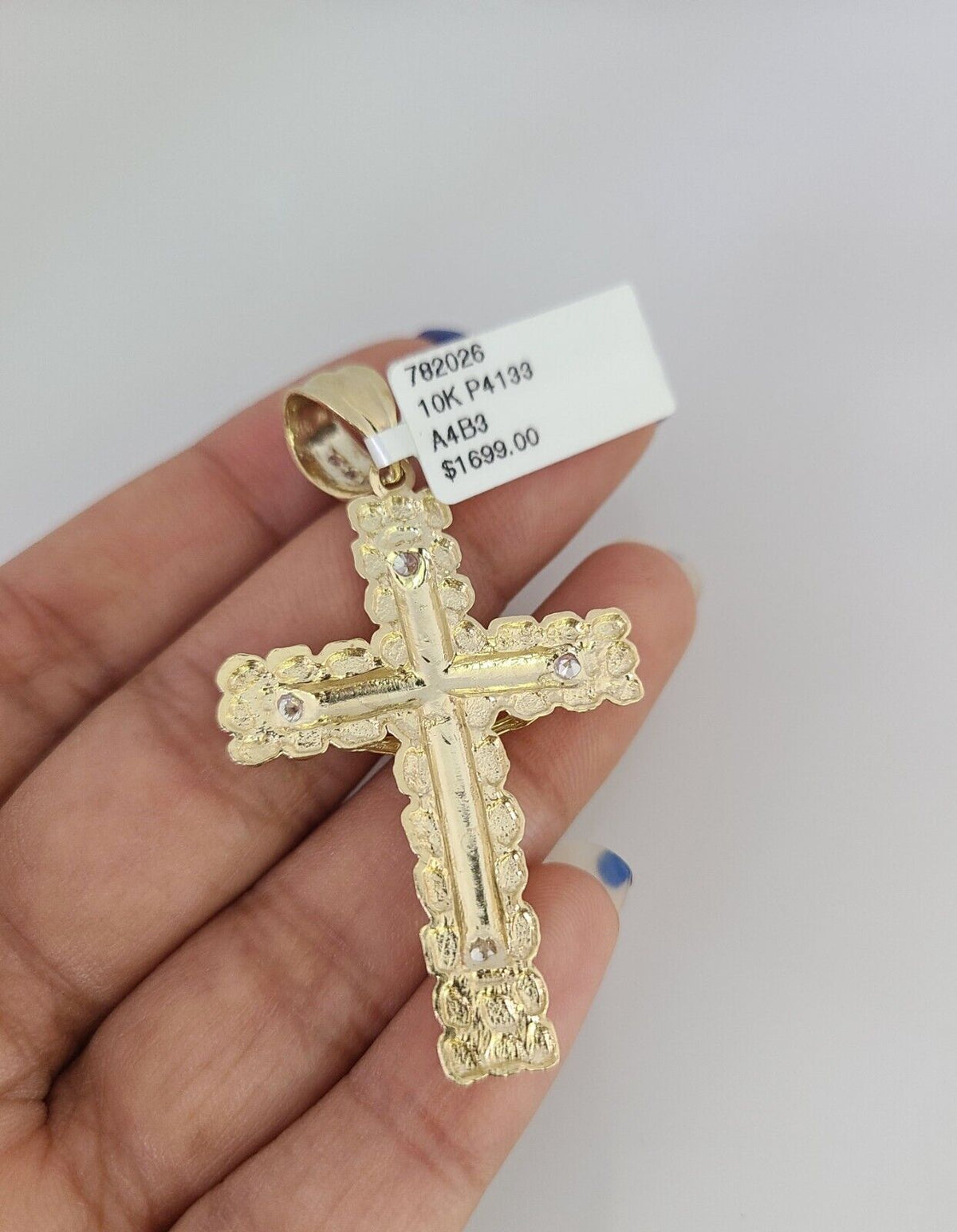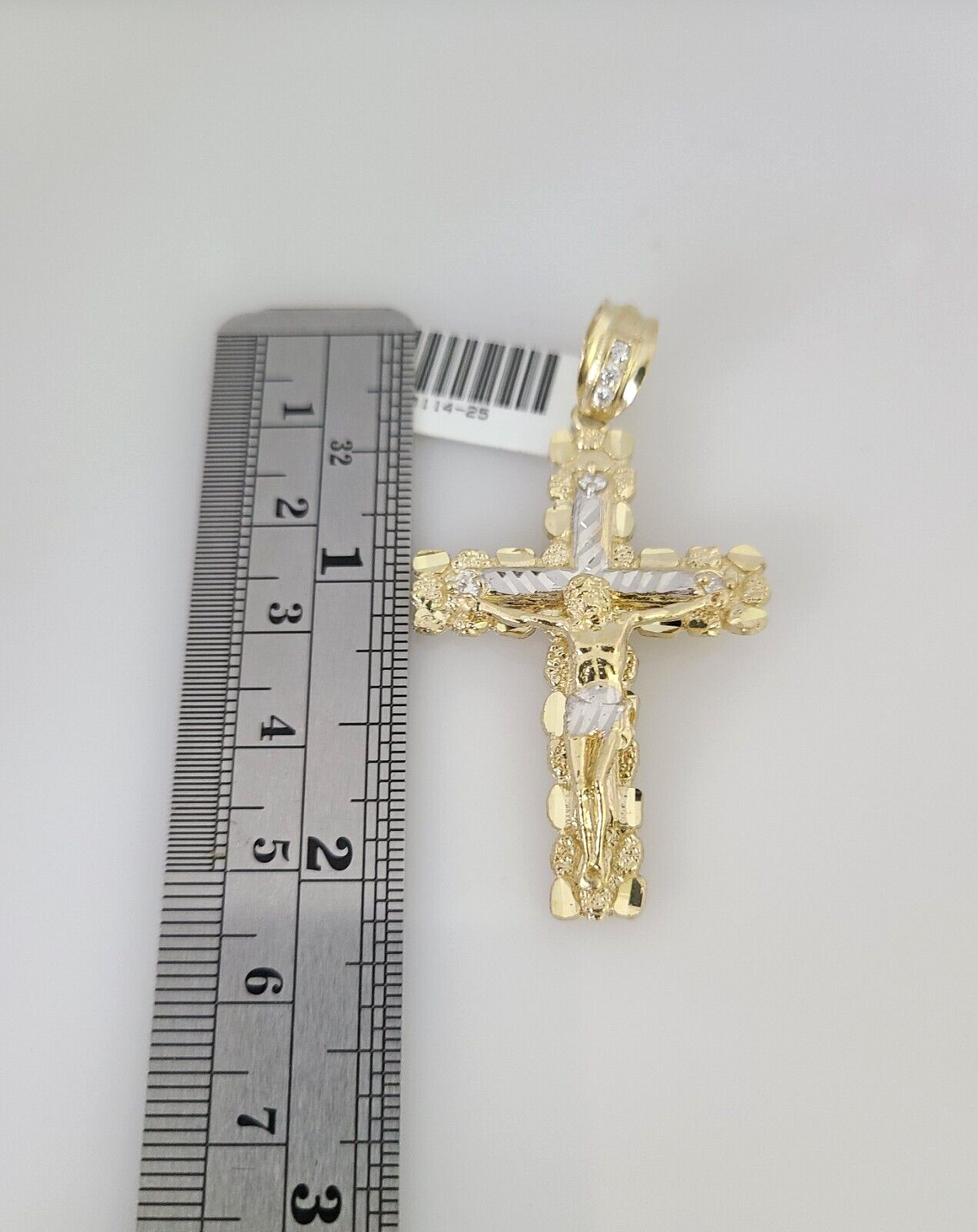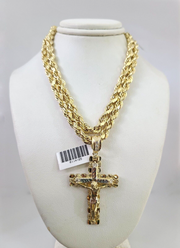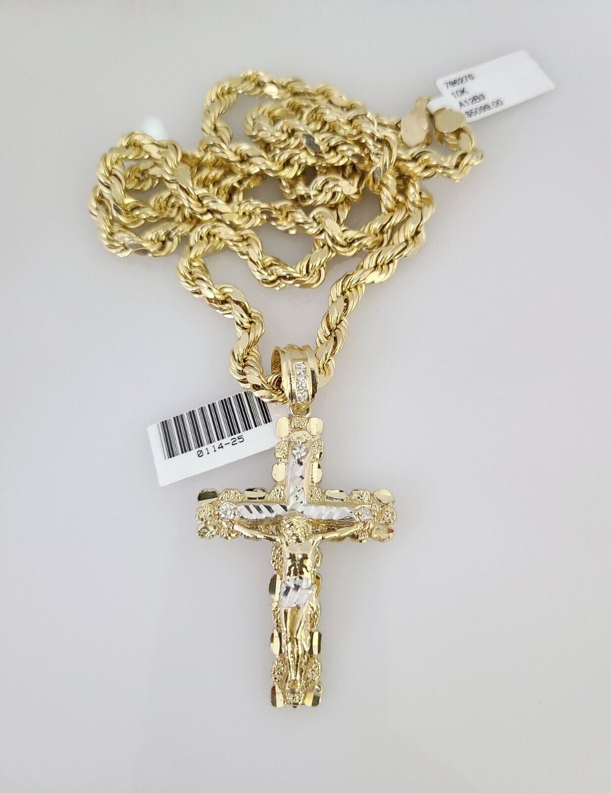 10kt Gold Rope Chain Nugget Cross Charm Set 18"-30'' Inch 6mm Necklace Pendant - 22 inch with charm