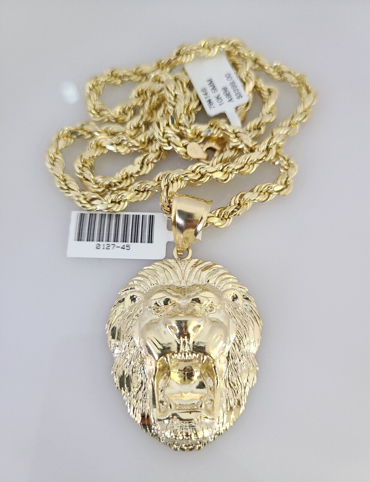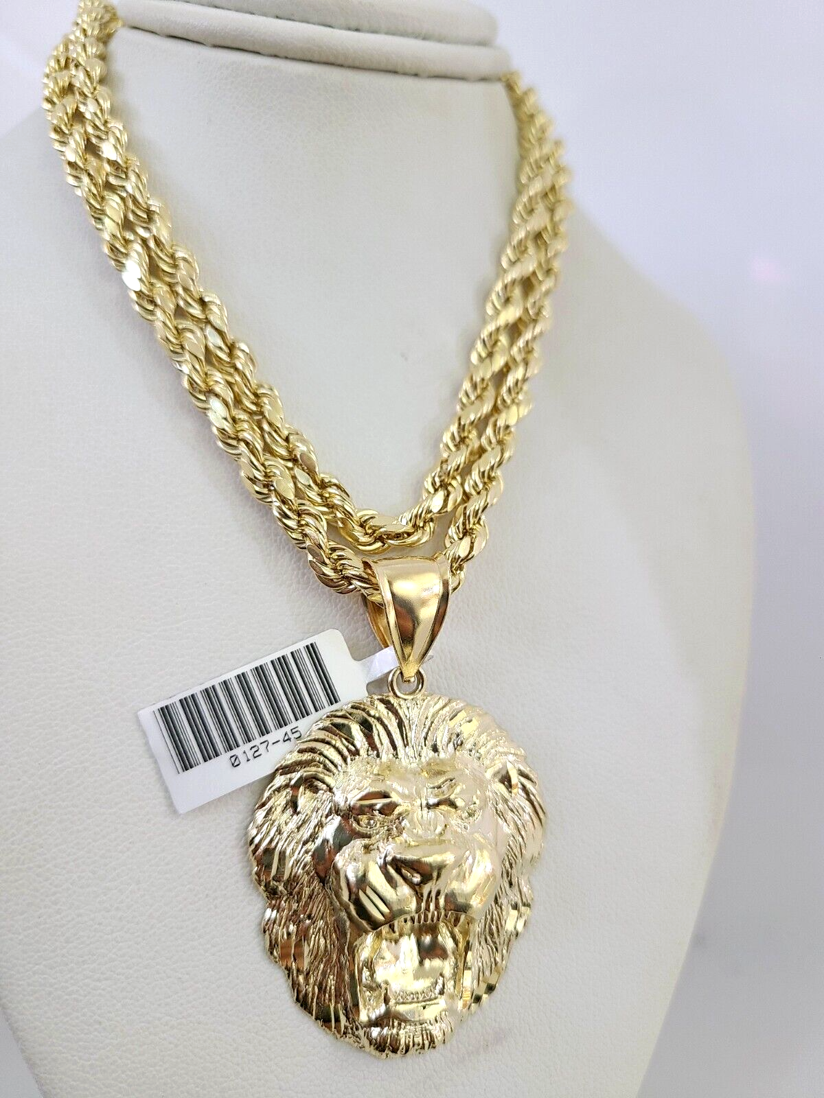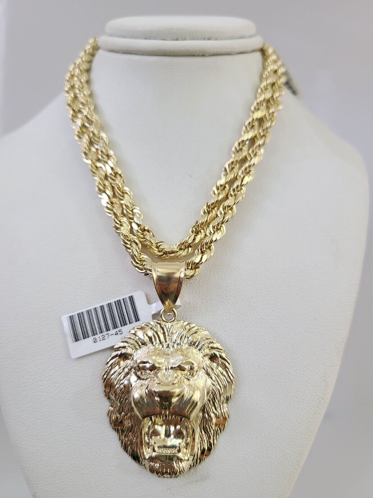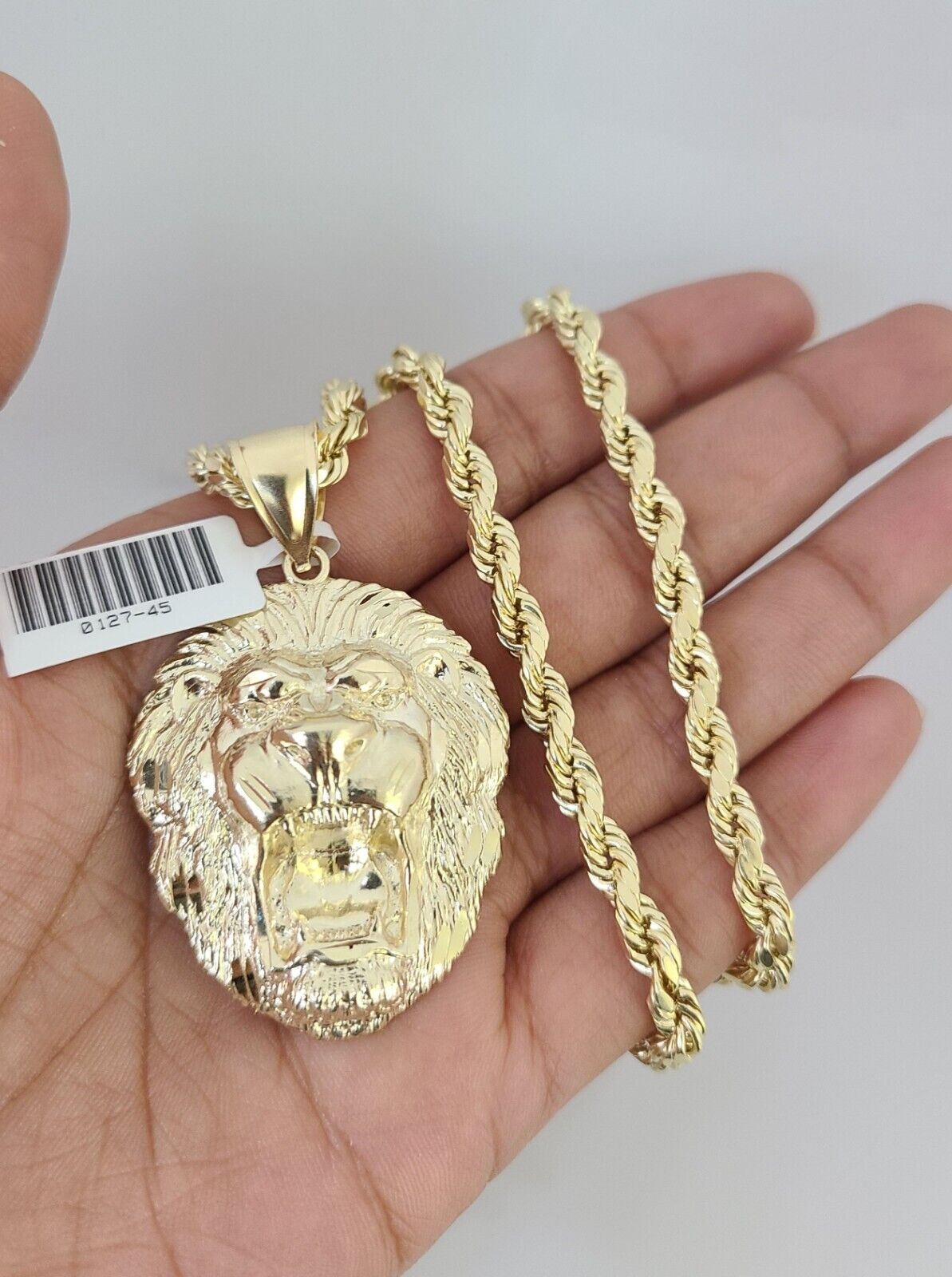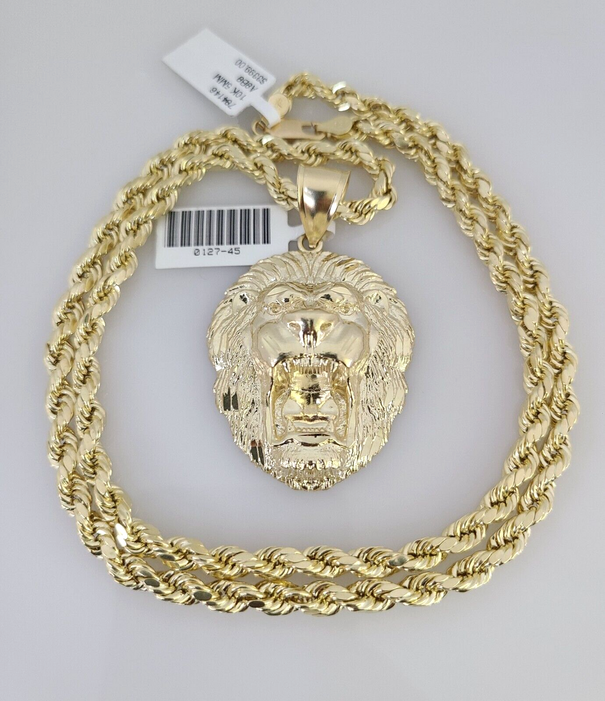 10kt Gold Rope Chain Roaring Lion Pendant Charm Set 18"-30'' Inch 5mm Necklace - 22 inch with charm