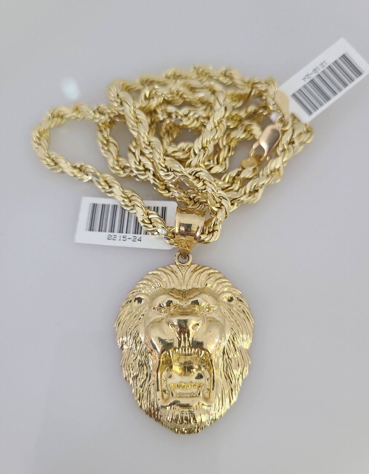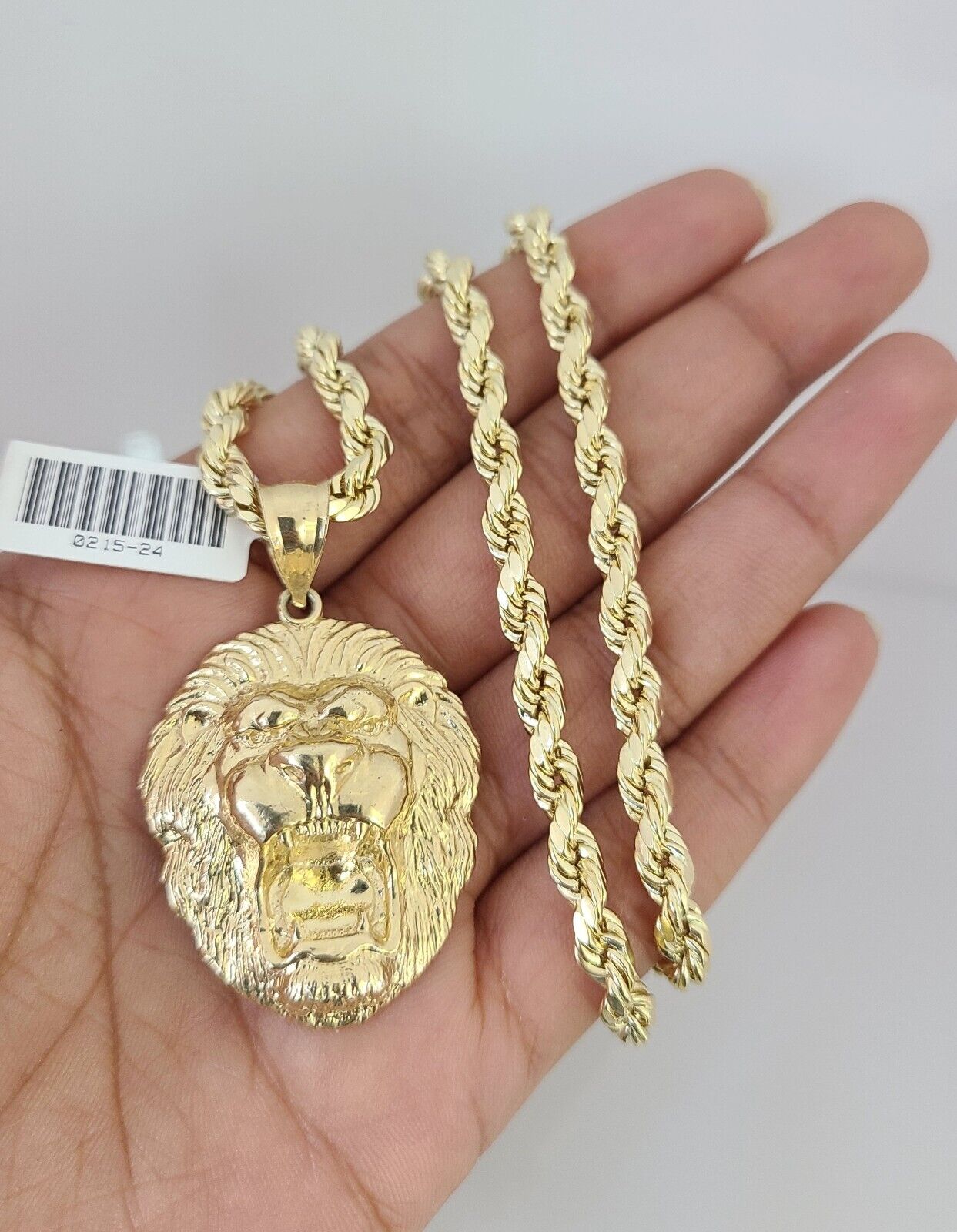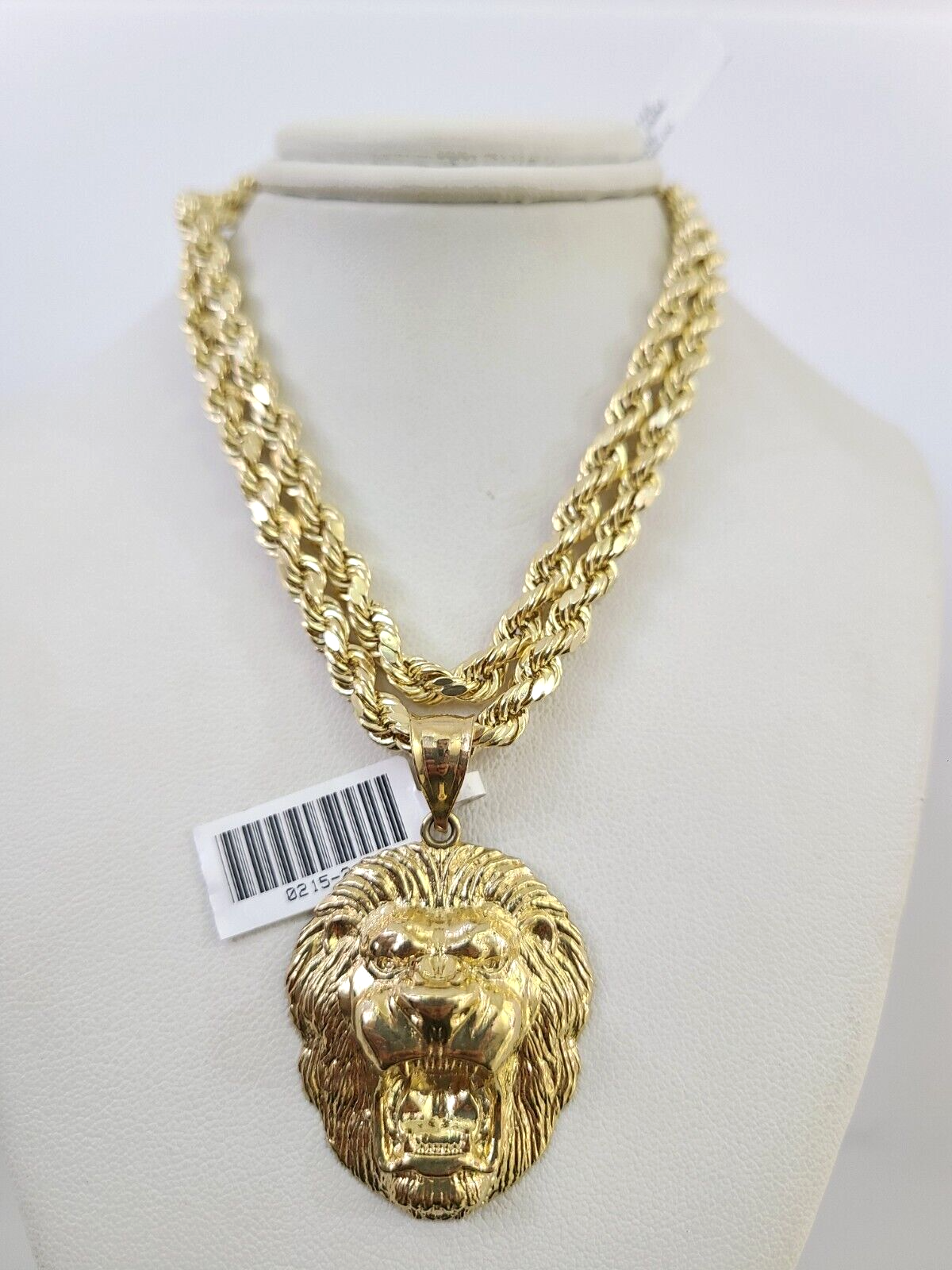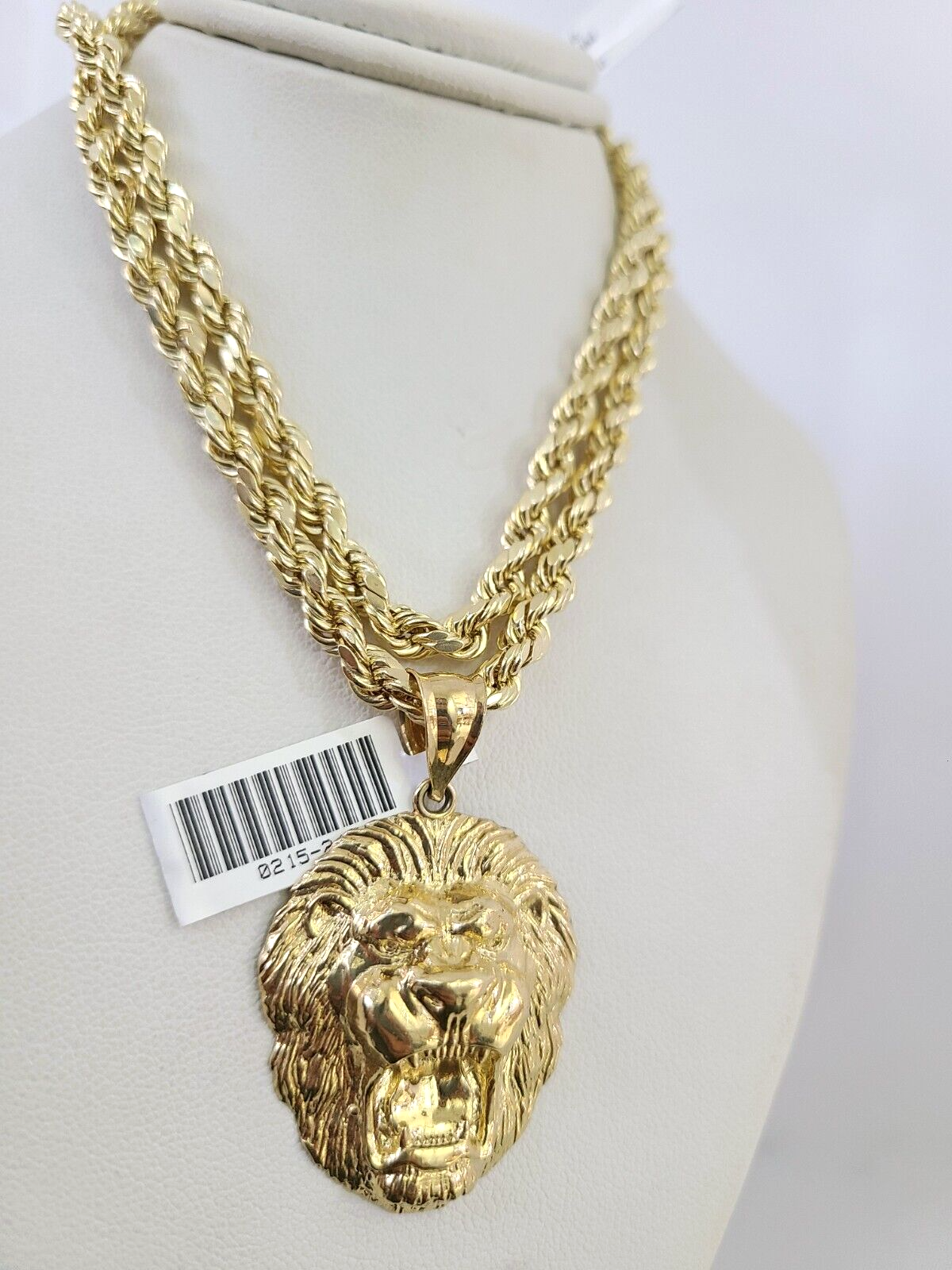 10kt Gold Rope Chain Roaring Lion Pendant Charm Set 18"-30'' Inch 5mm – Goldenlinq index