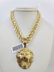 10kt Gold Rope Chain Roaring Lion Pendant Charm Set 18"-30'' Inch 5mm Necklace