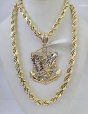 Real 10k Rope Chain Eagle Anchor Charm Set 7mm 20"-28" Inch Necklace Yellow Gold - With 20 Inch Chain