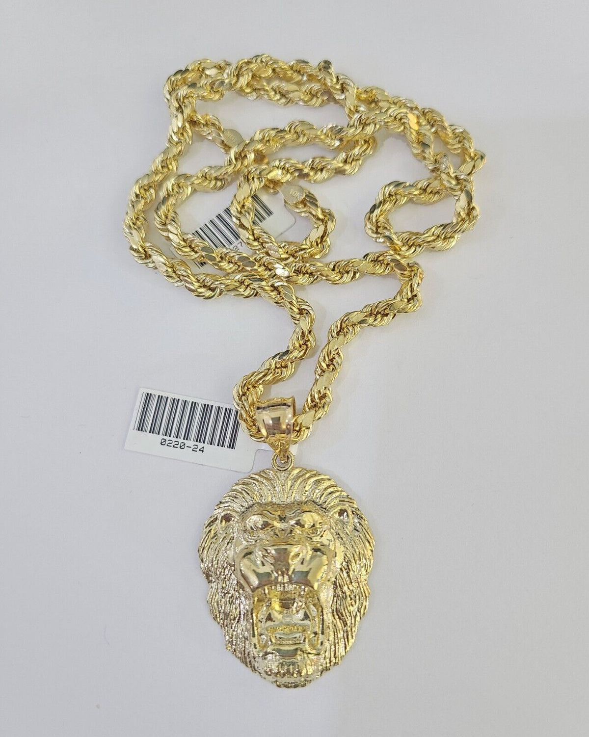 Real 10k Rope Chain Lion Charm Set 5mm 20"-30" Inch Necklace Yellow Gold - 20" Chain with Charm