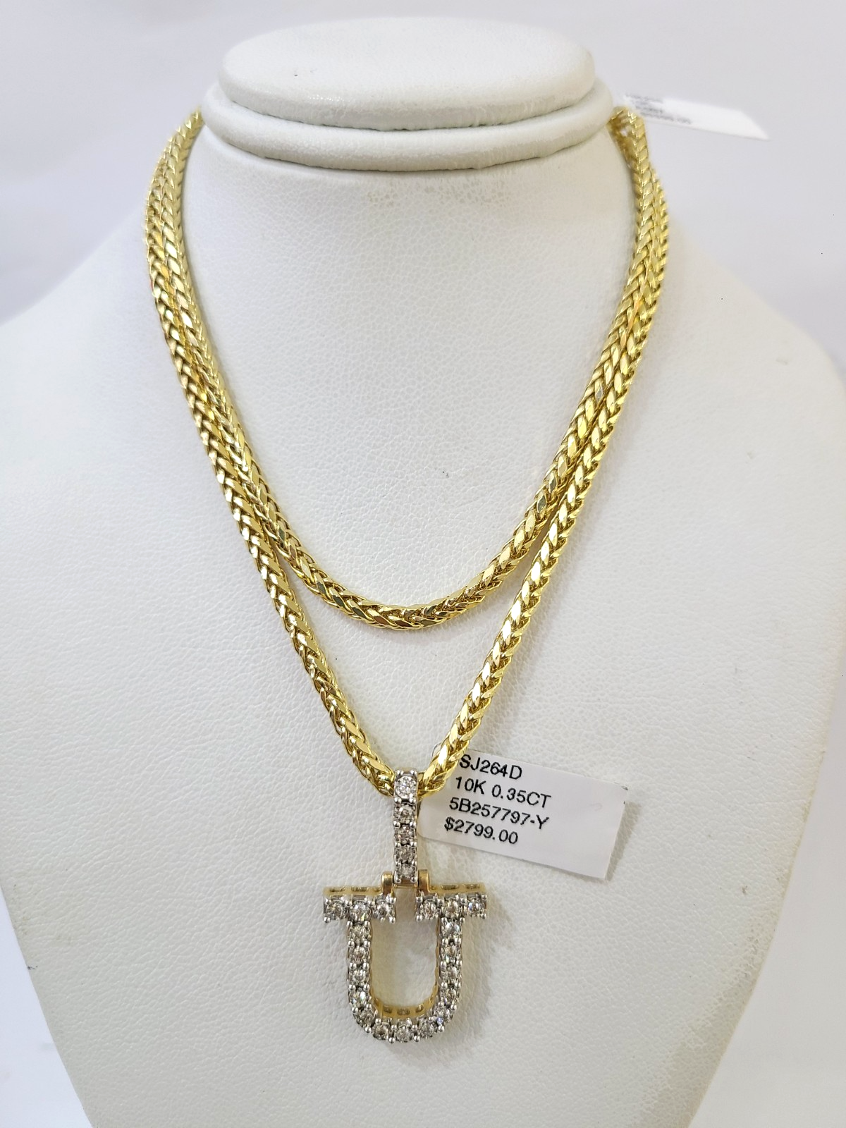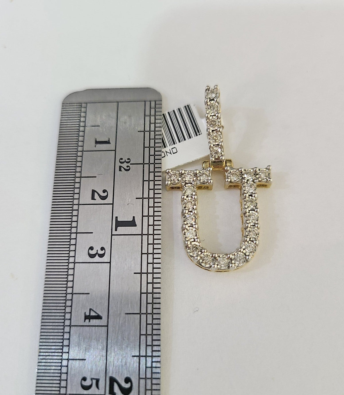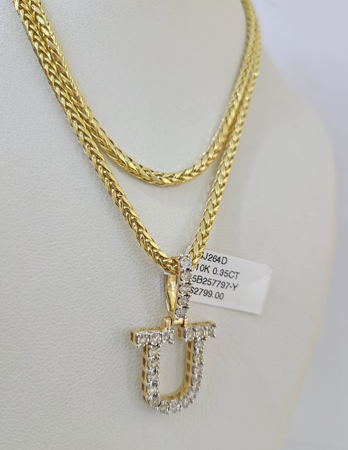 REAL 10k Yellow Gold Palm Chain U Diamond Initial Pendant Charm 3mm SET Necklace - 20 Inch with Chain