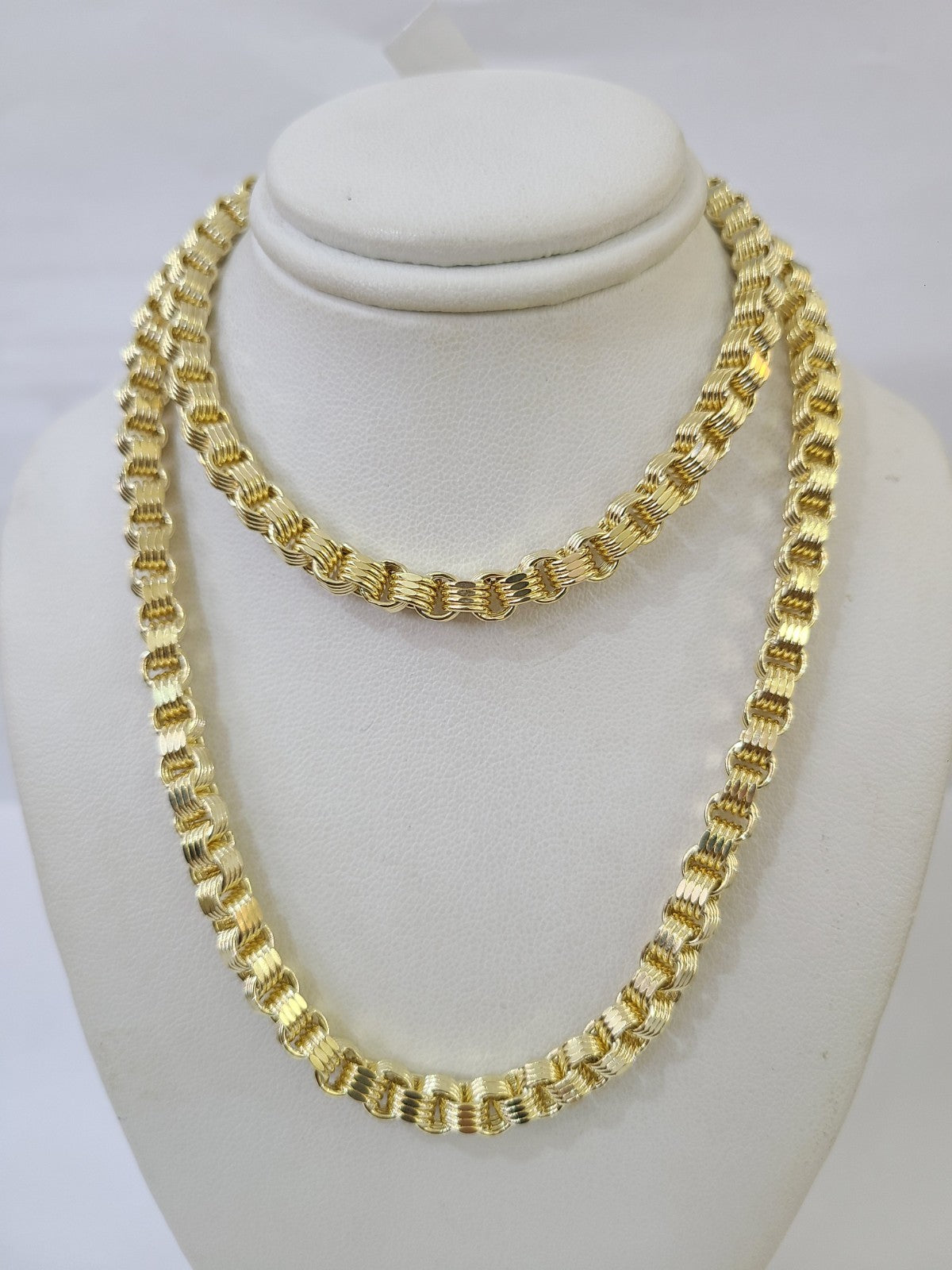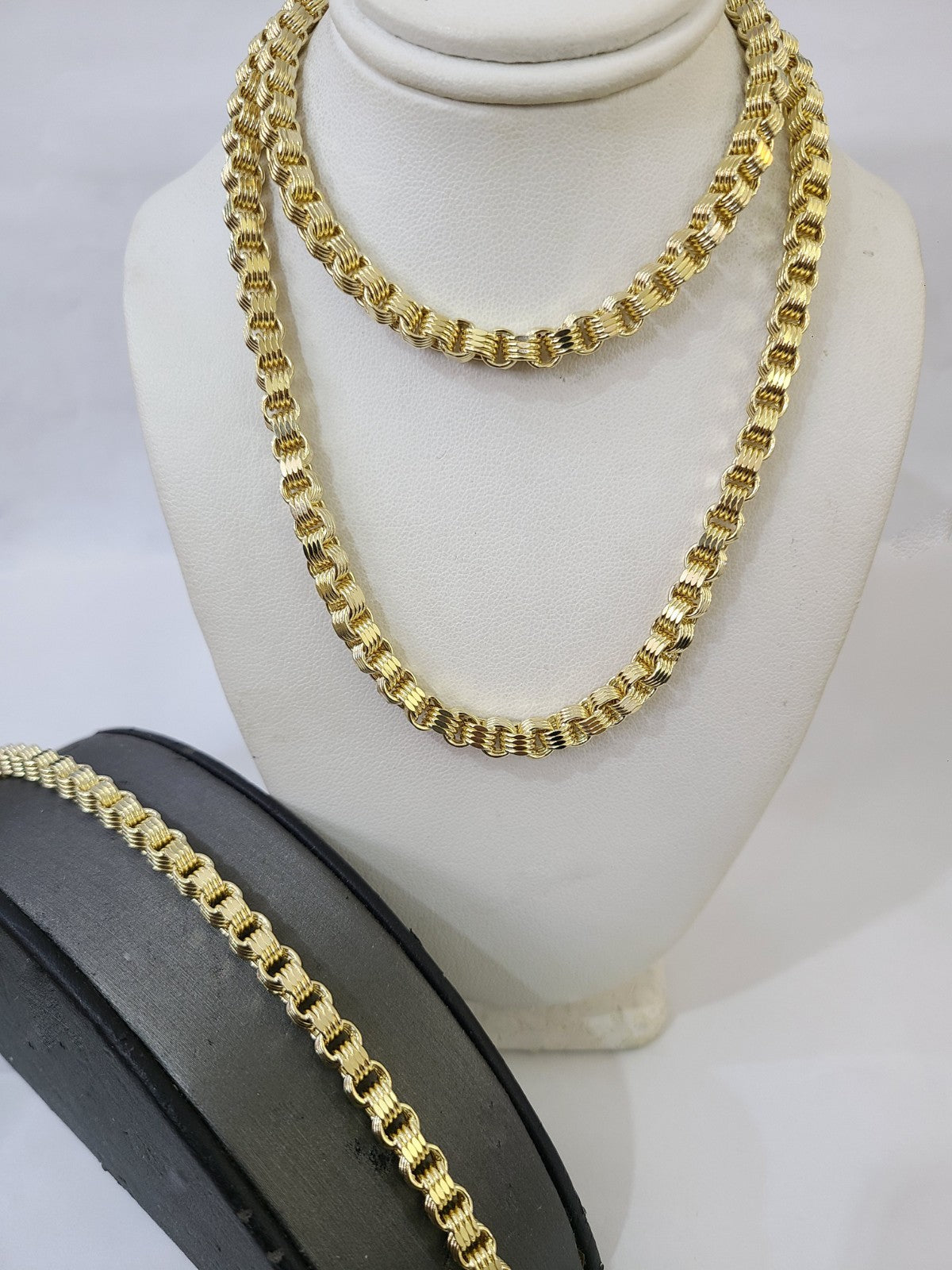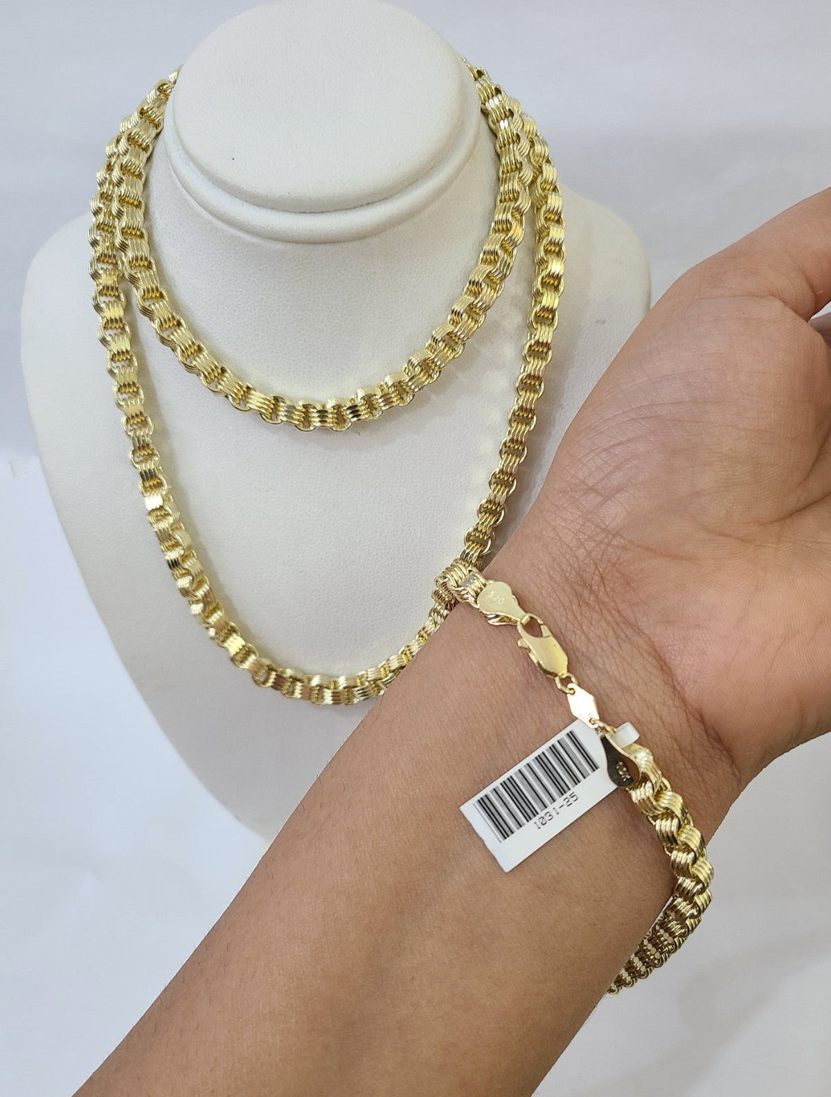 10k Yellow Gold Byzantine Chain 5mm Necklace Bracelet Set Real Men Women Real - 7 inches / 20 inches