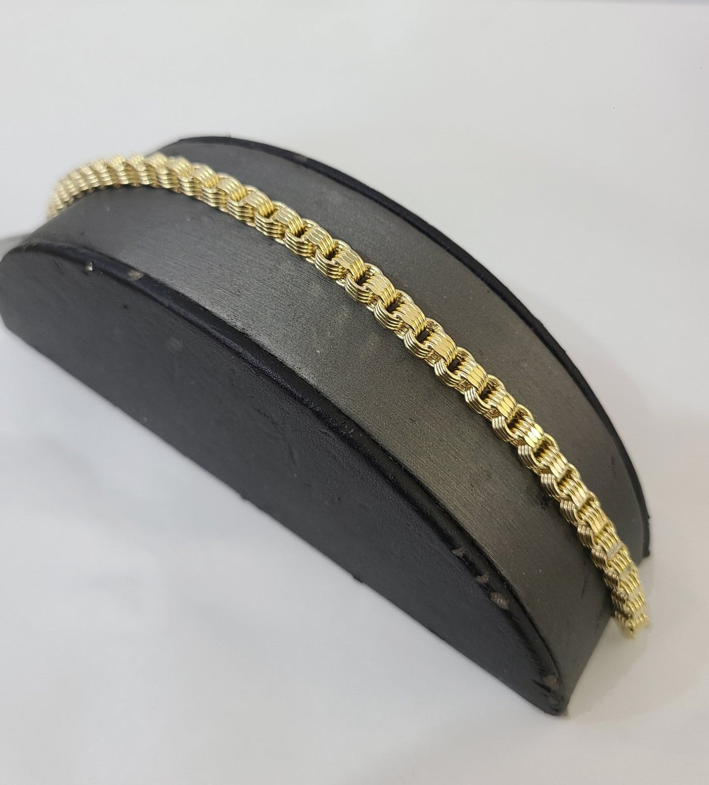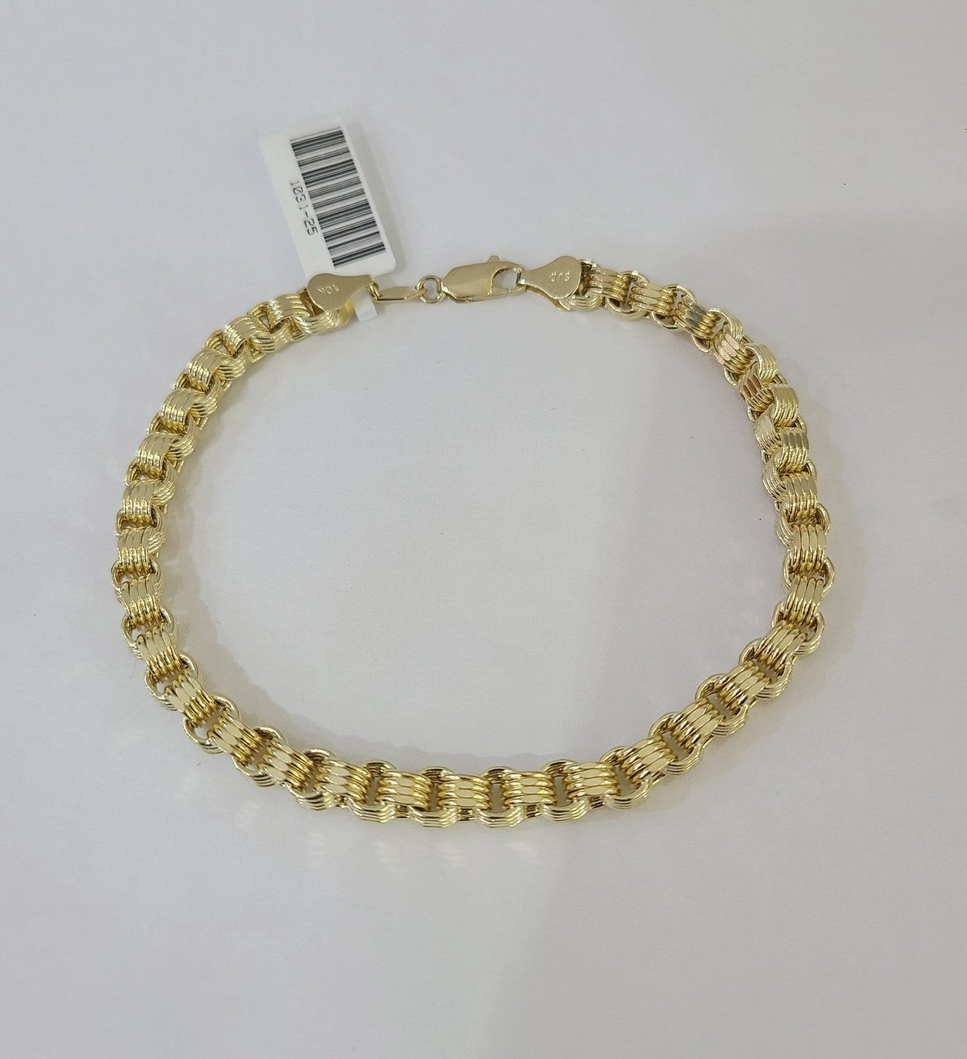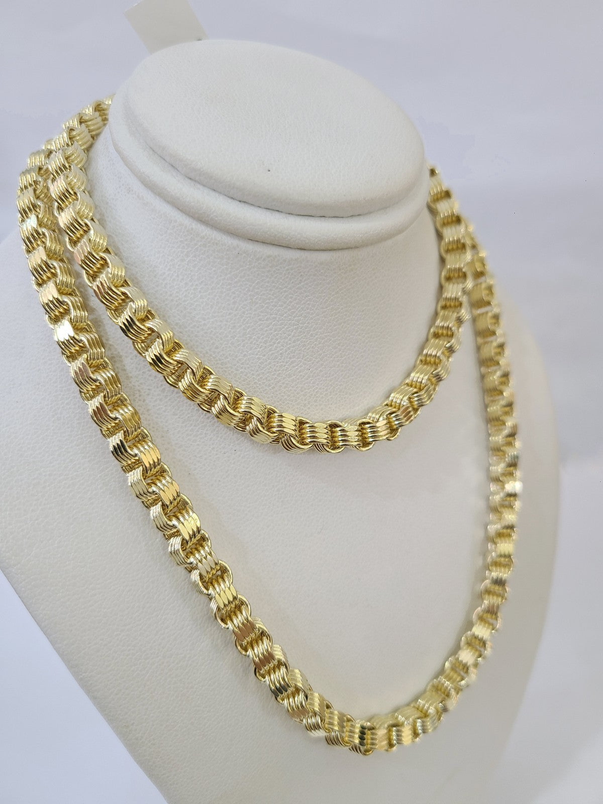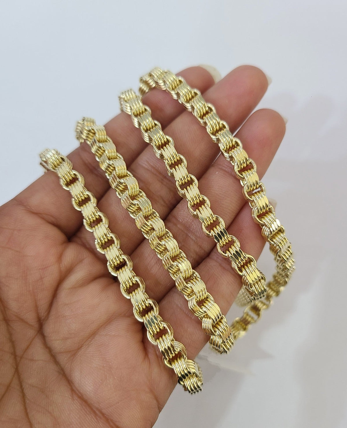 10k Yellow Gold Byzantine Chain 5mm Necklace Bracelet Set Real Men Women Real - 7 inches / 20 inches