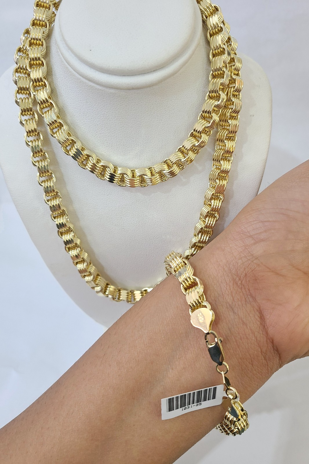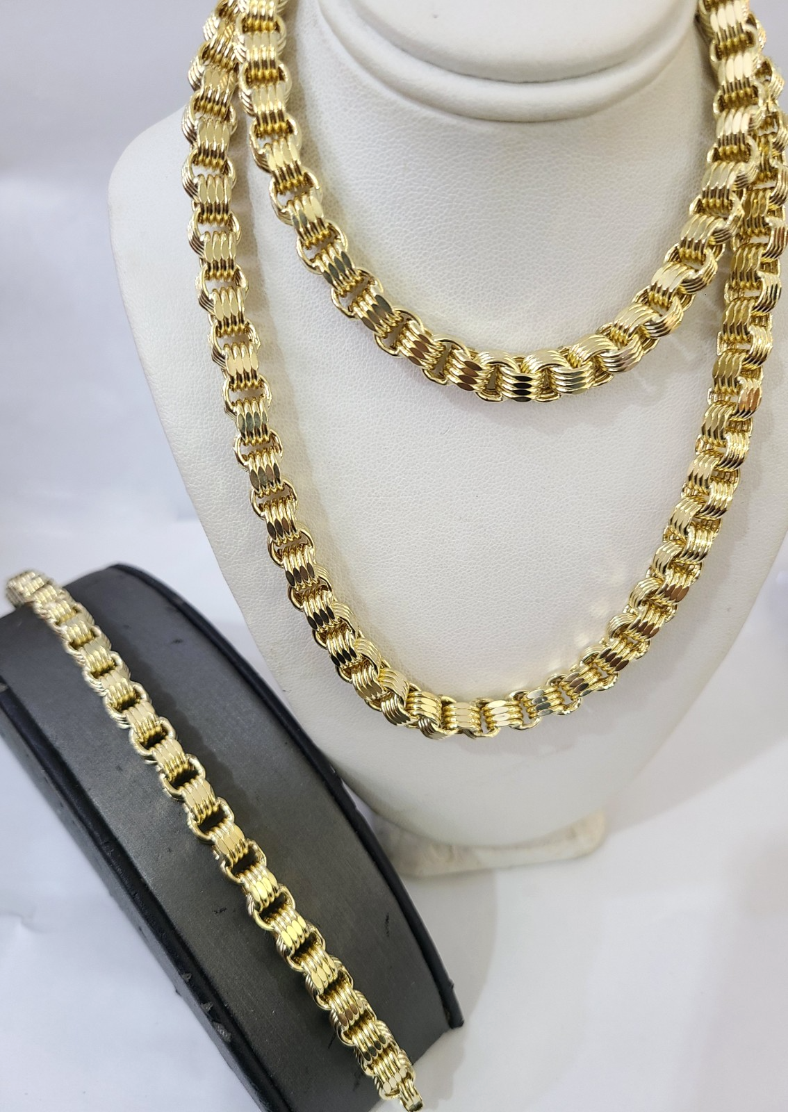 10k Yellow Gold Byzantine Chain 6mm Necklace Bracelet Set Real Men Women Real - 7 inches / 20 inches