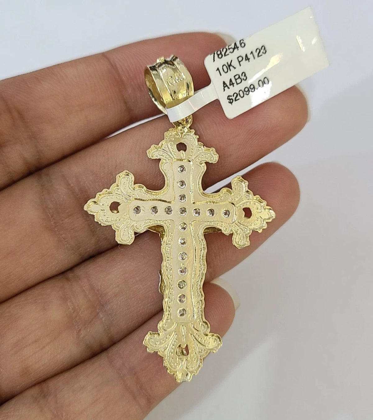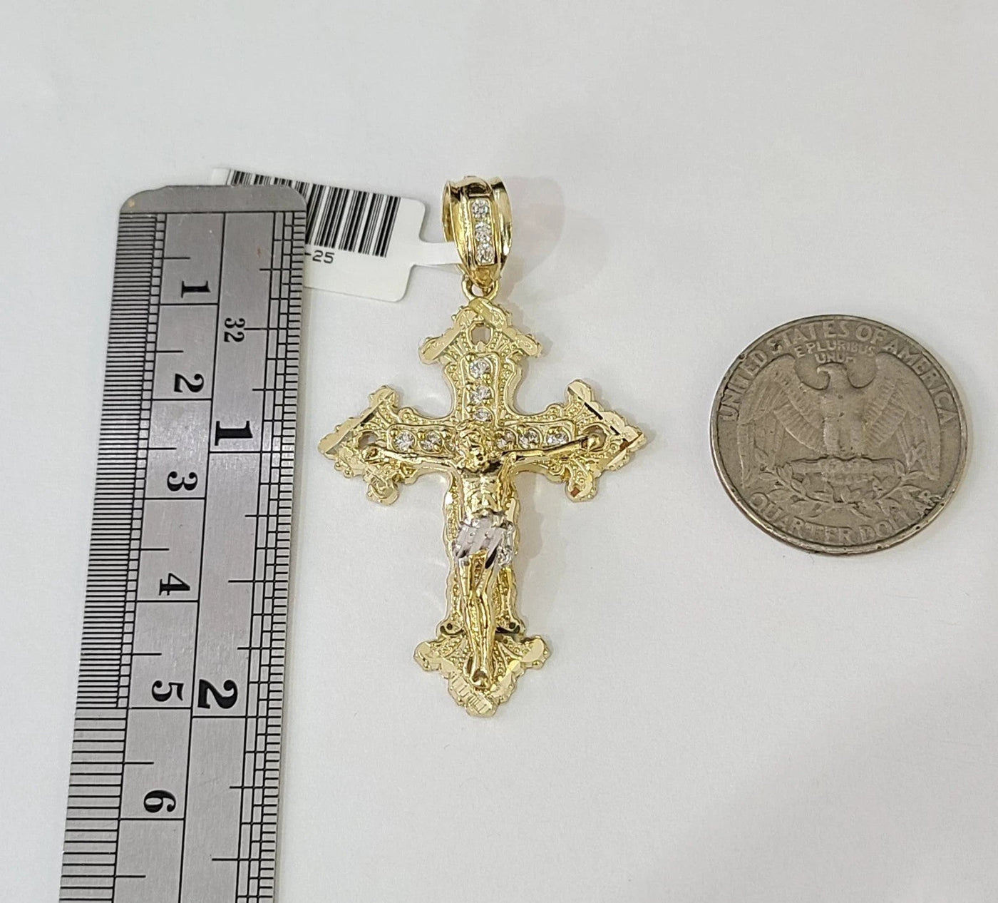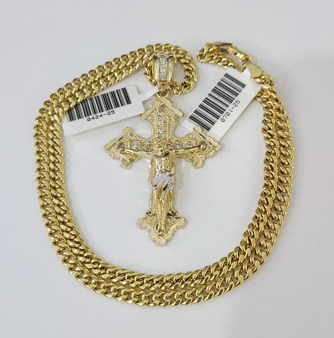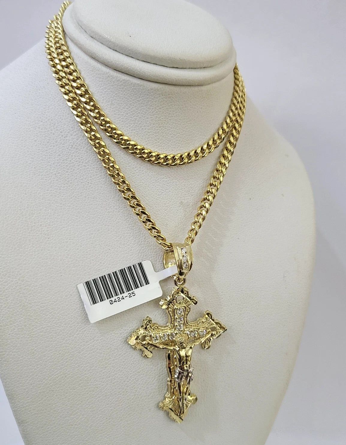 10k Gold Chain Miami Cuban Jesus Cross Charm Pendant Set 4mm 18"-28" N – Goldenlinq index