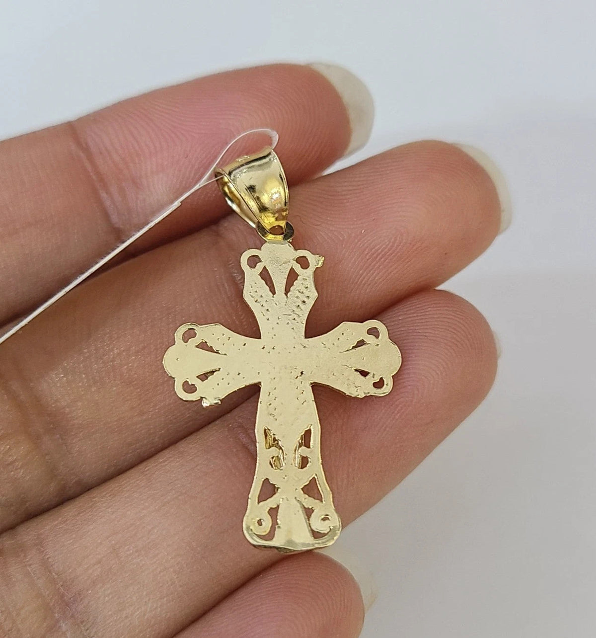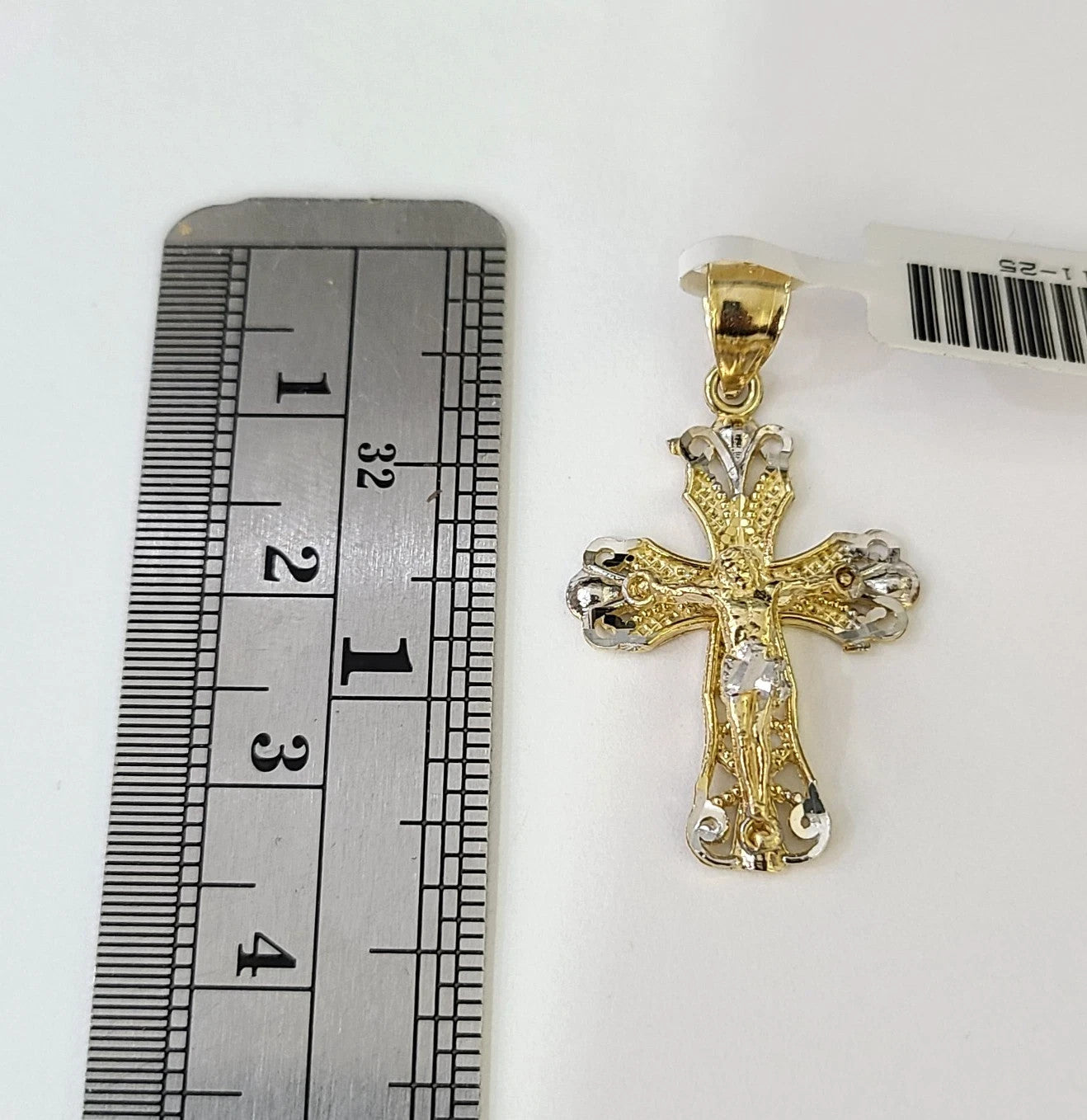 10k Gold Chain Miami Cuban Jesus Cross Charm Pendant Set 4mm 18"-28" N – Goldenlinq index
