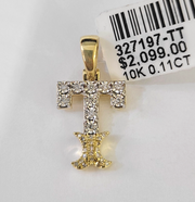 10k Gold Diamond T Charm Pendant Natural Letter Initial Alphabet
