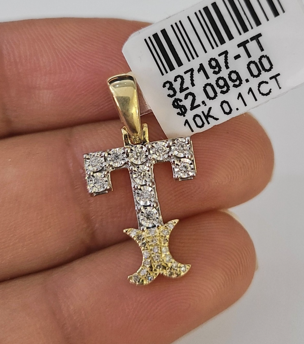 10k Gold Diamond T Charm Pendant Natural Letter Initial Alphabet – Goldenlinq index