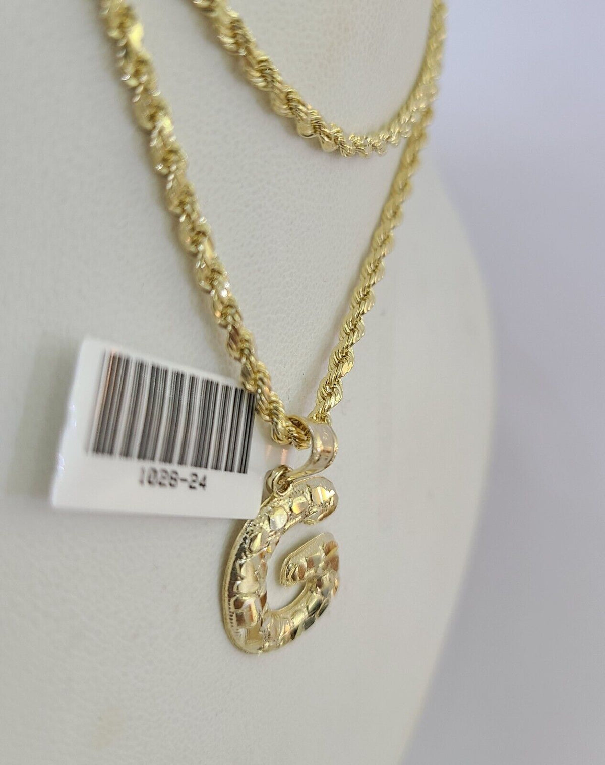 10k Gold Initial G Charm Rope Chain 16"-26" 2.5mm SET Necklace Alphabet Pendant