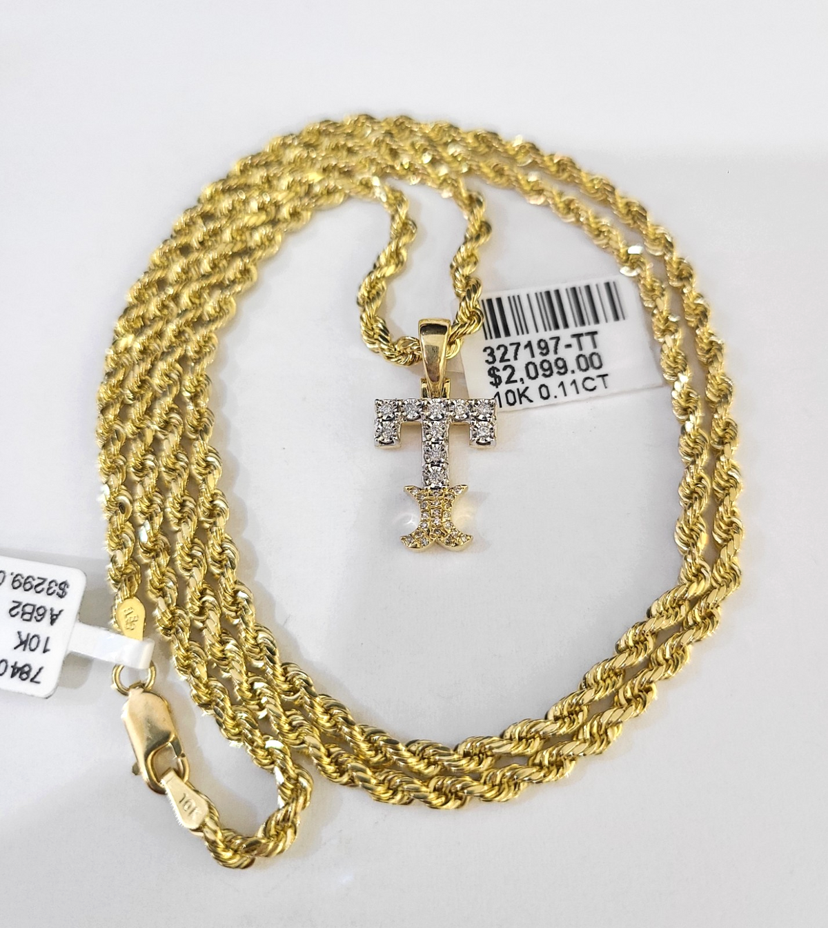 10k Gold Rope Chain T Diamond Alphabet Charm Necklace SET 3mm 18"-28" – Goldenlinq index