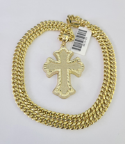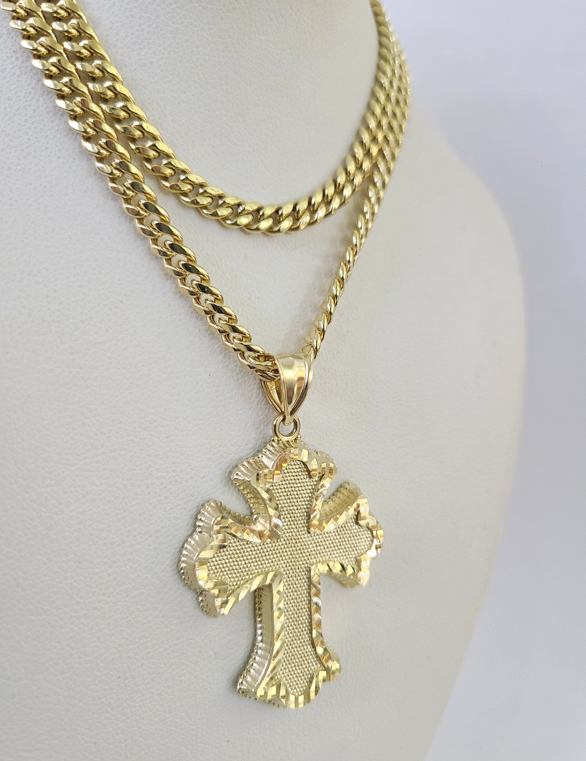 10k Jesus Cross Charm Miami Cuban Chain Pendant Set 5mm 18"28" Necklace Gold