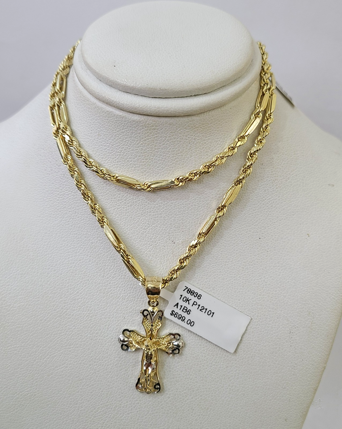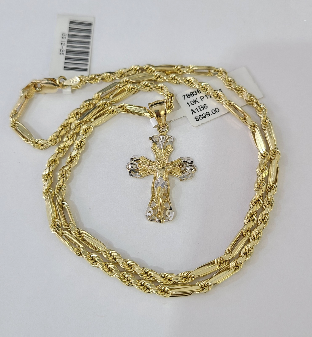 10k Milano Rope Chain Jesus Cross Charm Necklace SET 3mm 18"-26" Penda – Goldenlinq index