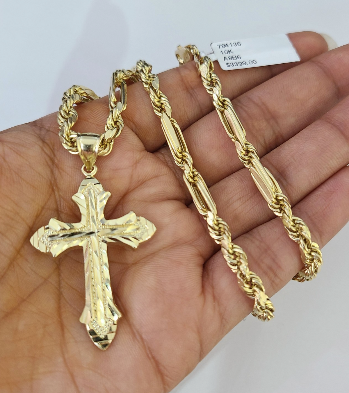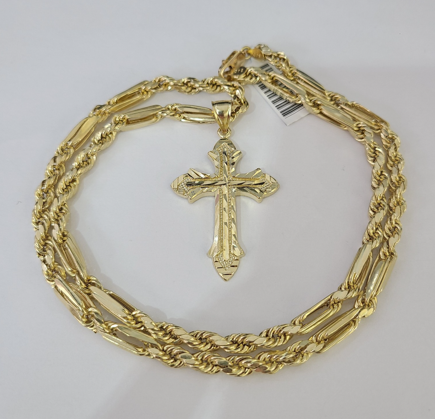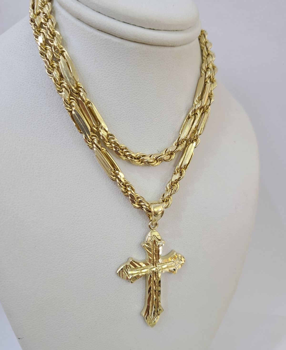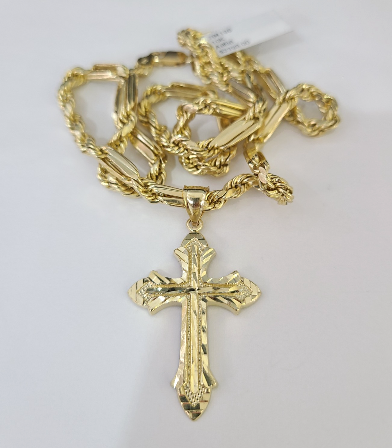 10k Milano Rope Chain Jesus Cross Charm Necklace SET 5mm 18"-28" Pendant - 22 inch with charm