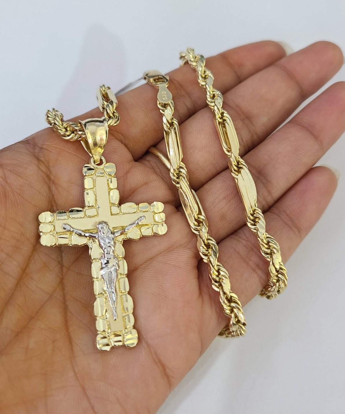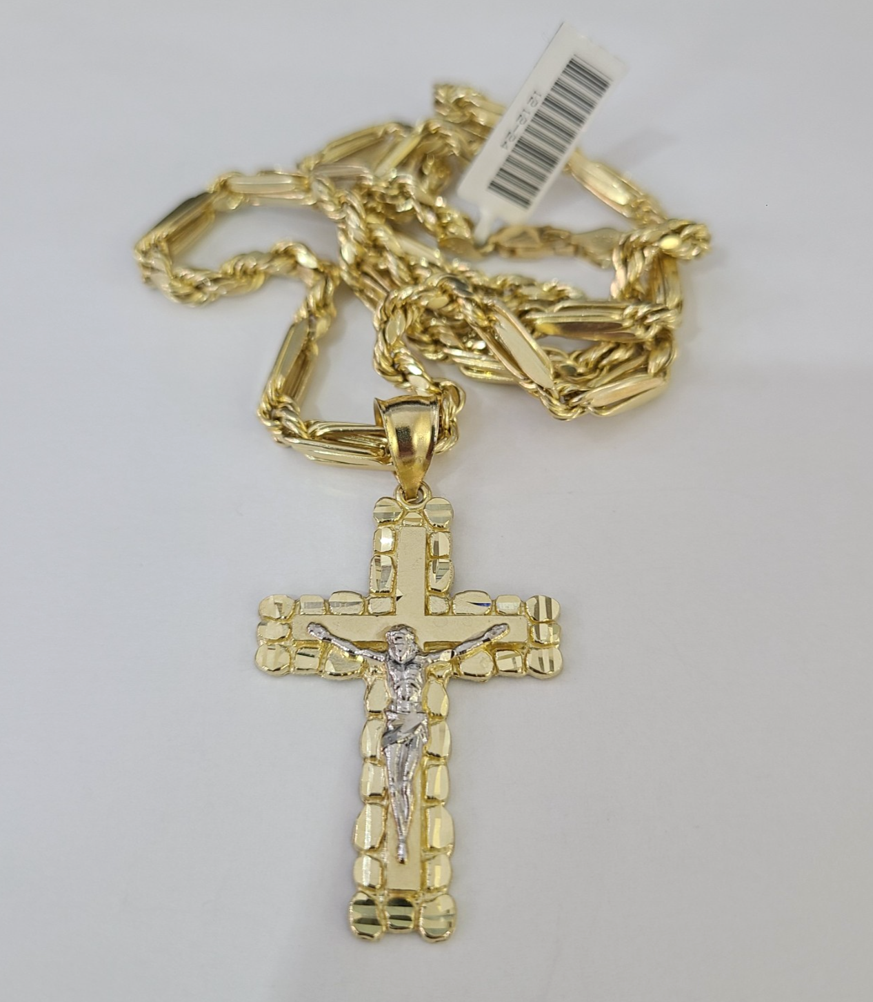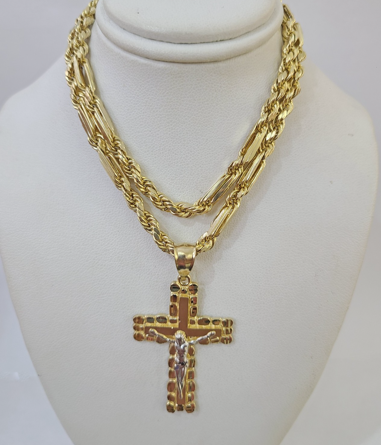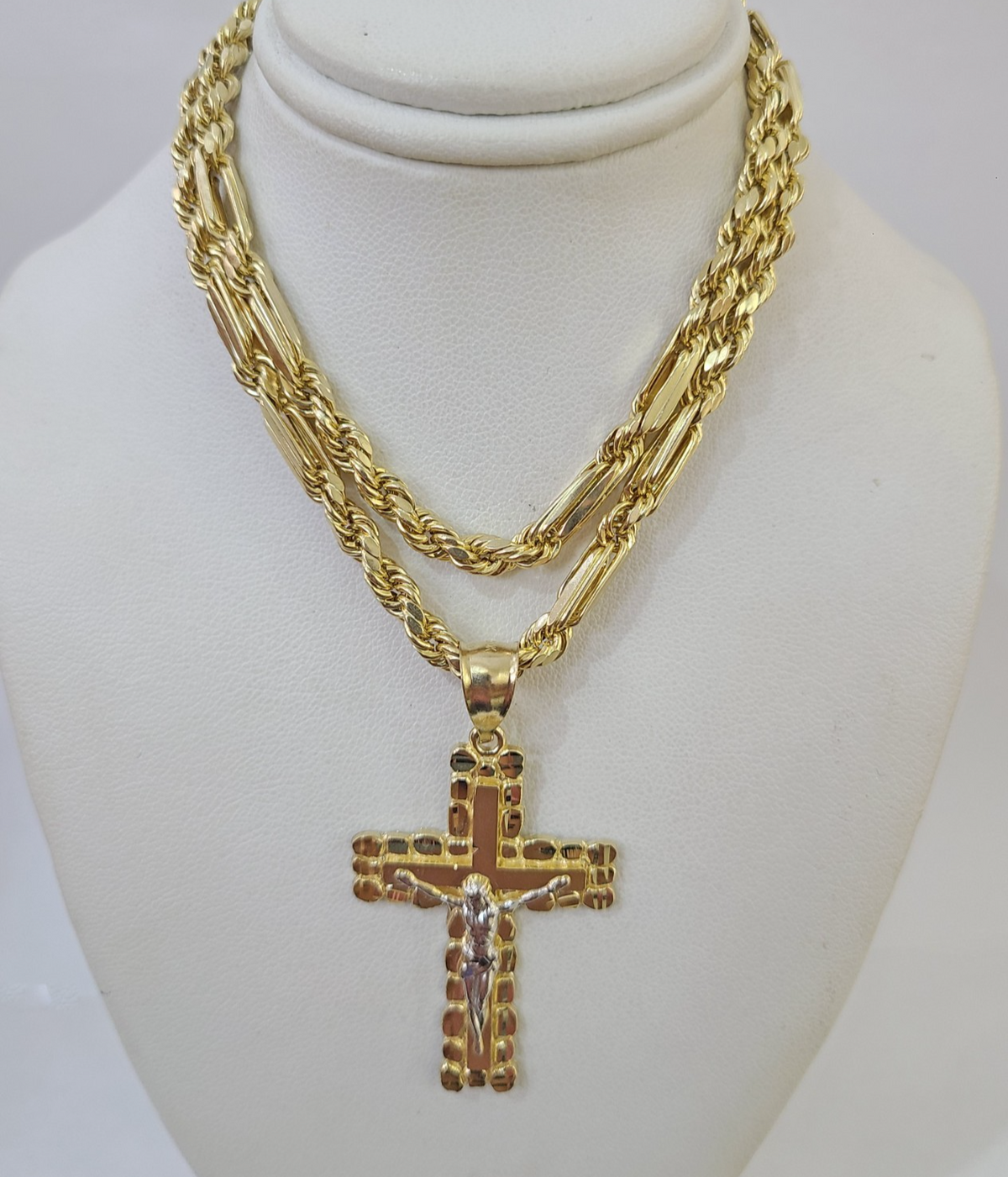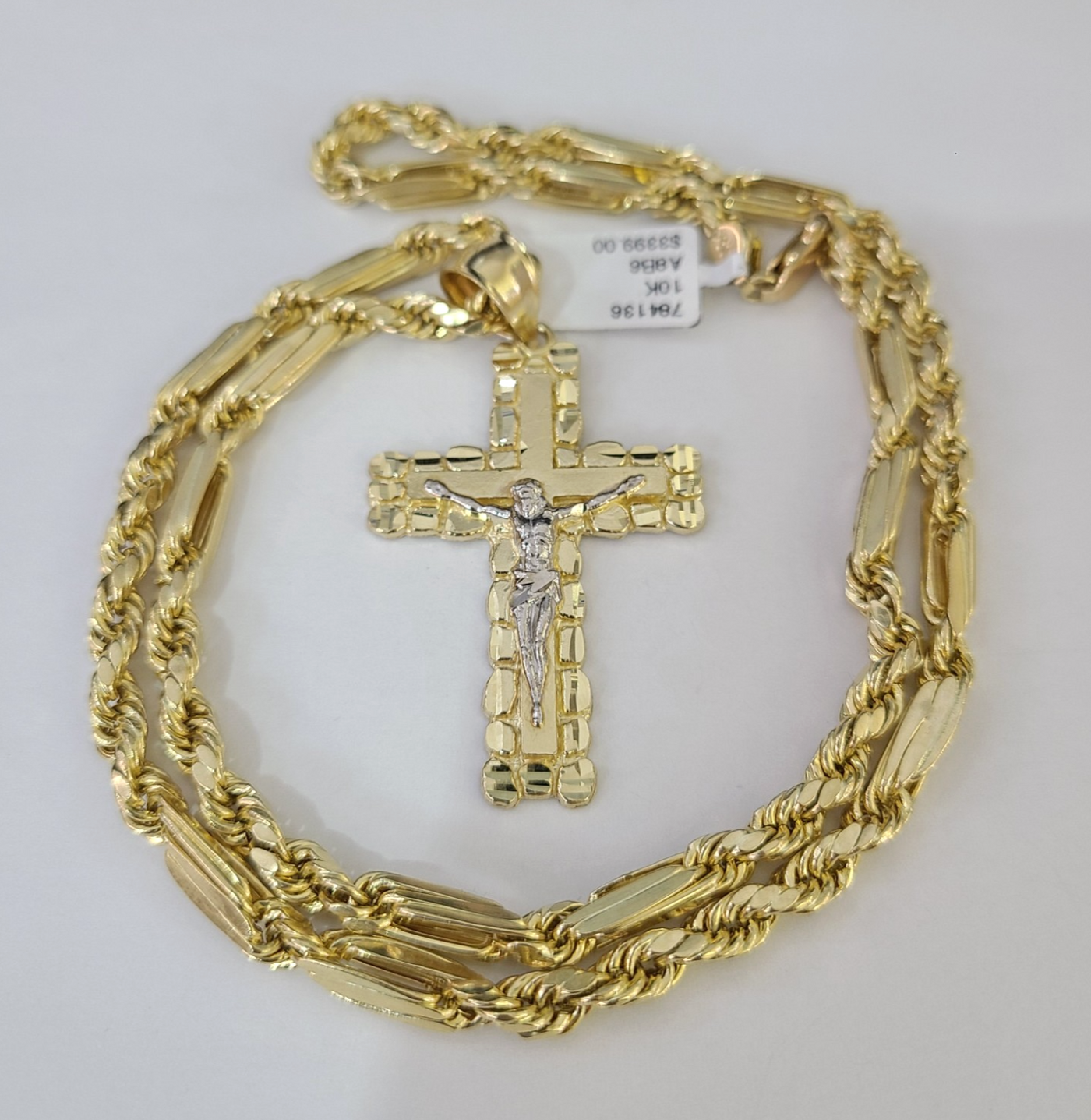10k Milano Rope Chain Jesus Cross Charm Necklace SET 5mm 18"-28" Pendant - 22 inch with charm