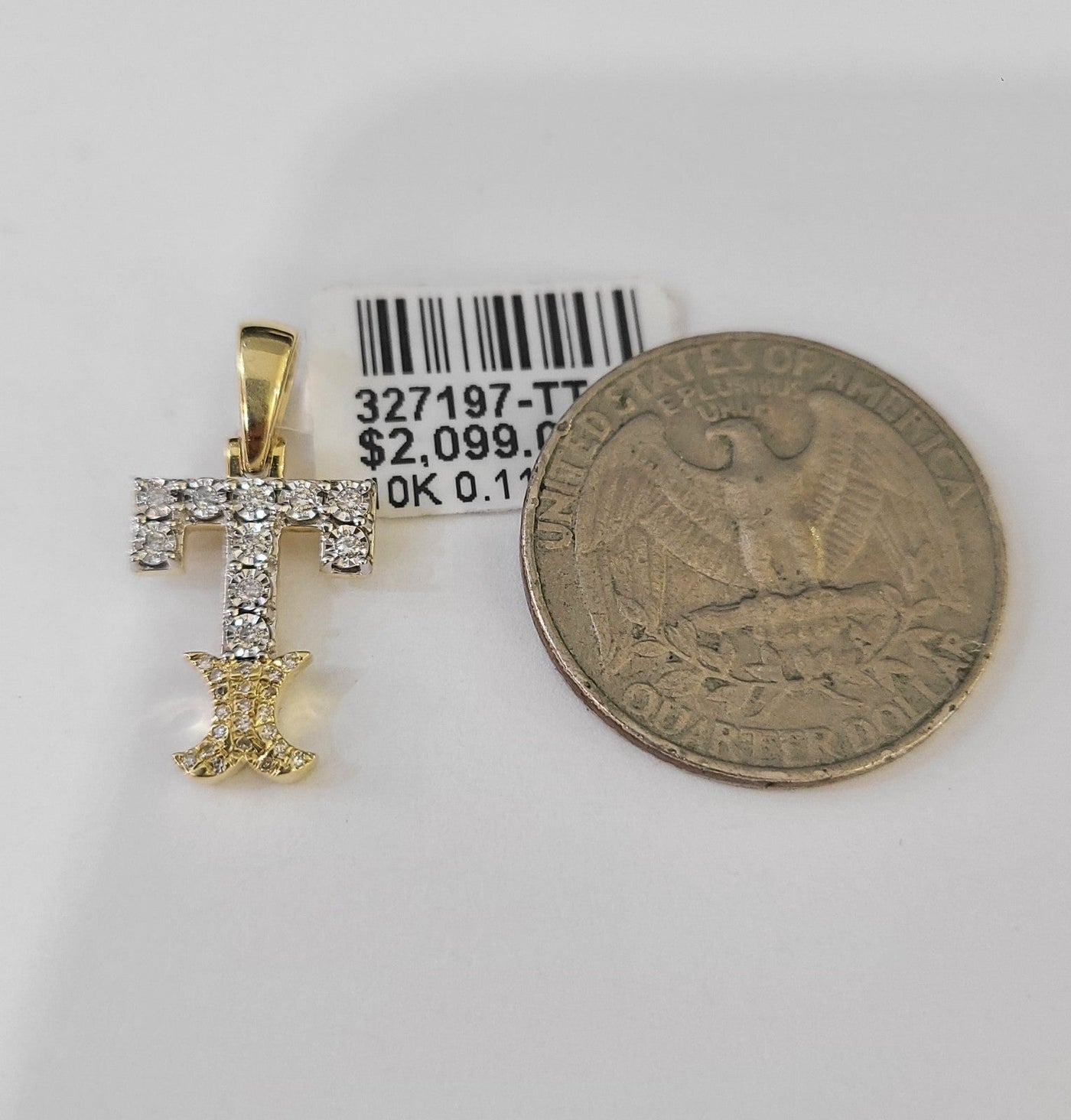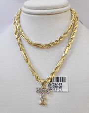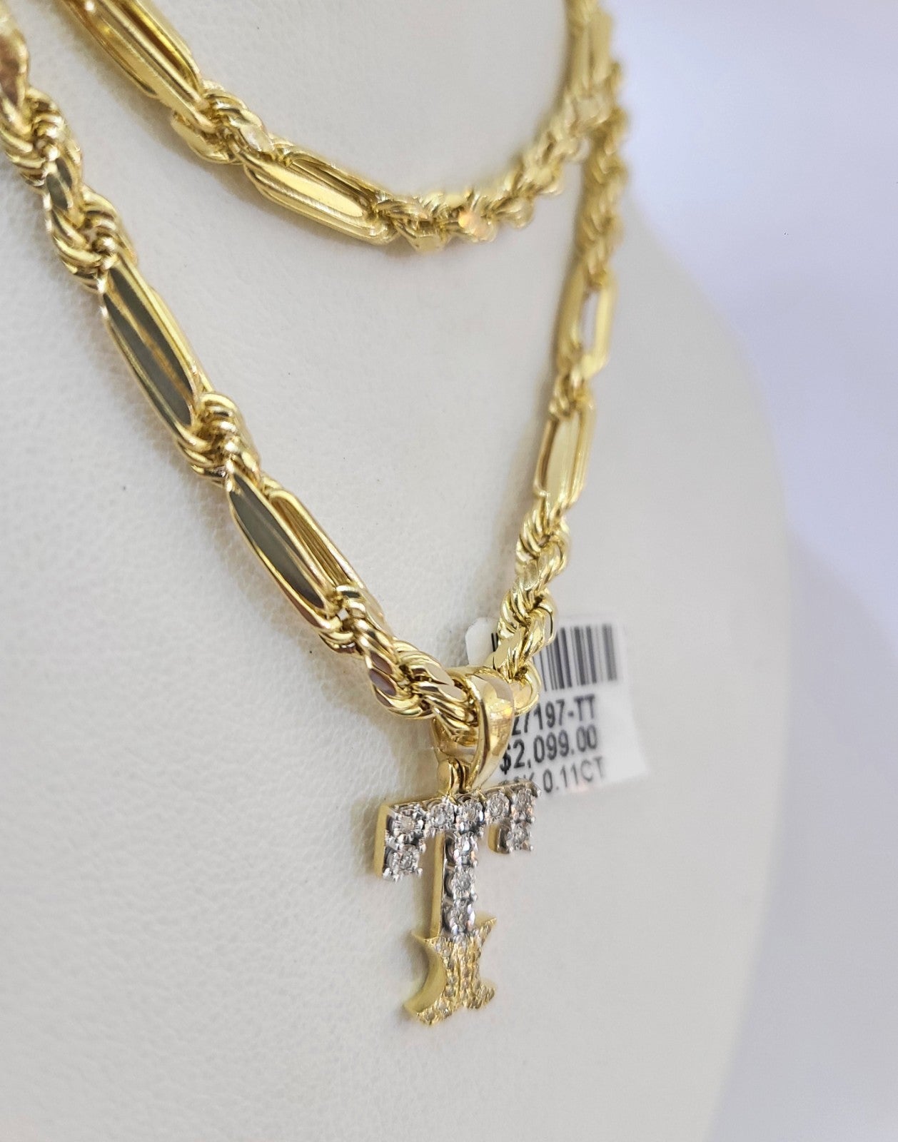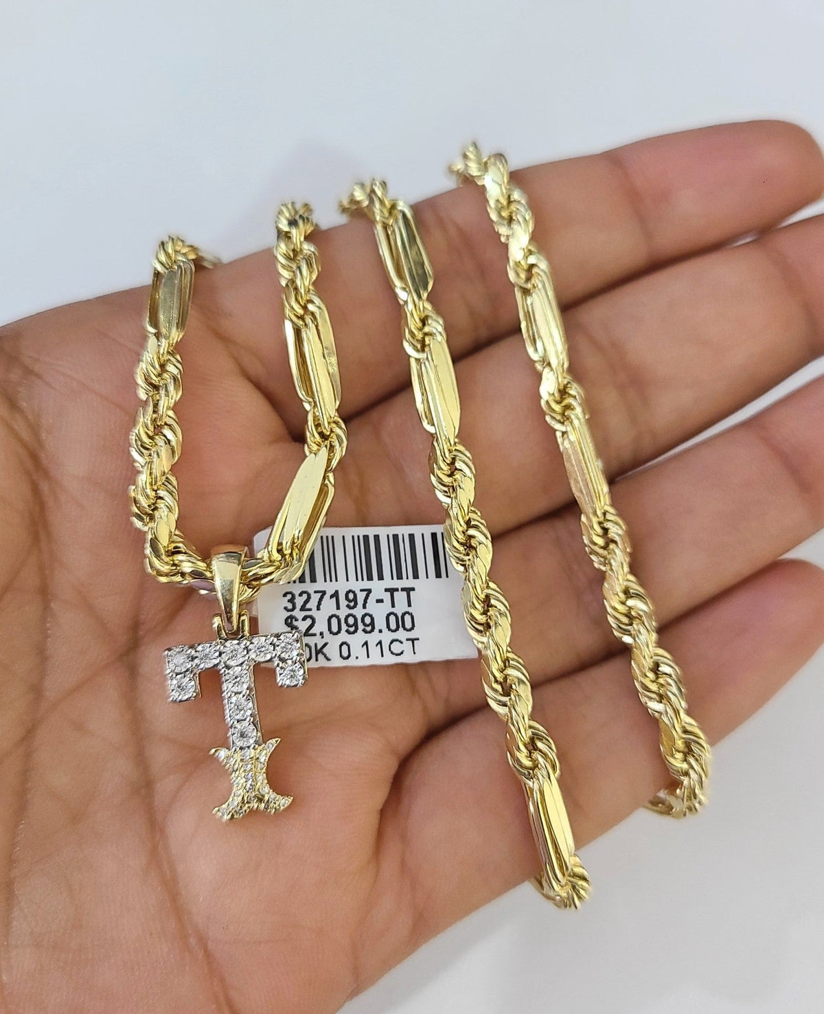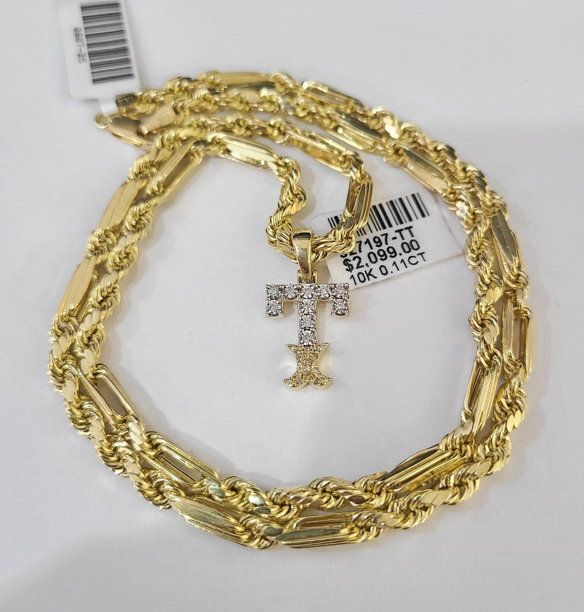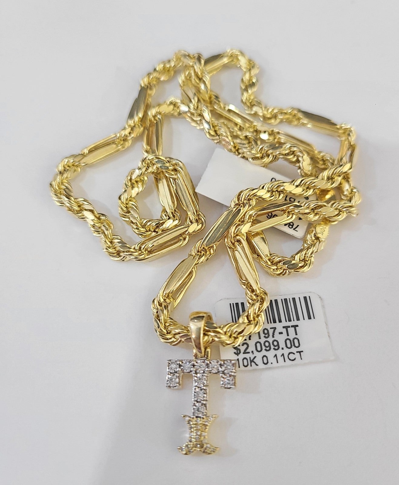 10k Milano Rope Chain T Diamond Alphabet Charm Necklace SET 4mm 18"-28" Pendant - 24 Inches