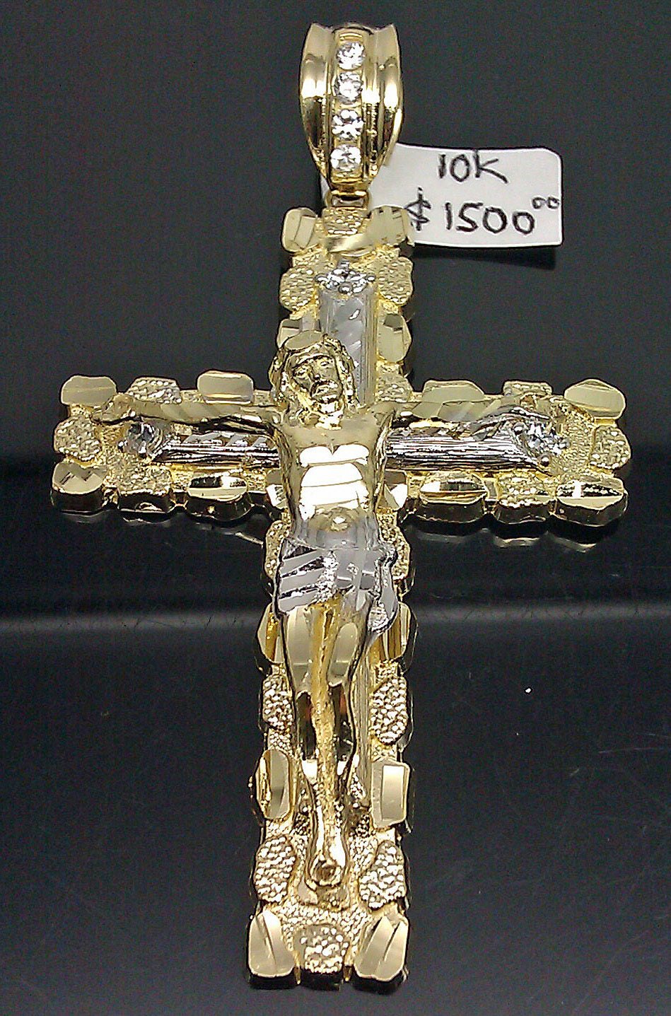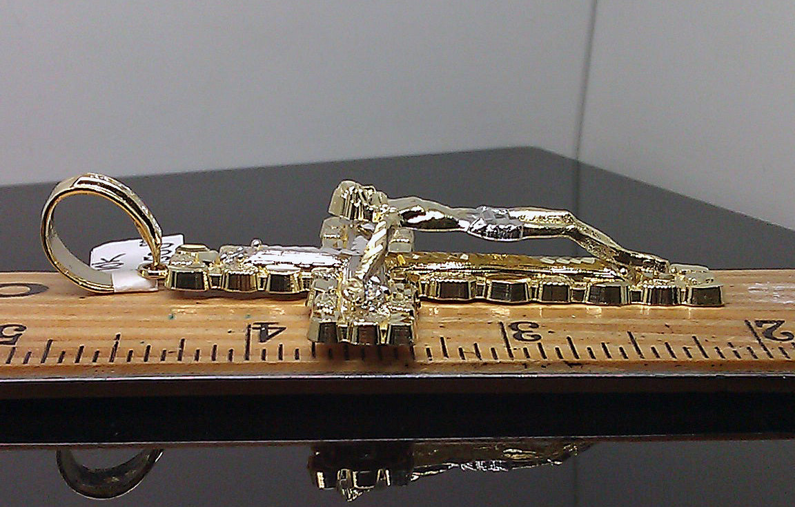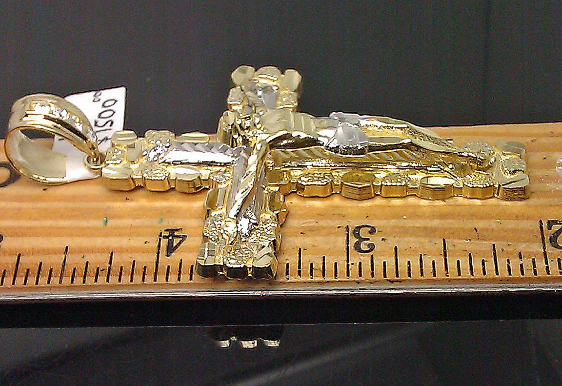 Is Presenting You with This Absolutely 10 KT Yellow Gold Nugget Jesus Crucifix Cross With Diamond Cuts #A10B0. They are Nugget Diamond Cuts Charm designed. Please feel free to contact us if you have any queries regarding the item.