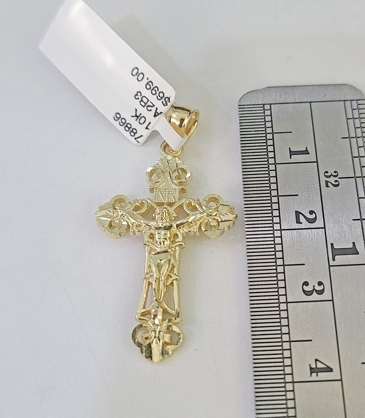 Real 10k 3mm Rope Chain Jesus Cross Pendant Charm 20" Set end Yellow