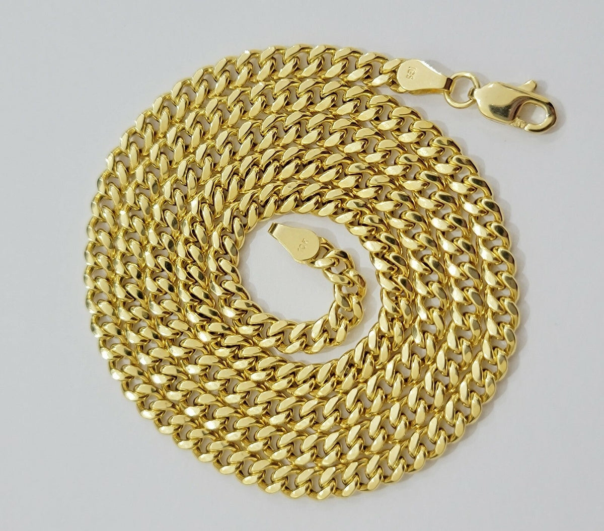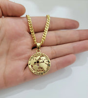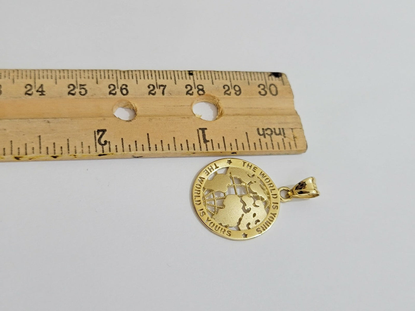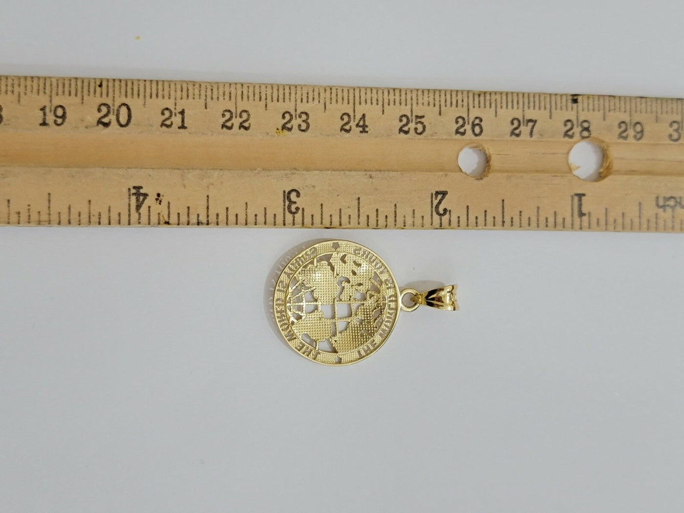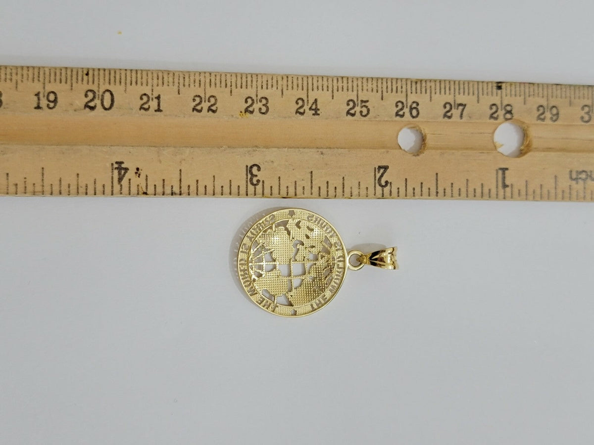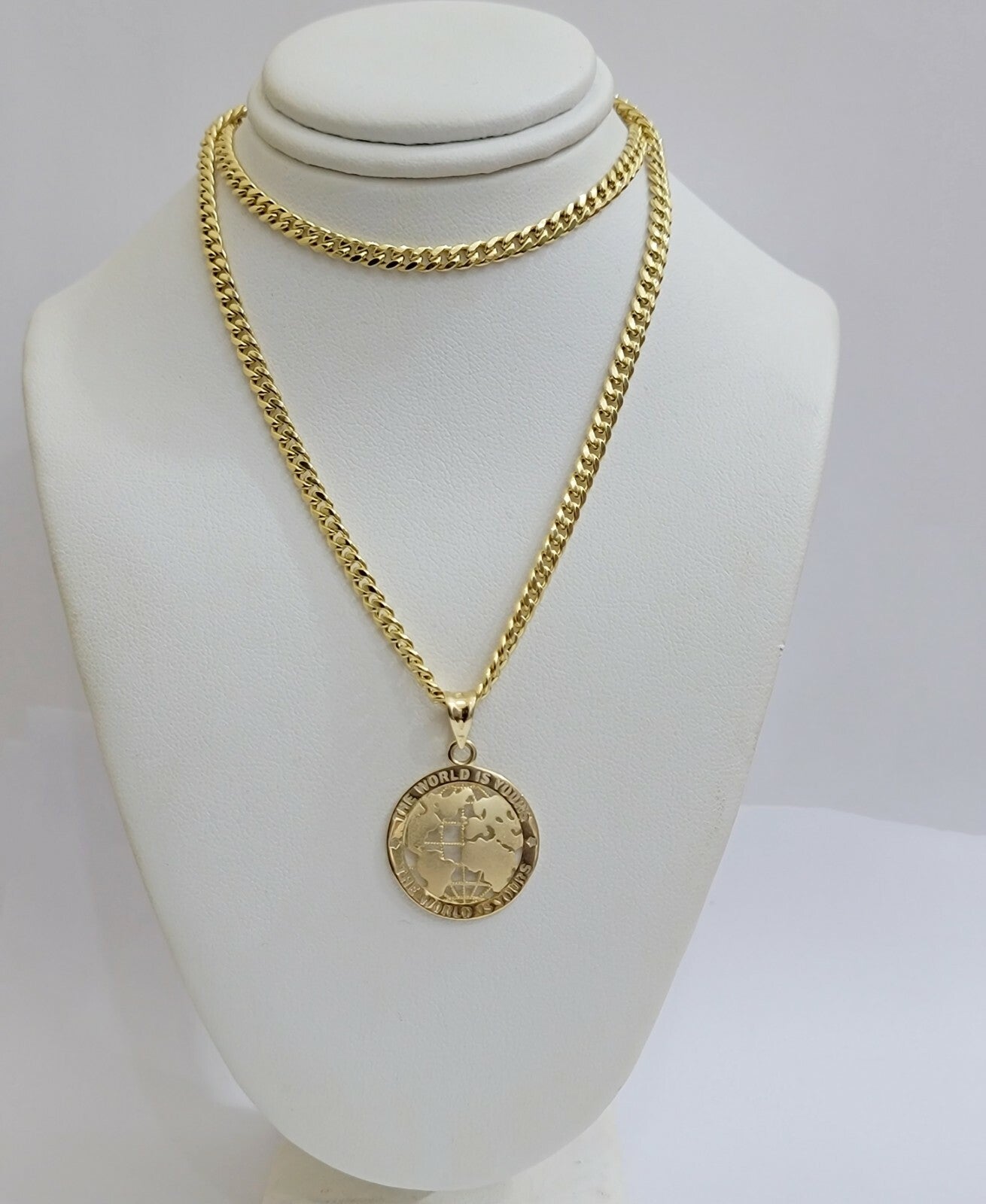 Real 10k Gold Miami Cuban Link Chain 22 inches with Pendant Set 3.5mm Necklace World Map Charm